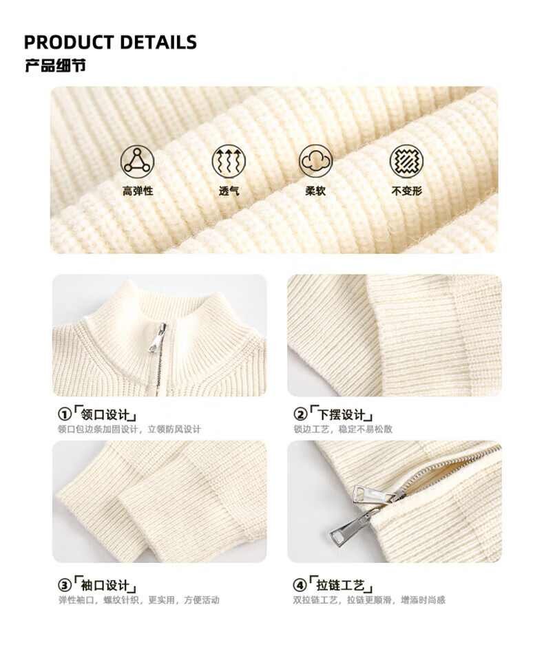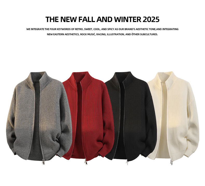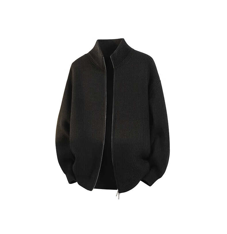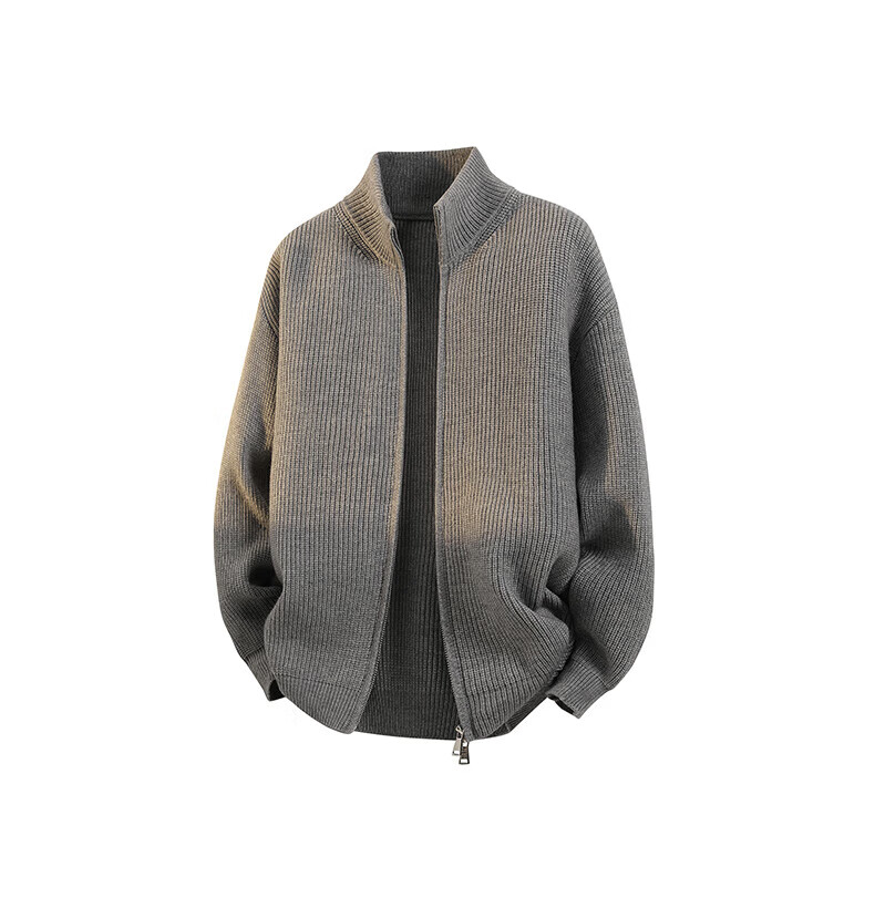 真维斯(Jeanswest)美式立领拉链毛衣男款秋冬新款宽松百搭休闲针织开衫外套 灰色 【柔软舒适】 M 建议100-125斤