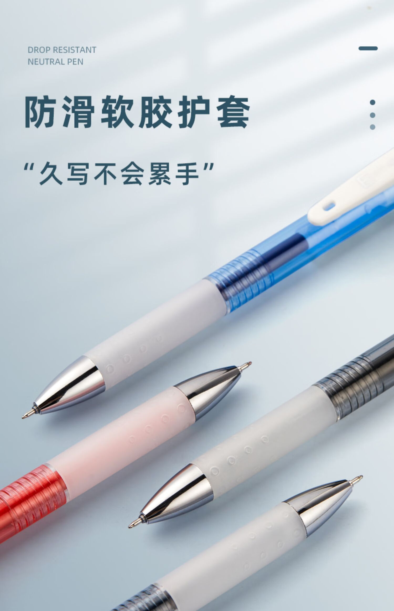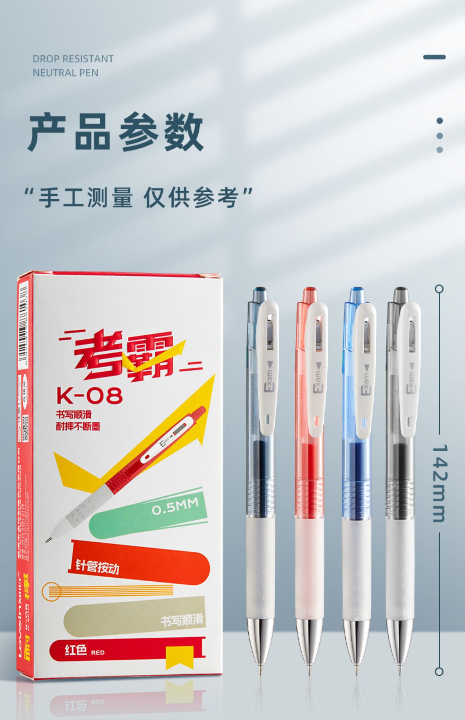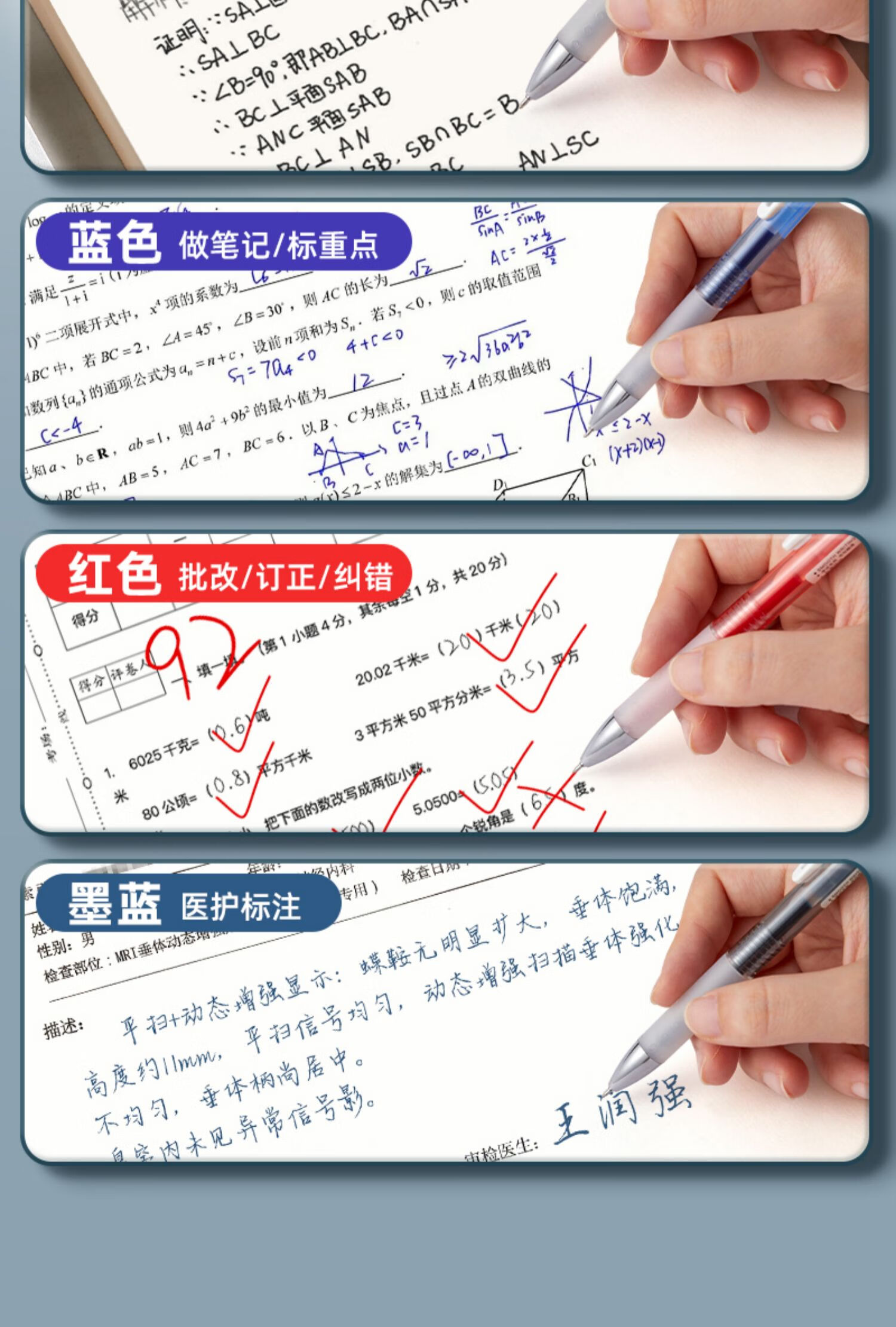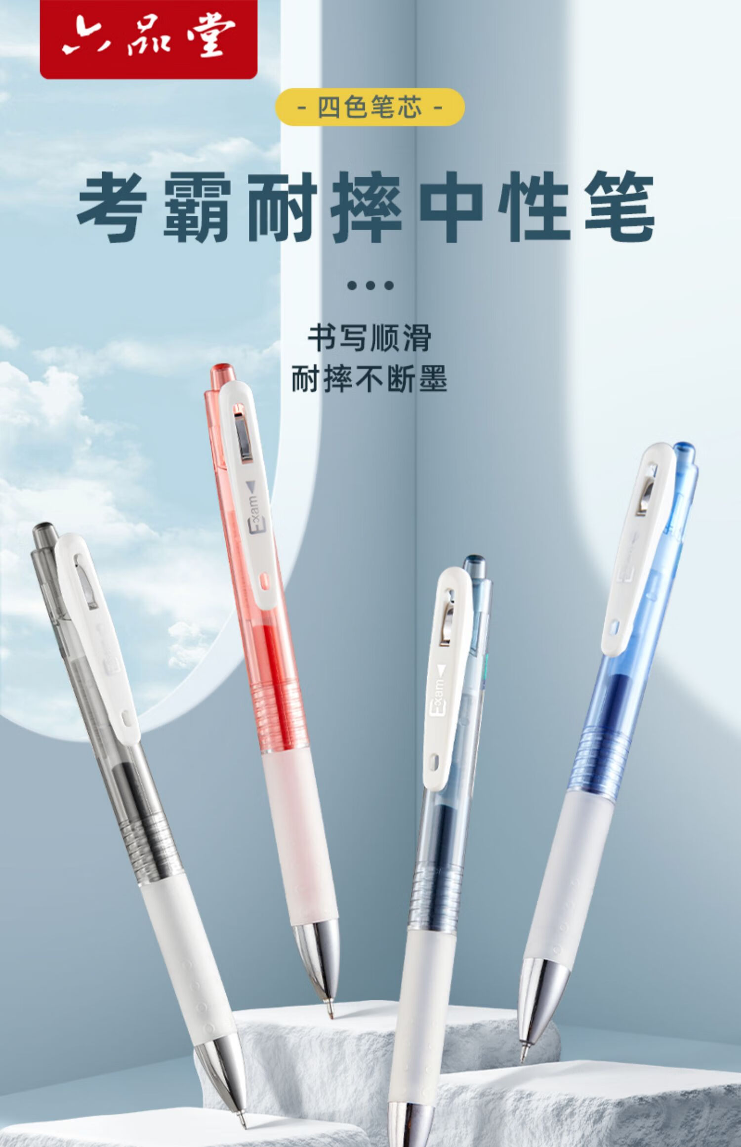 六品堂按动中性笔速干顺滑考霸刷题黑笔初中生专用考试书写0.5按压式水笔芯碳素红笔 考霸中性笔-黑色*3支