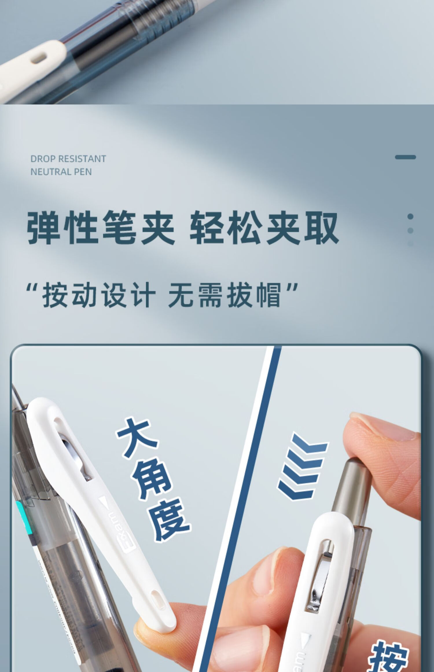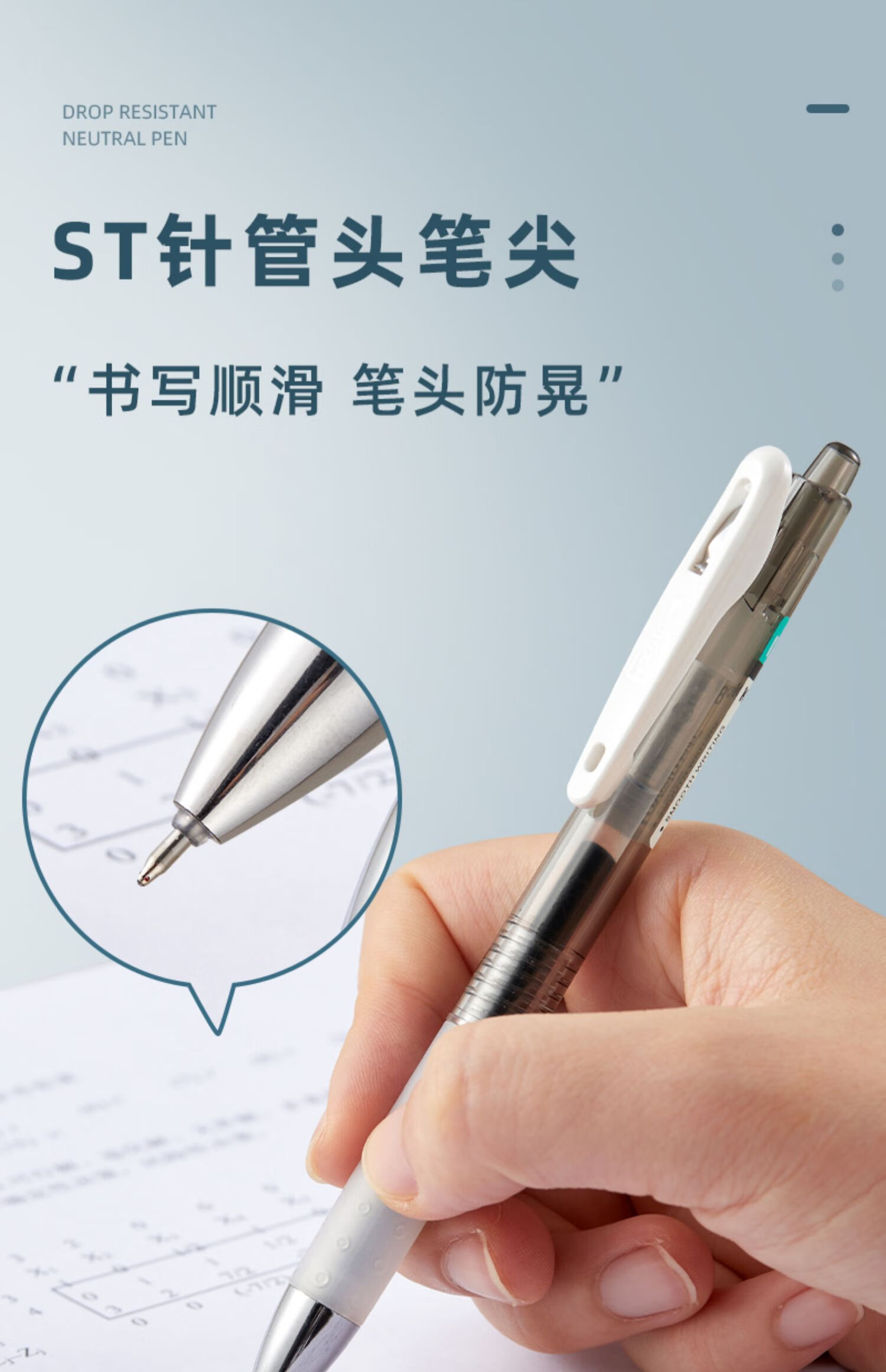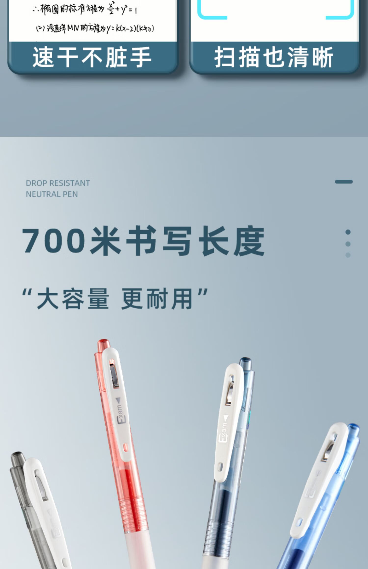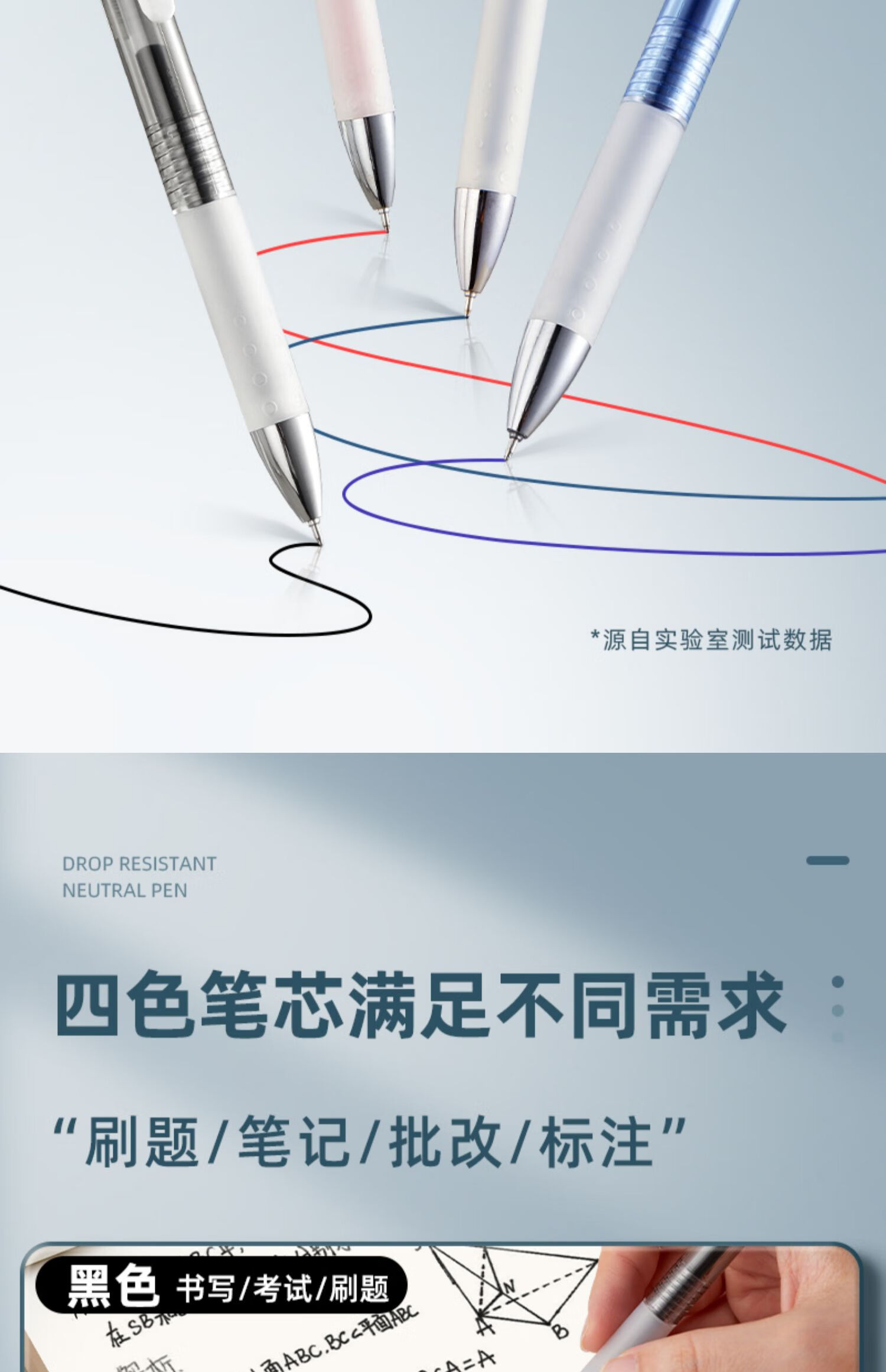 六品堂按动中性笔速干顺滑考霸刷题黑笔初中生专用考试书写0.5按压式水笔芯碳素红笔 考霸中性笔-黑色*3支