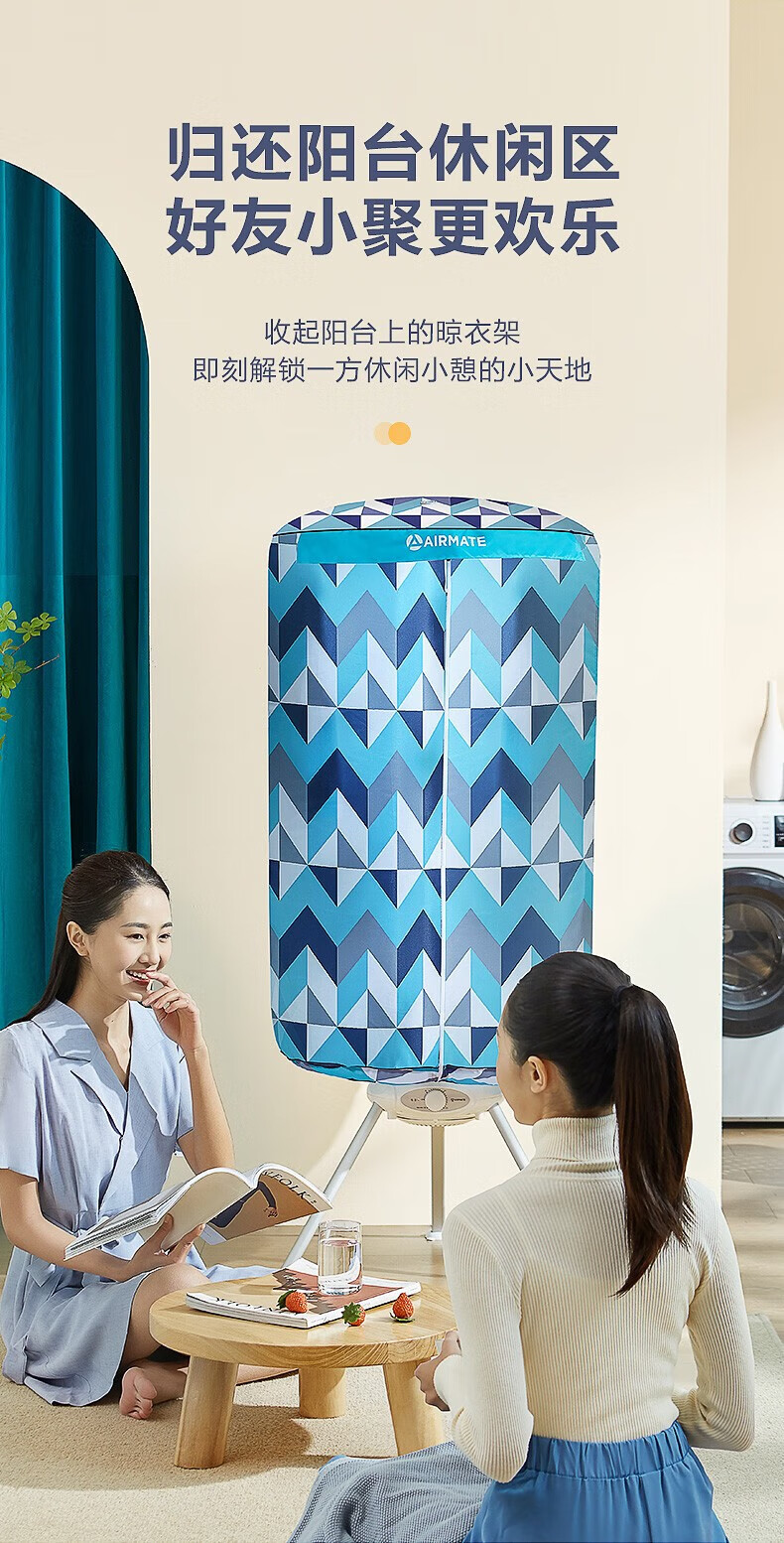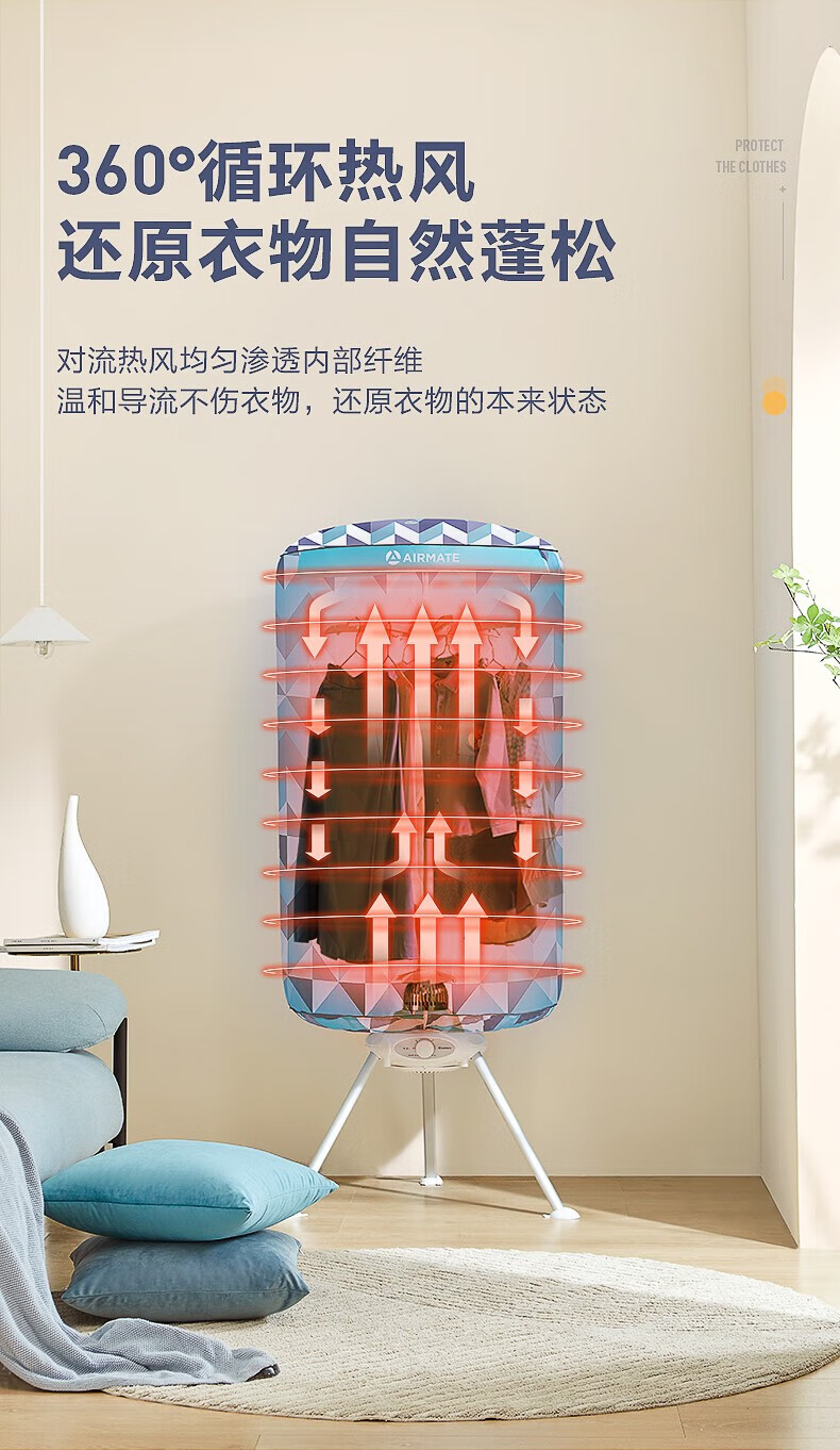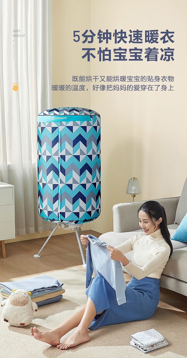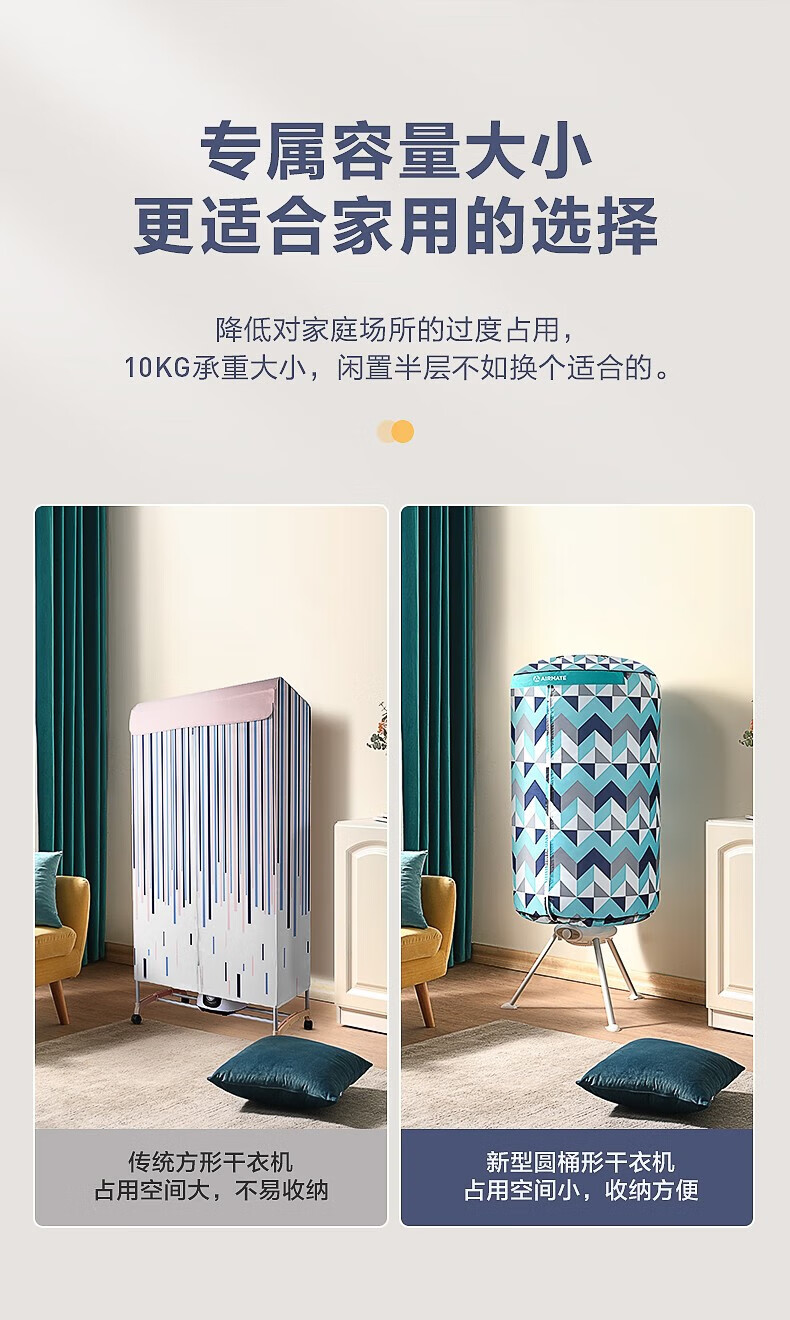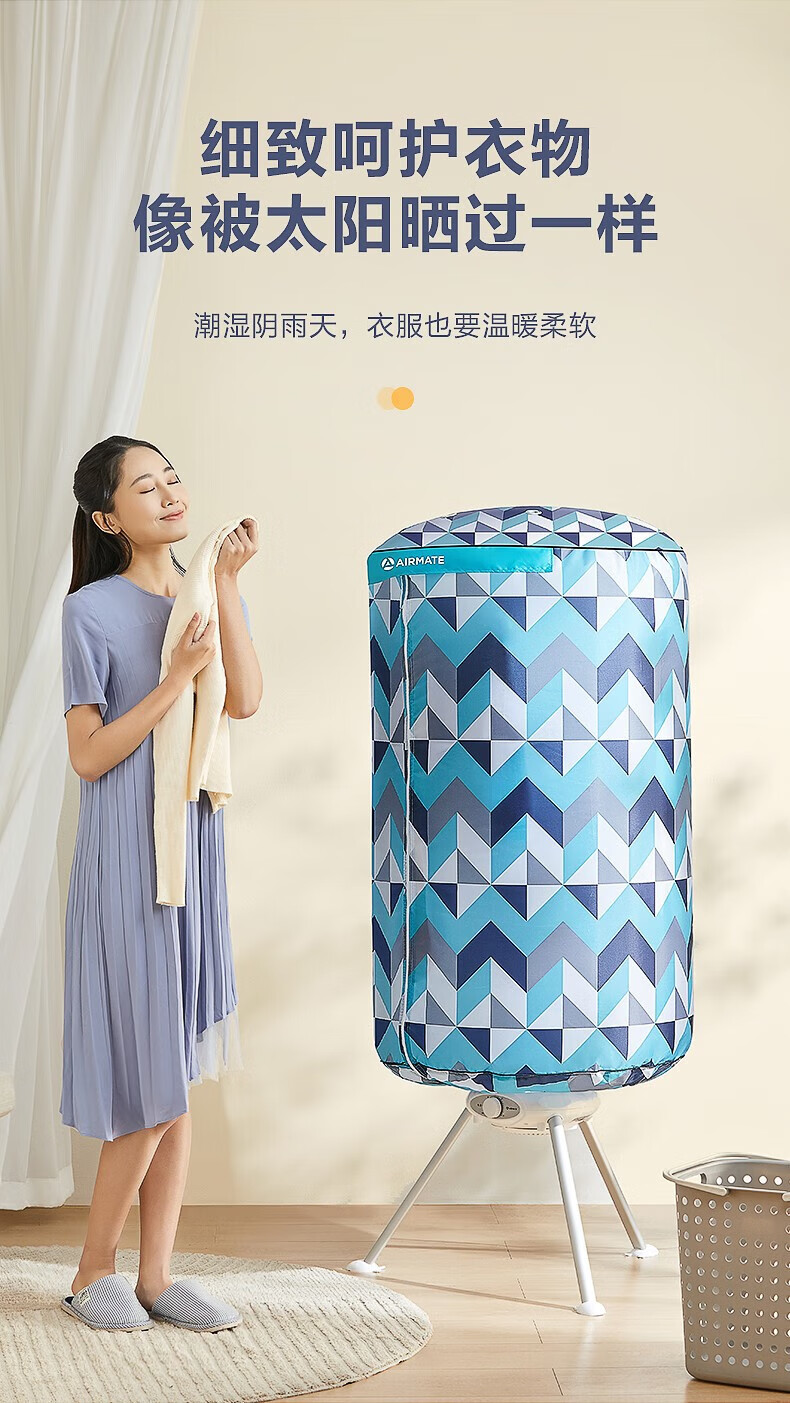 艾美特(AIRMATE)干衣机圆筒烘家用布罩类圆柱形婴儿衣物内衣烘衣机99%巴氏杀菌智能定时快速烘干低音防水阻燃主机 300L 【巴氏杀菌 99%高效除菌】