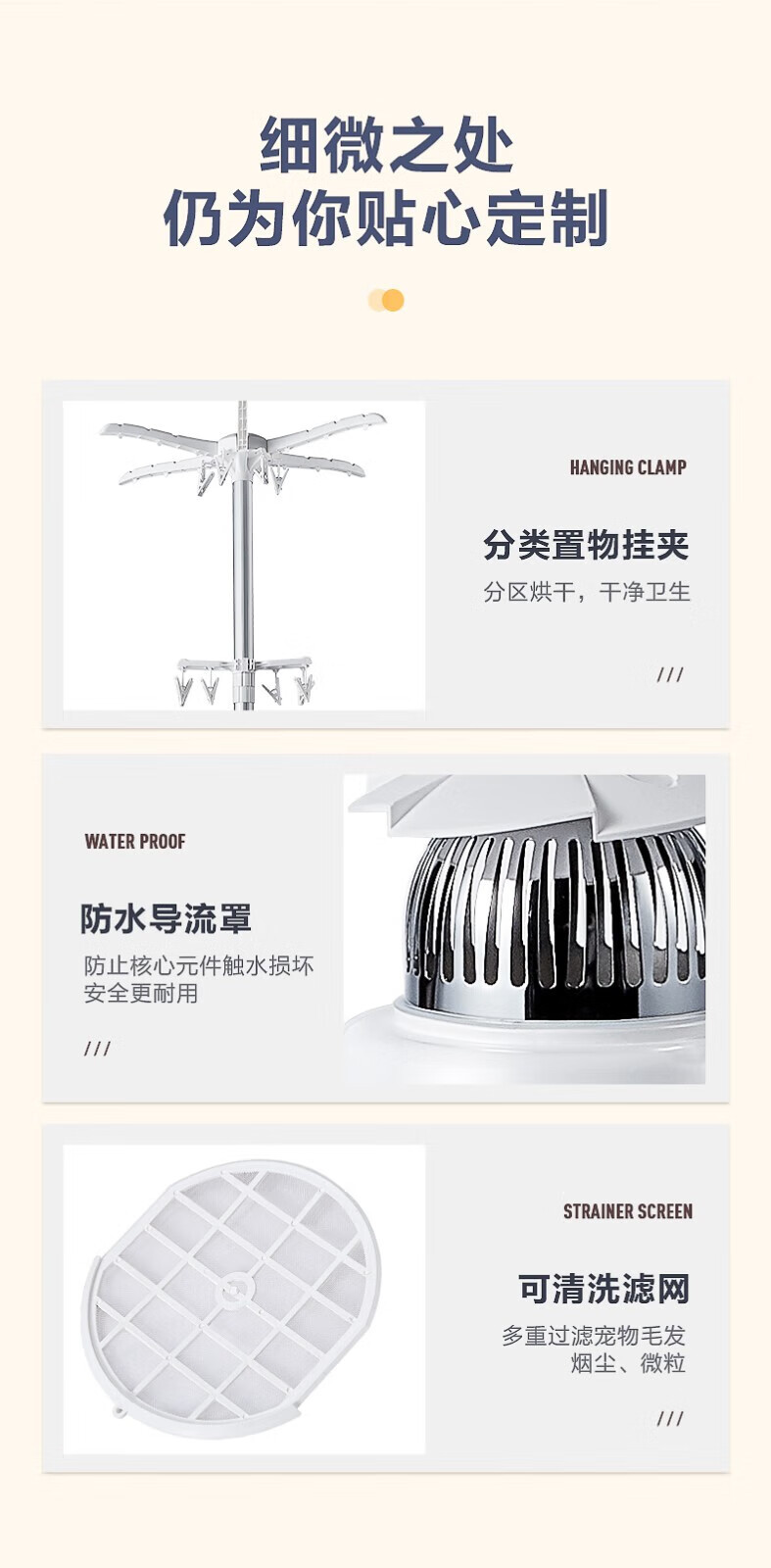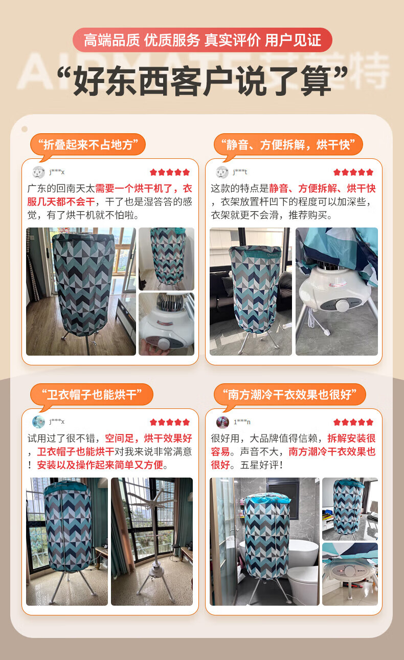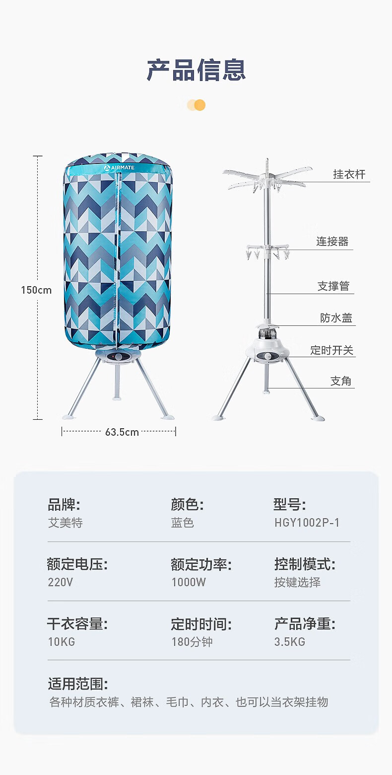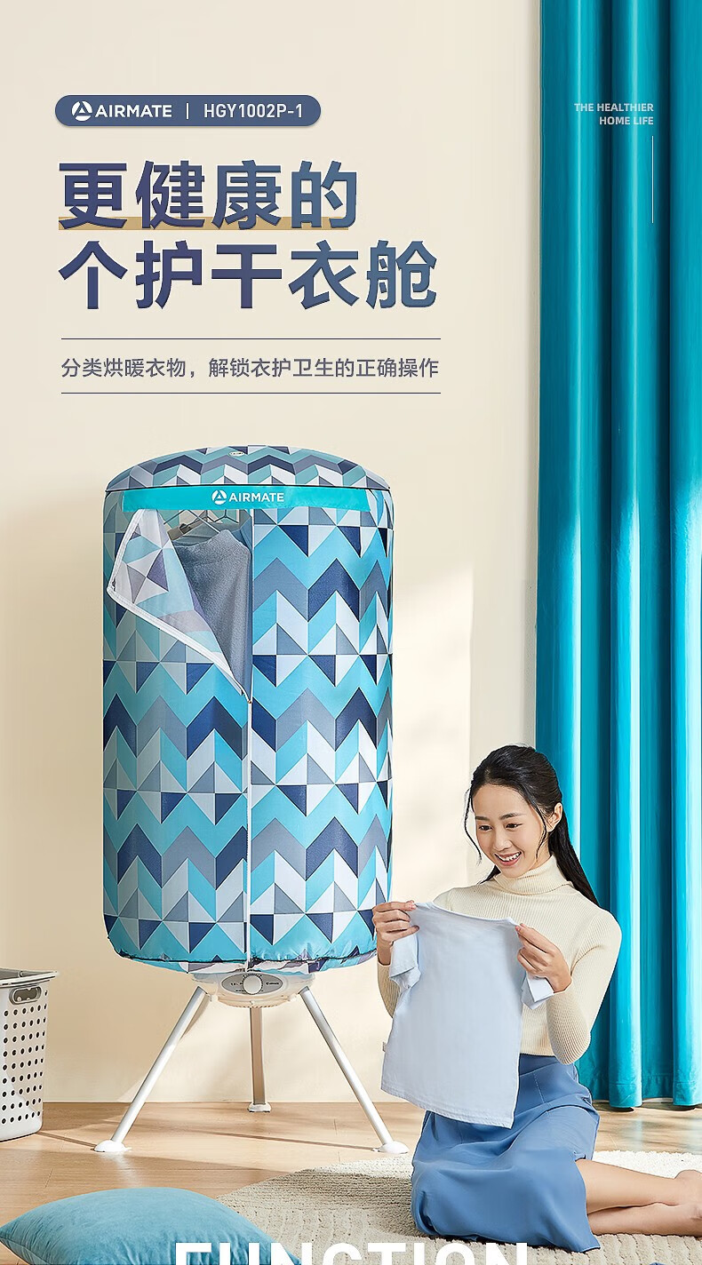 艾美特(AIRMATE)干衣机圆筒烘家用布罩类圆柱形婴儿衣物内衣烘衣机99%巴氏杀菌智能定时快速烘干低音防水阻燃主机 300L 【巴氏杀菌 99%高效除菌】