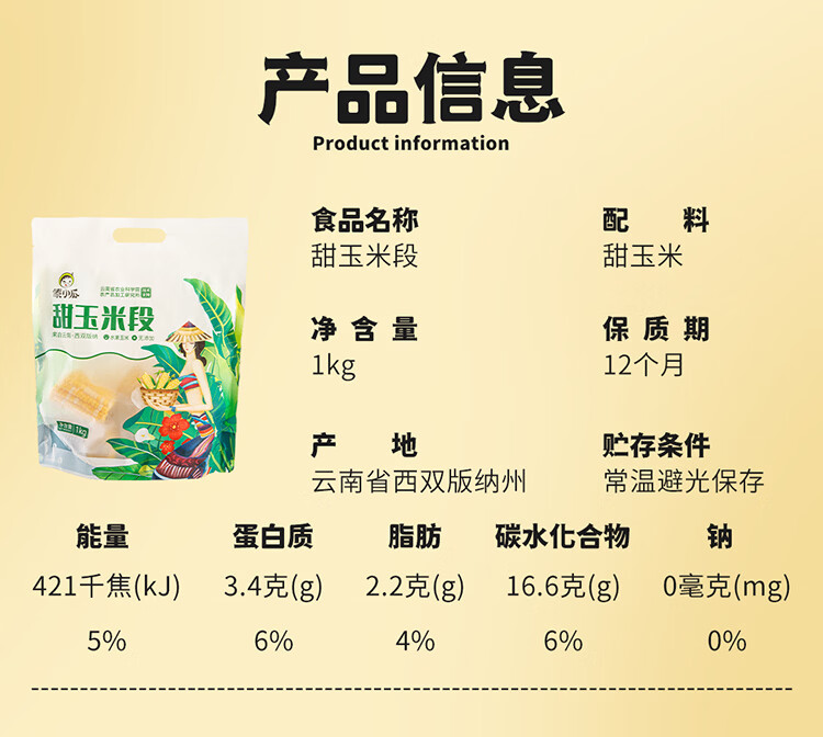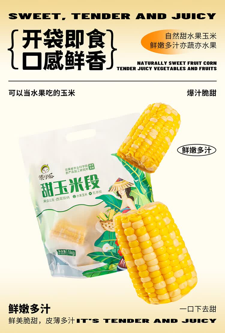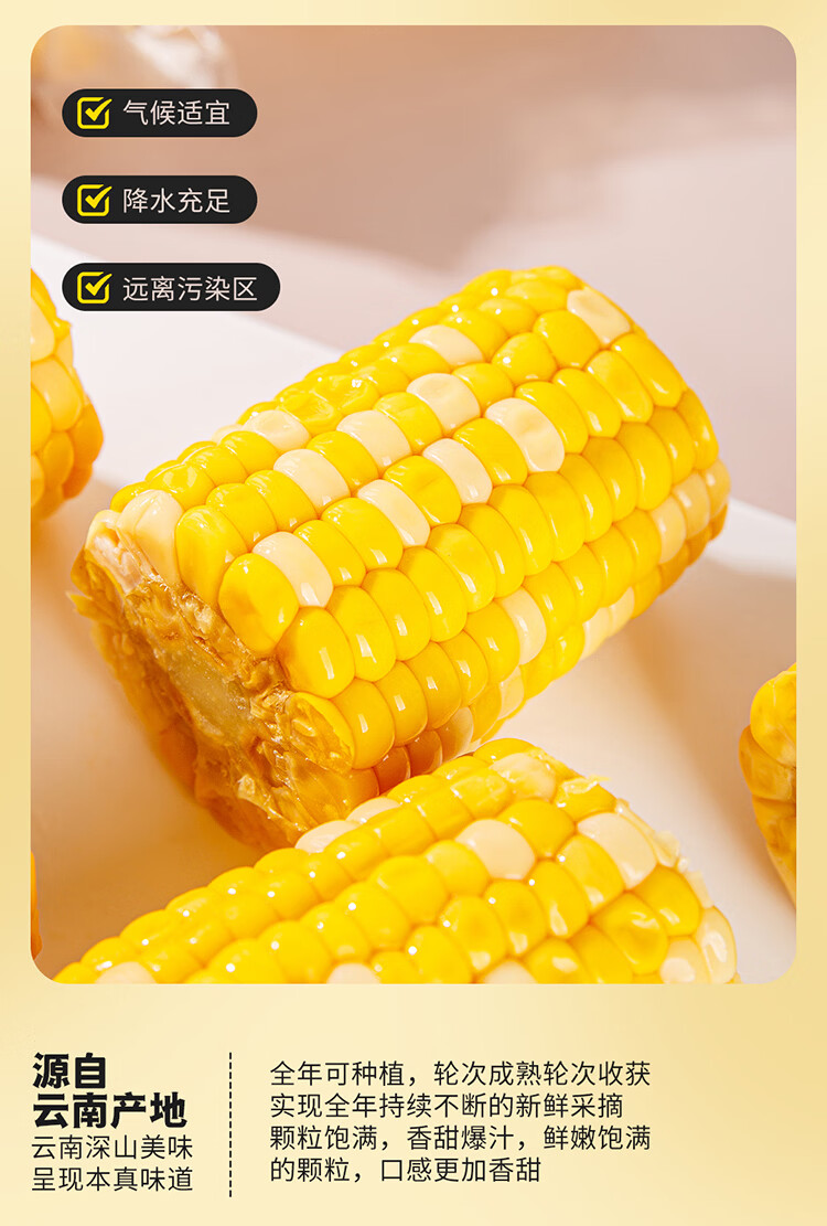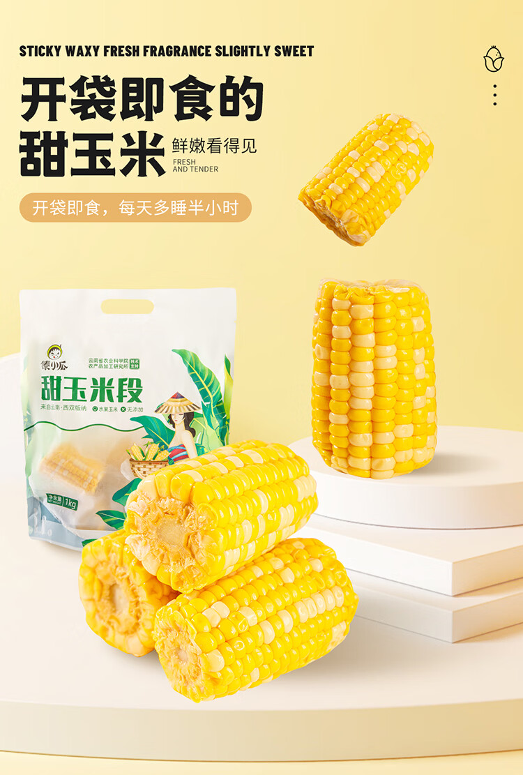 彩云之南西双版纳甜玉米段健康低脂代餐糯玉米真空包装 西双版纳甜玉米段1公斤/袋