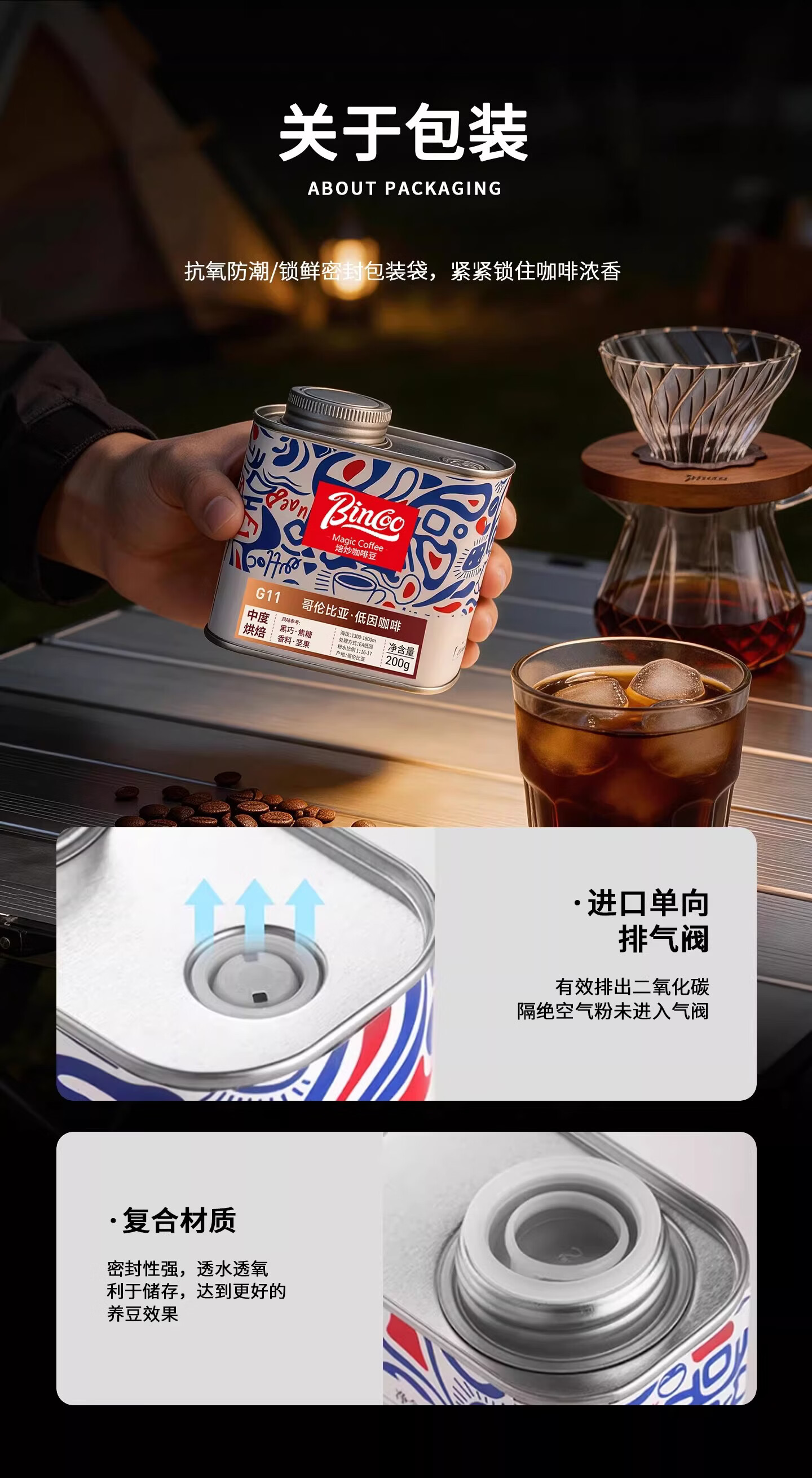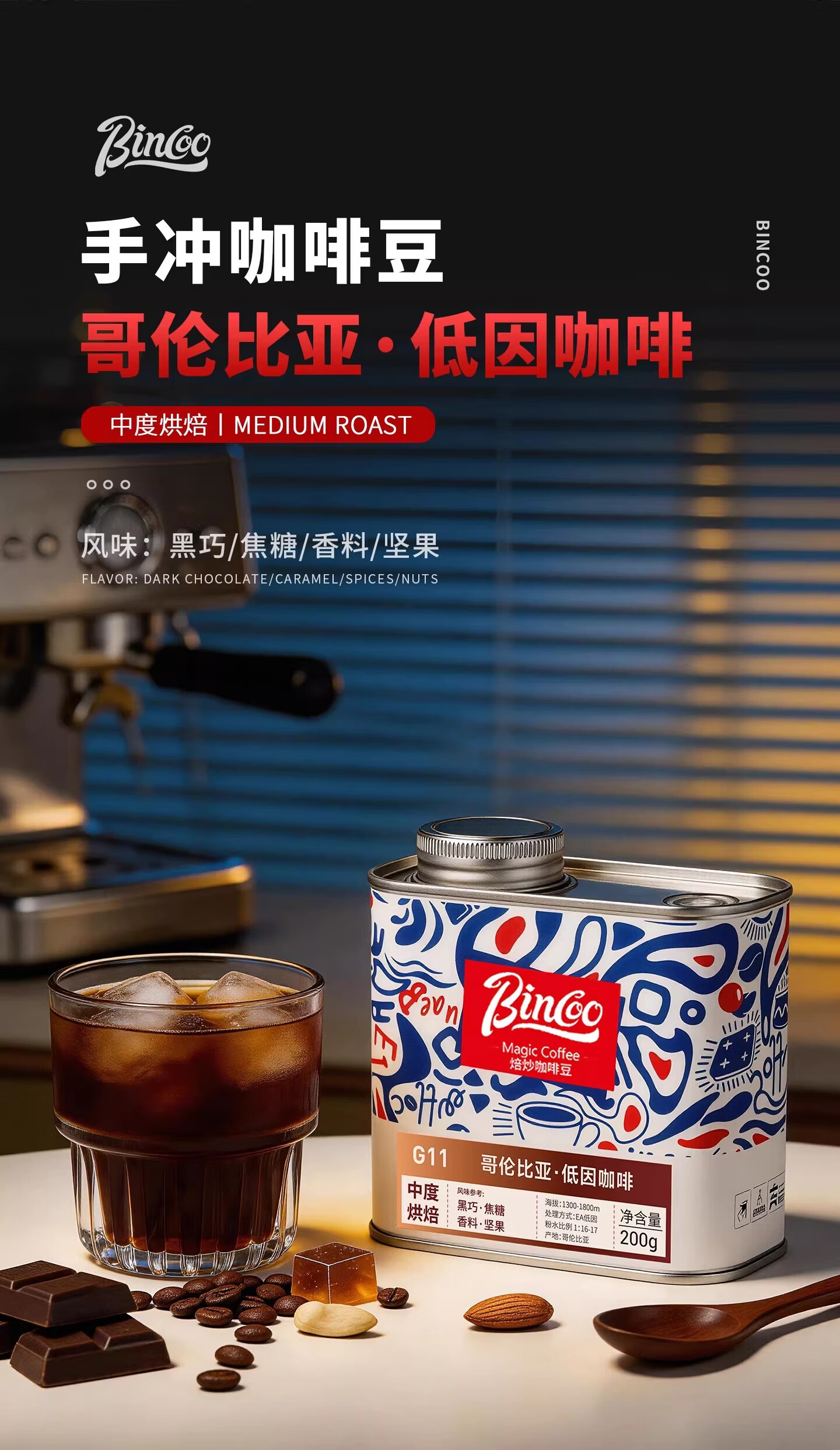 Bincoo哥伦比亚低因咖啡G11手冲咖啡豆中浅烘焙滴滤美式咖啡 35g盒装 中度烘焙