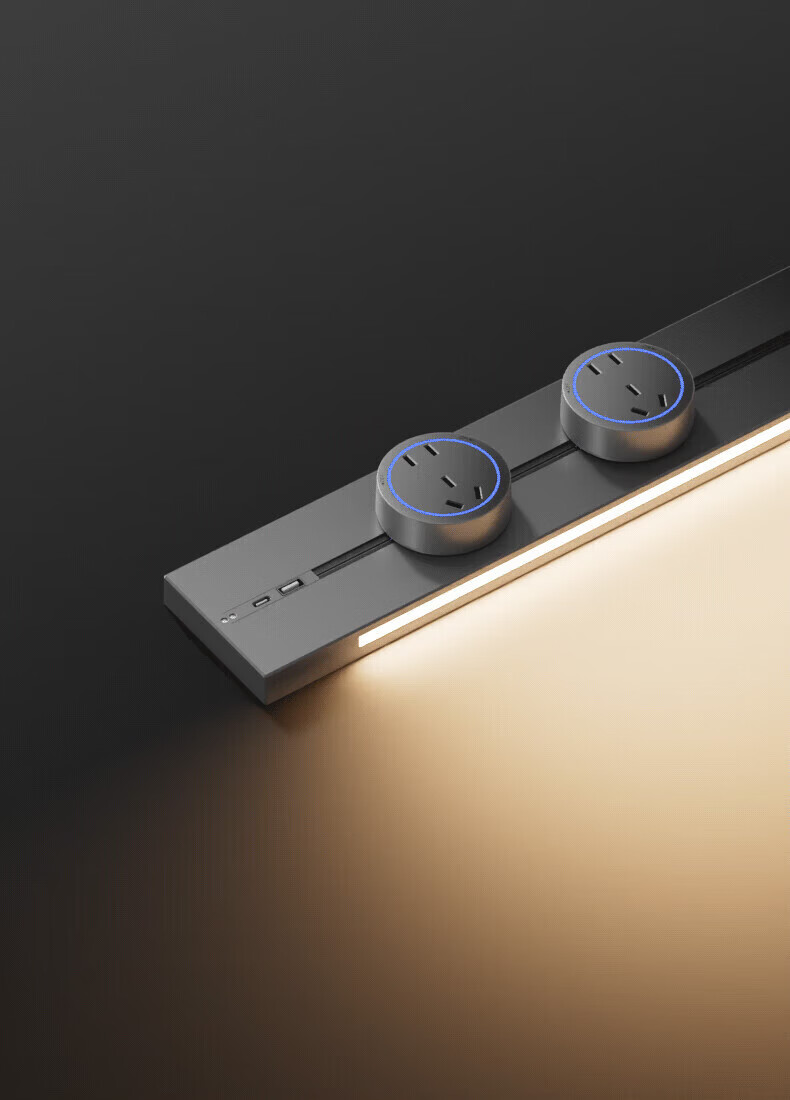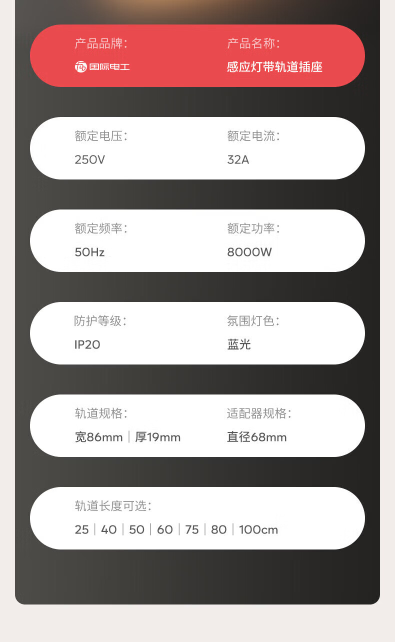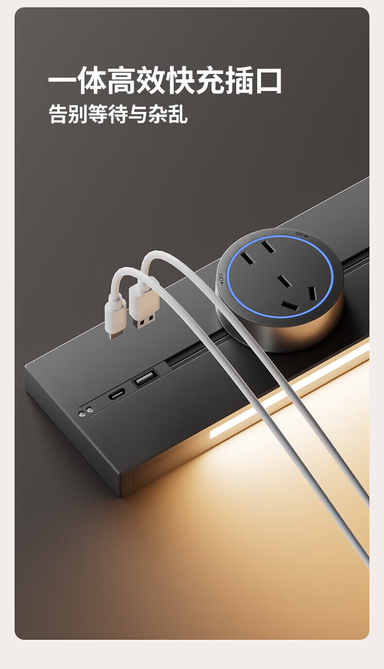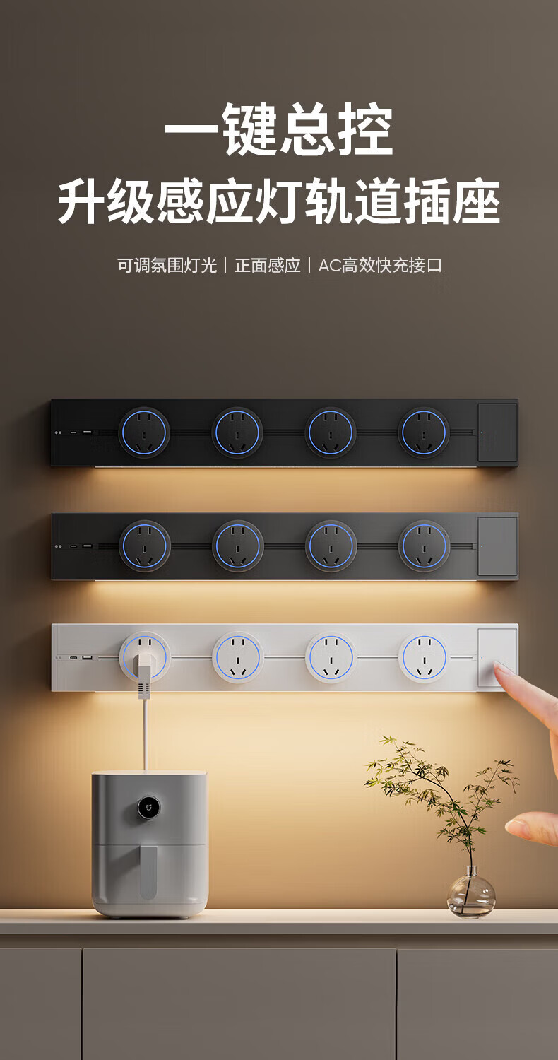 国际电工带感应灯带开关轨道插座可移动明装电力导轨厨房家用轨道带USB口 白色 感应灯40厘米轨道+2个大五孔+快充【带开关】