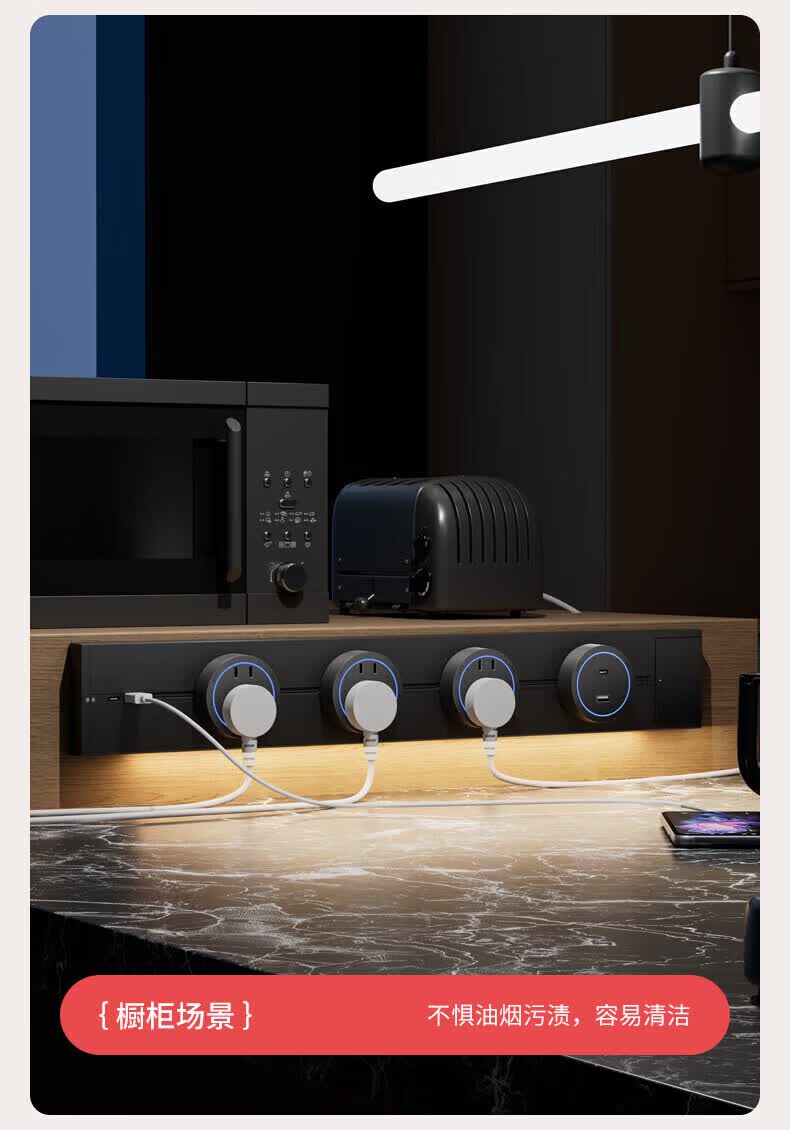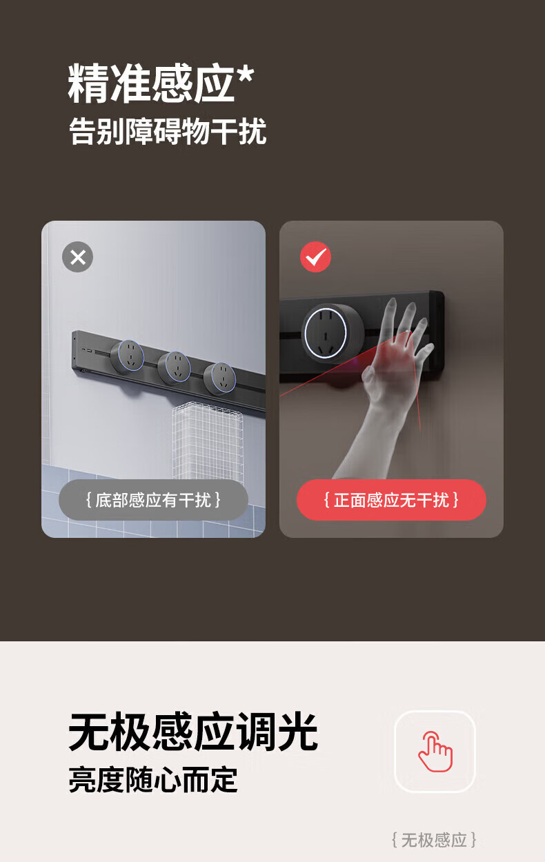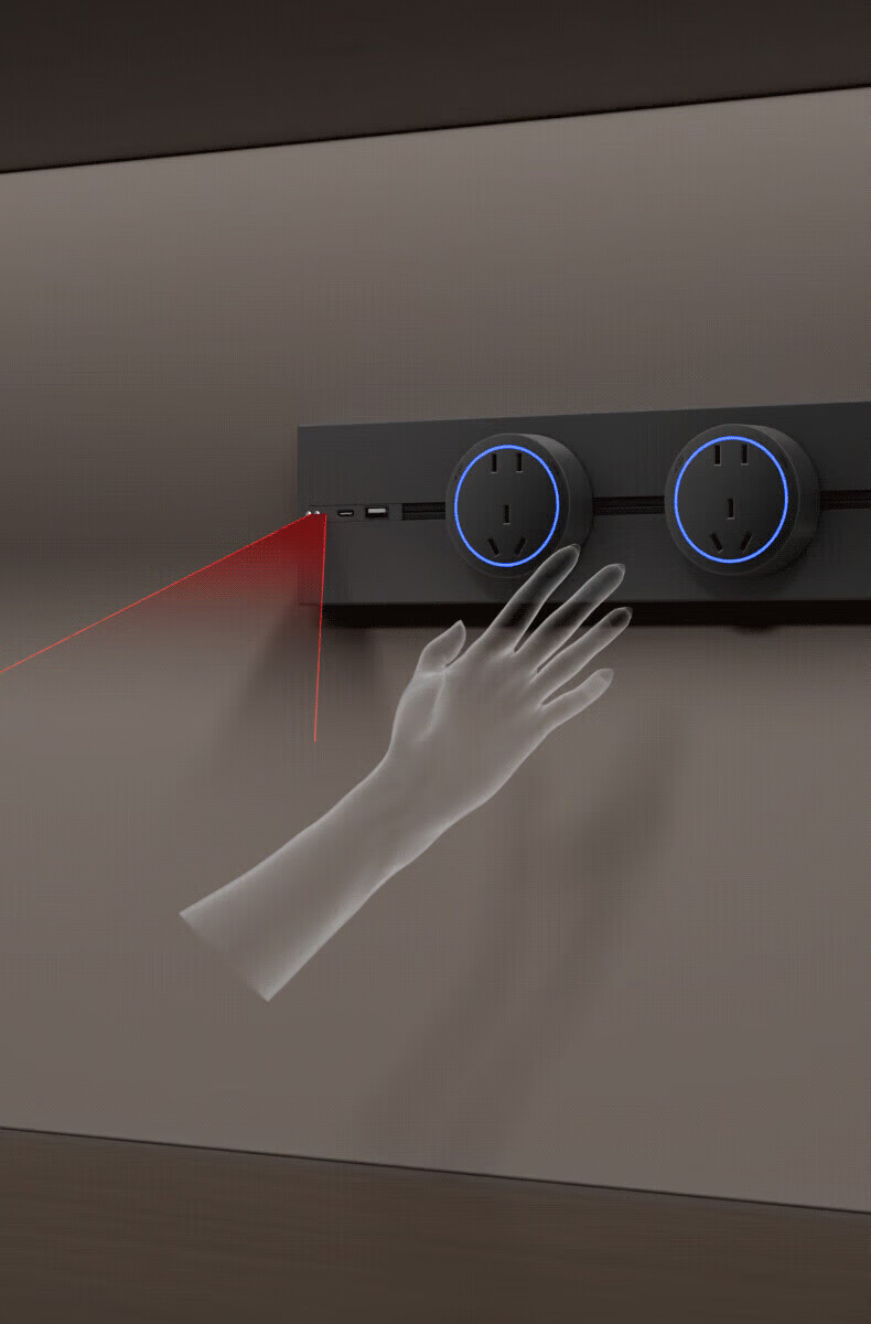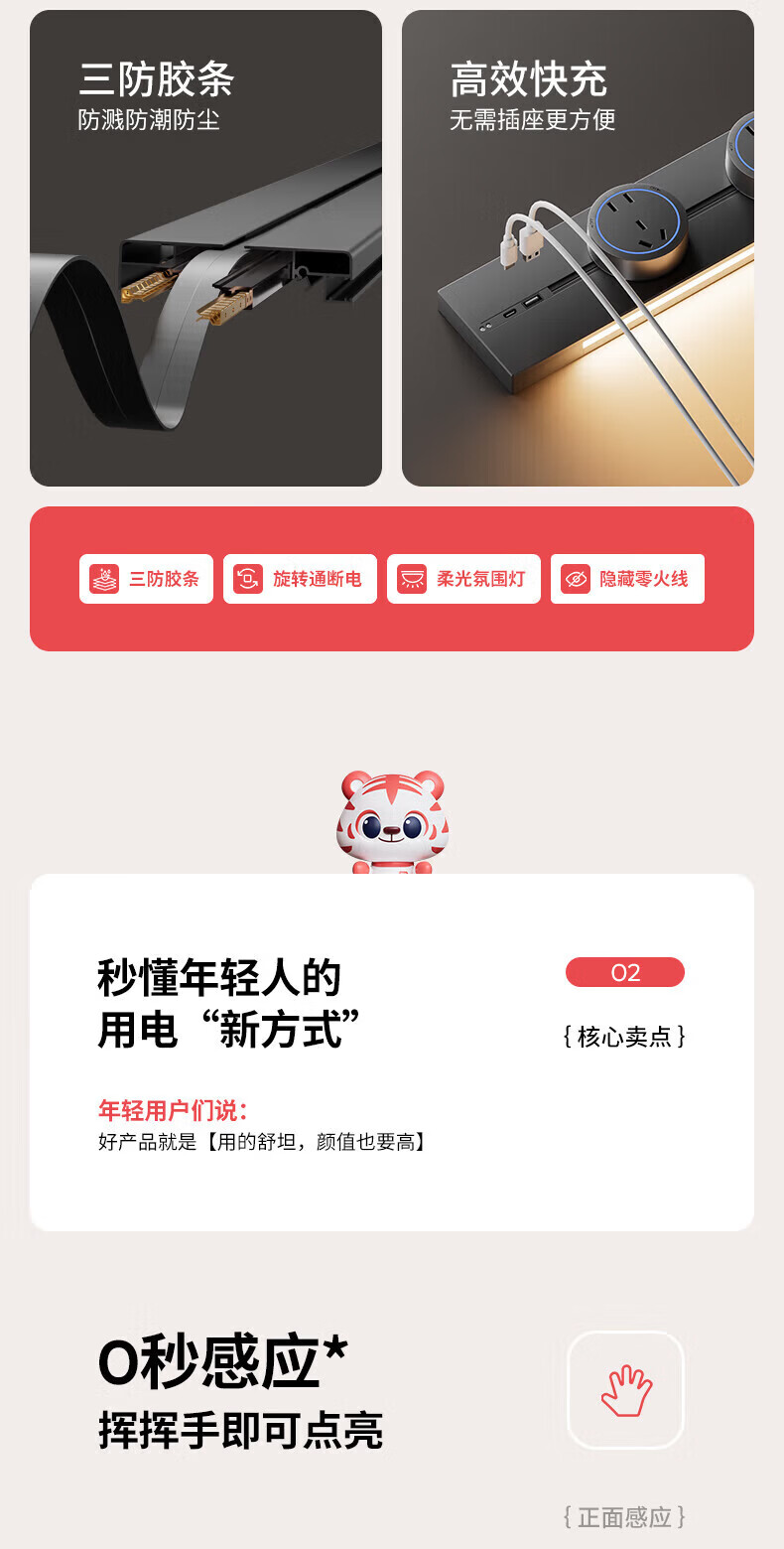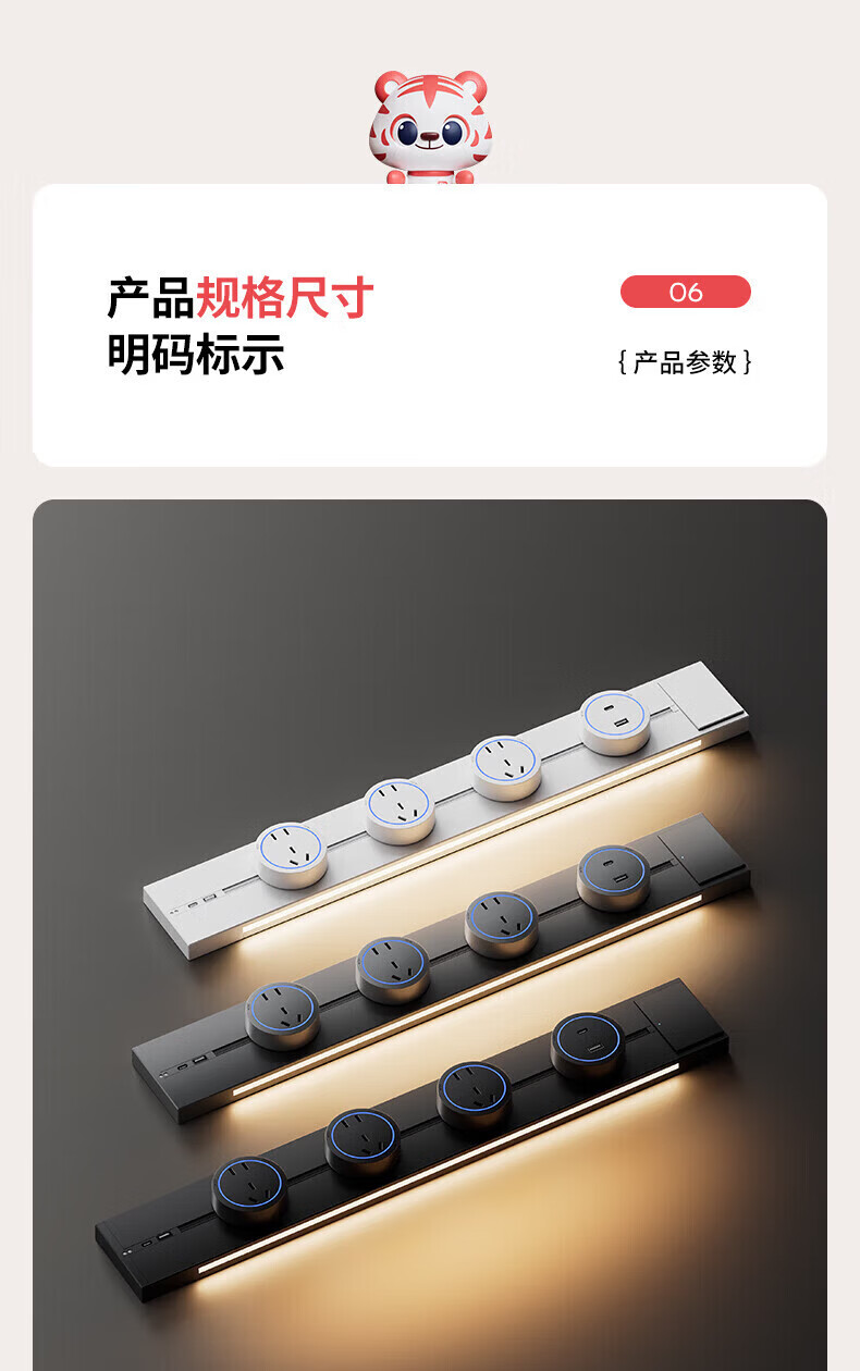 国际电工带感应灯带开关轨道插座可移动明装电力导轨厨房家用轨道带USB口 白色 感应灯40厘米轨道+2个大五孔+快充【带开关】