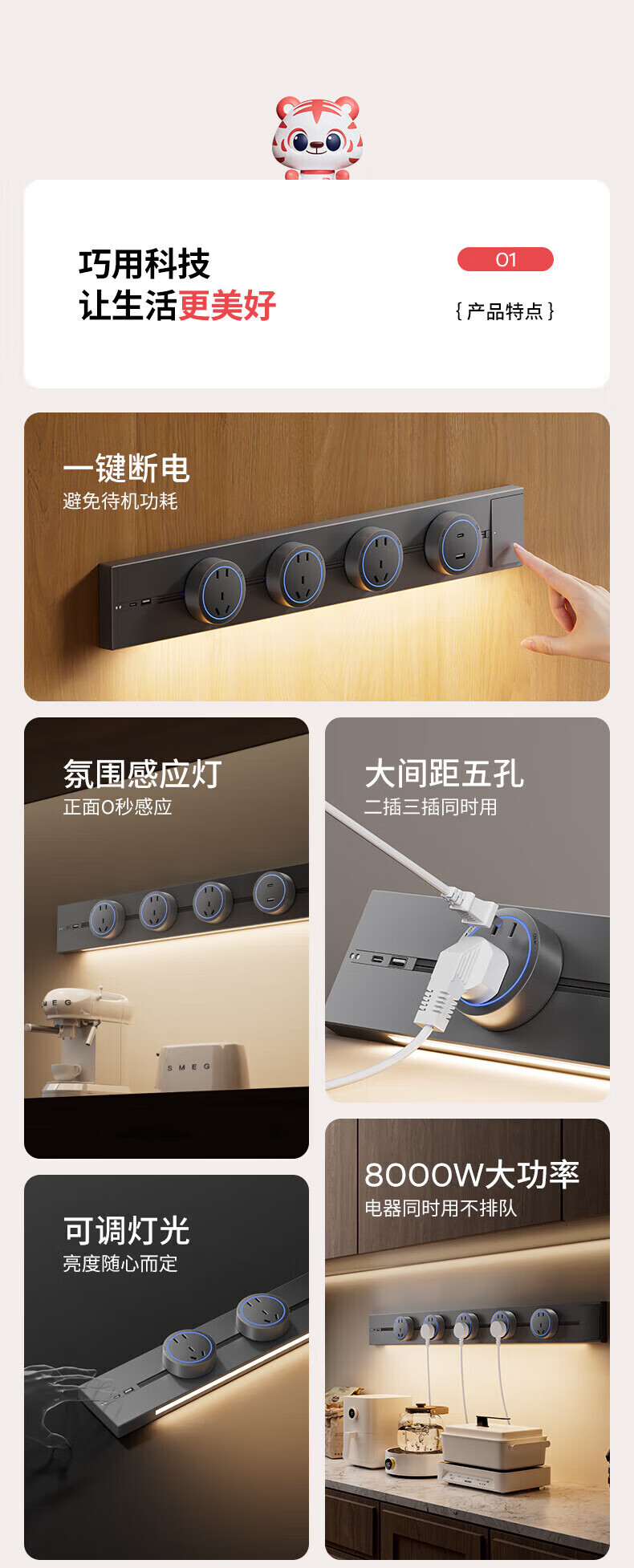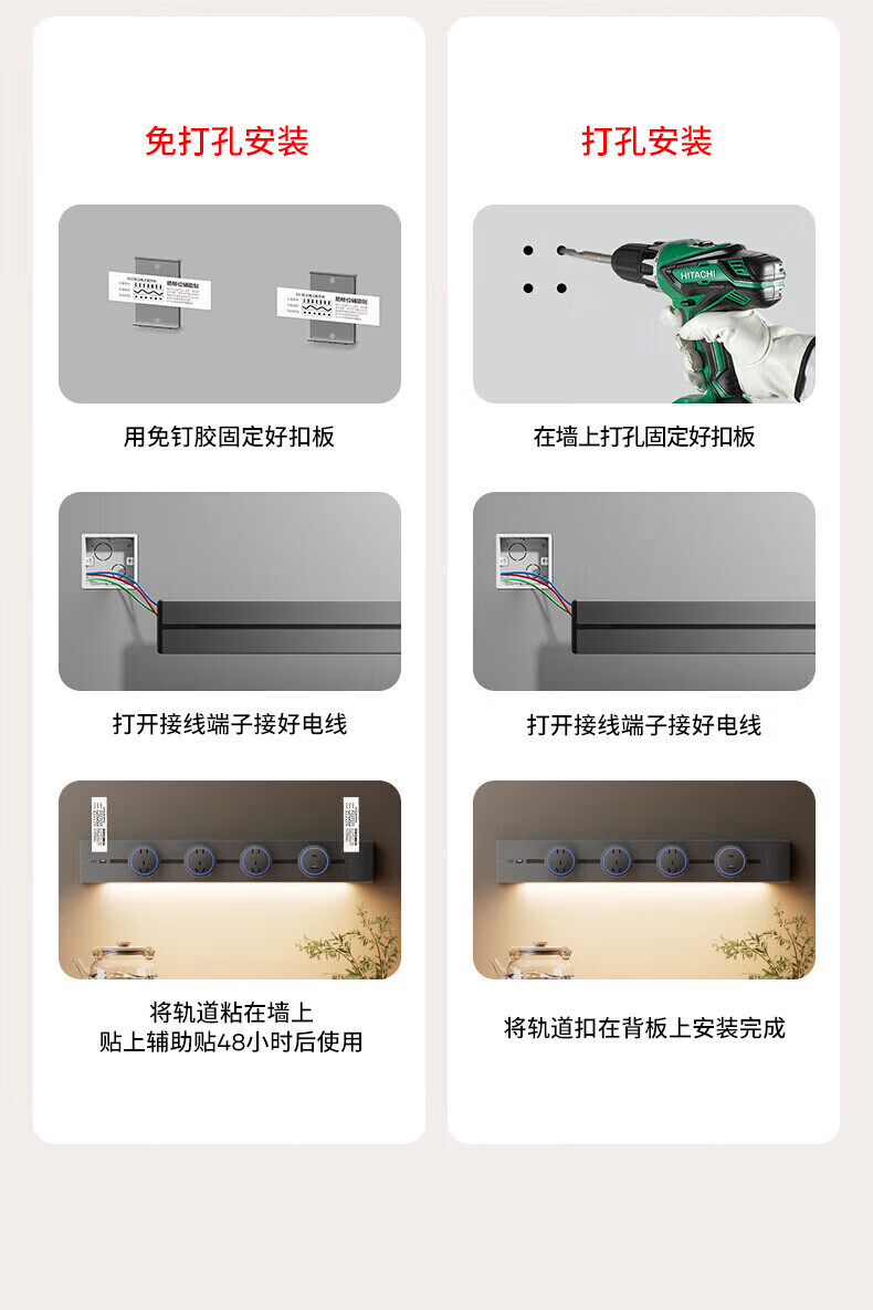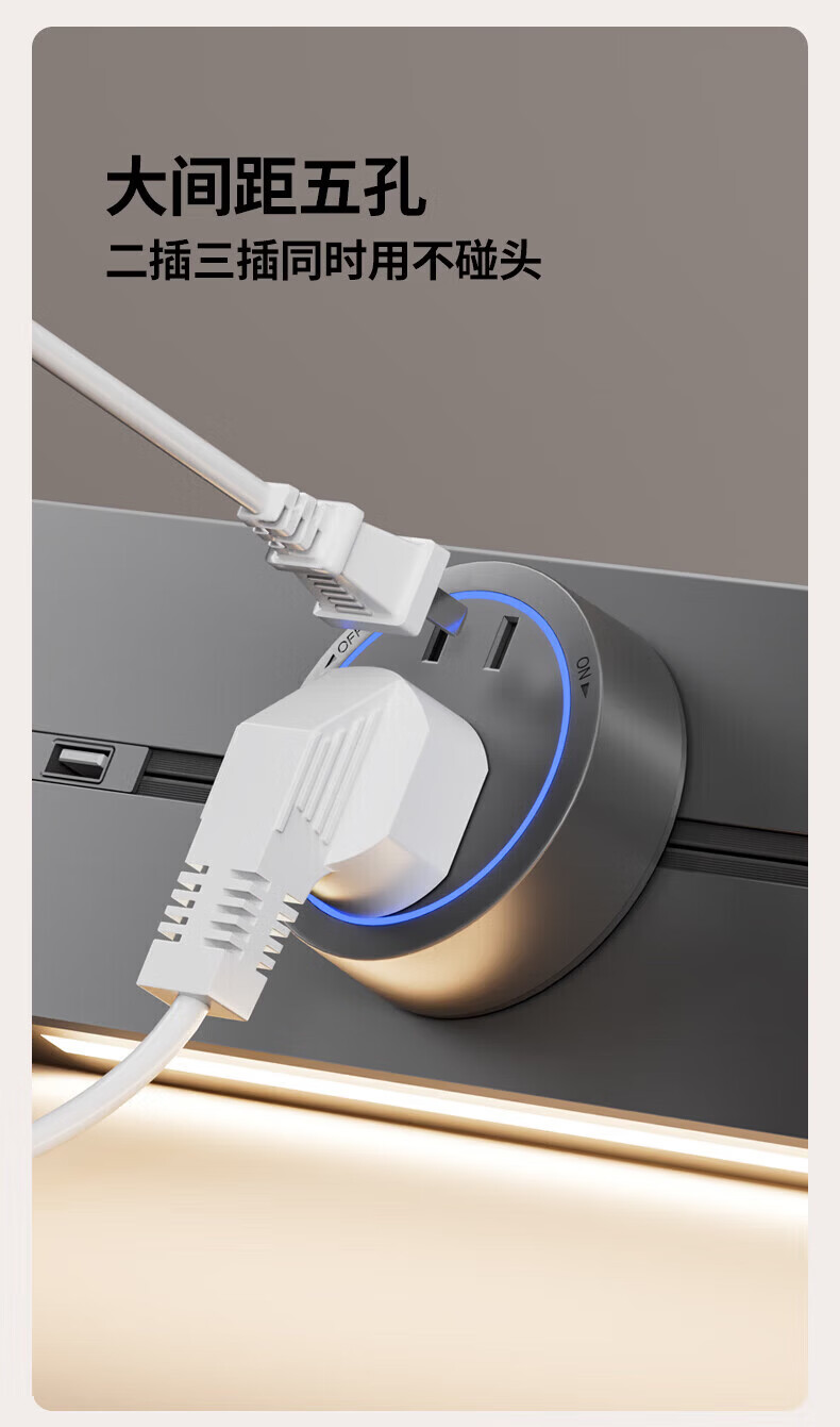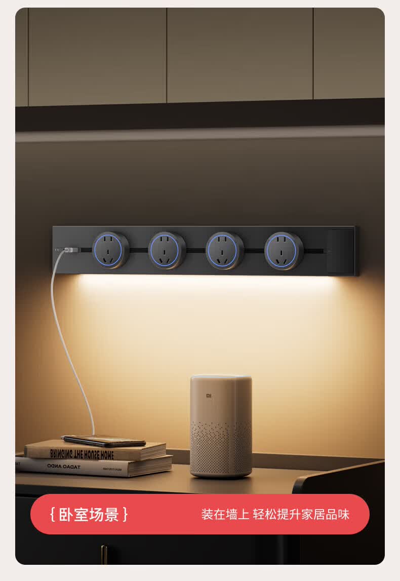 国际电工带感应灯带开关轨道插座可移动明装电力导轨厨房家用轨道带USB口 白色 感应灯40厘米轨道+2个大五孔+快充【带开关】