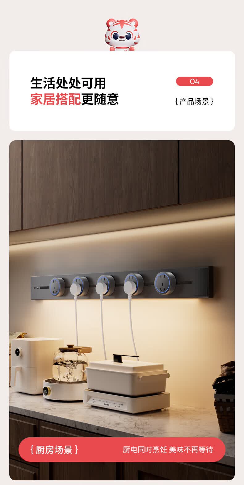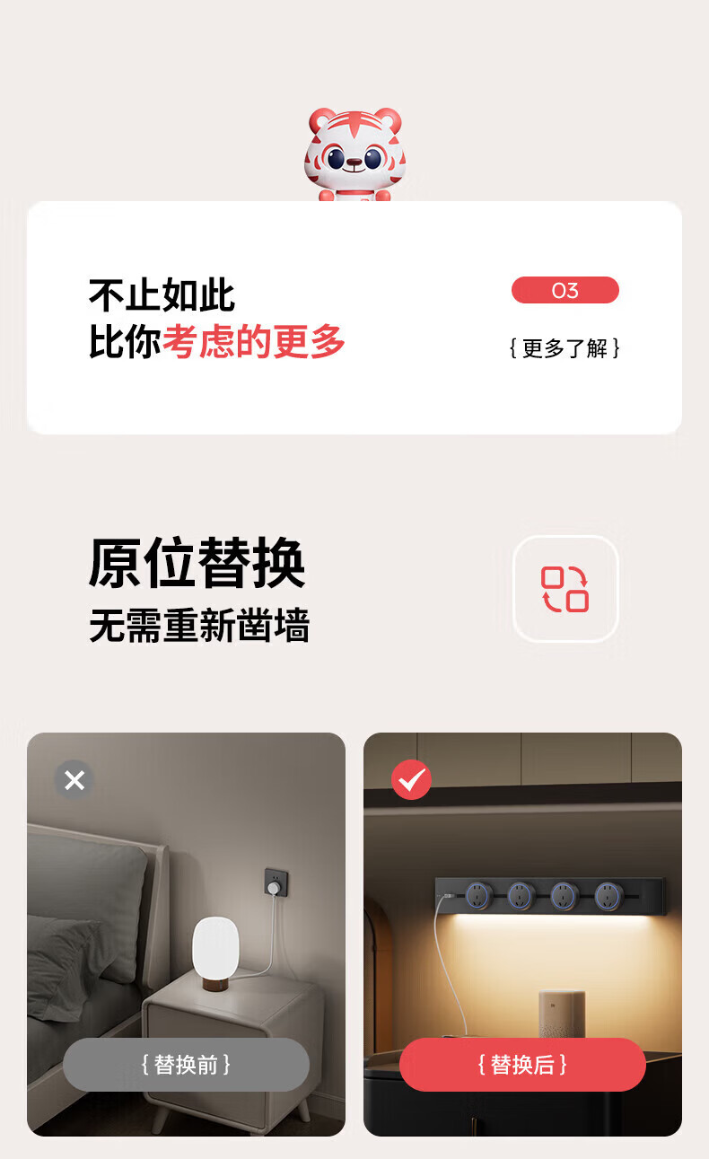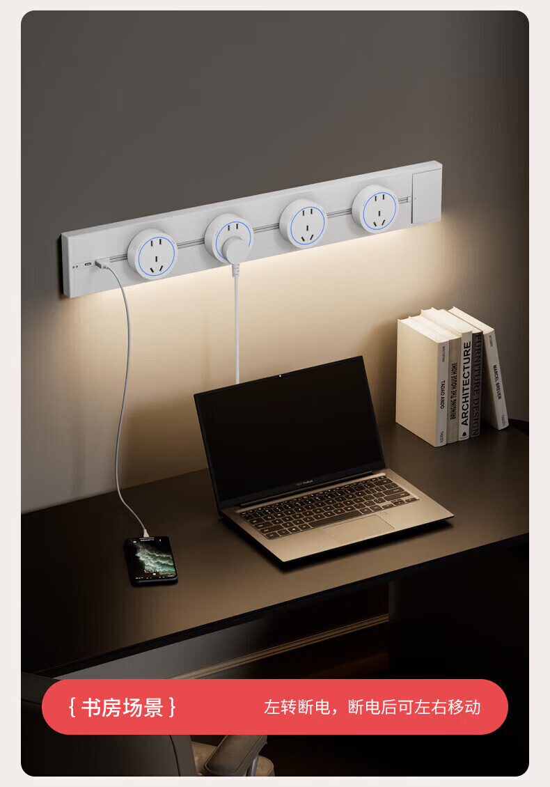 国际电工(FDD)原位扩展插座86型家用厨房分控带开关插排多功能USB快充拓展排插 白色带USB-三开21孔-向左扩展(2.1A)