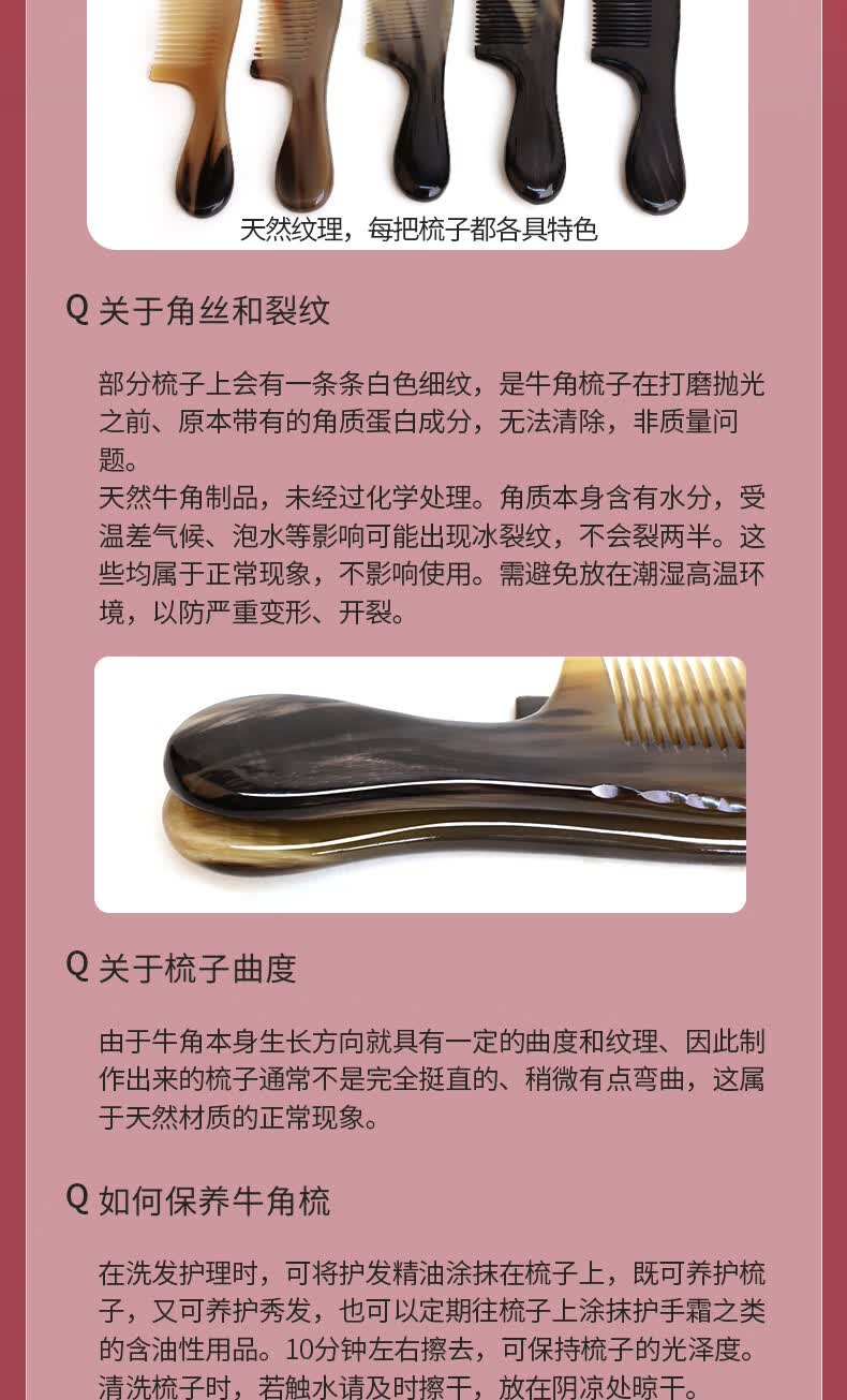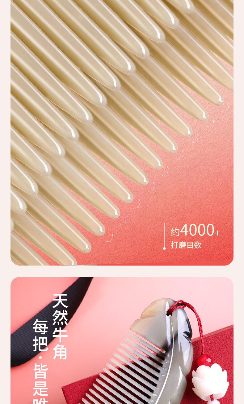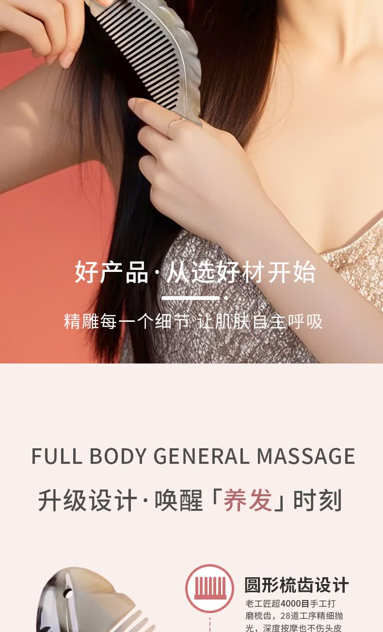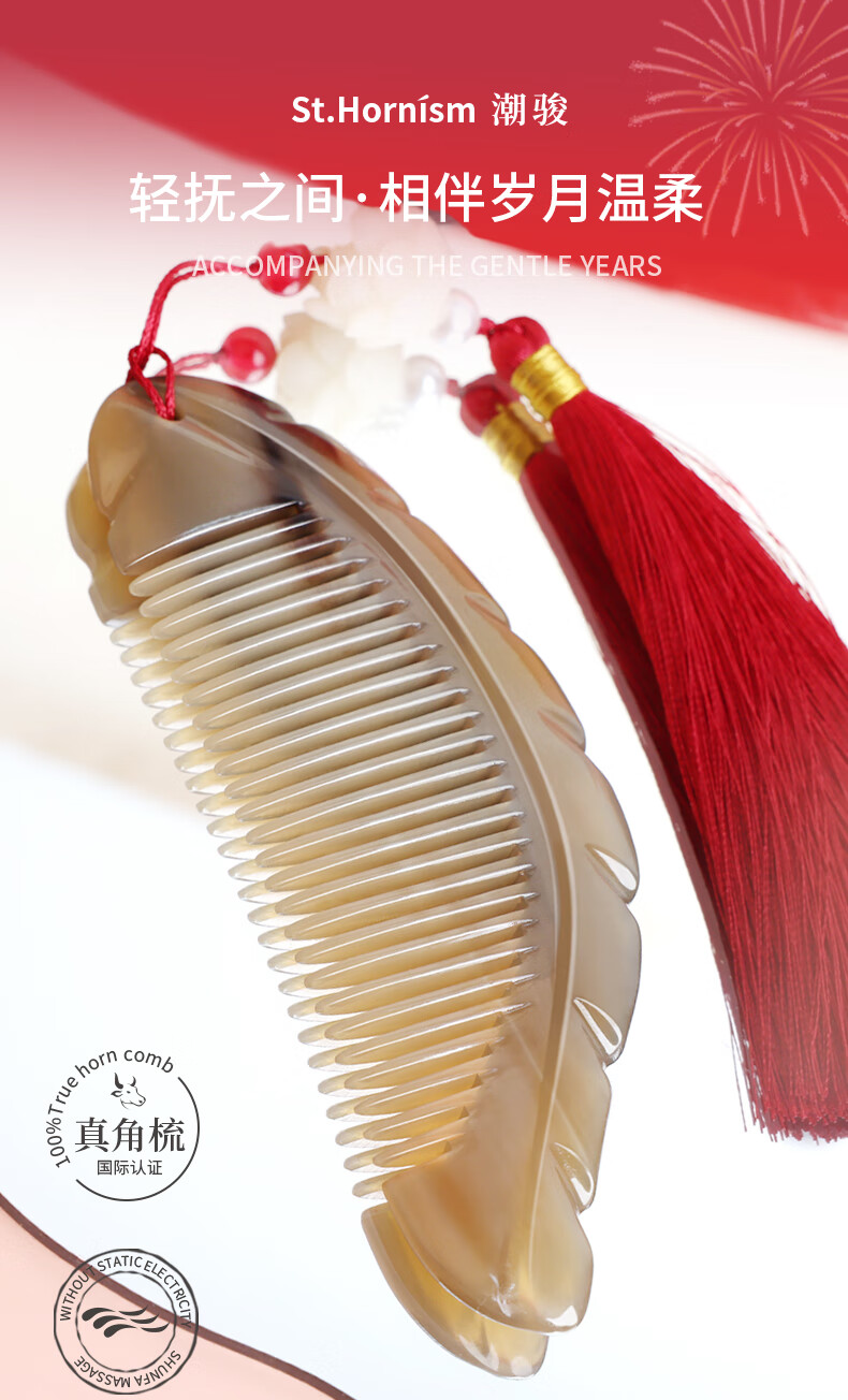 潮骏正宗天然白水牛角梳便携按摩经络送老婆妈女友生日节礼物实用高档