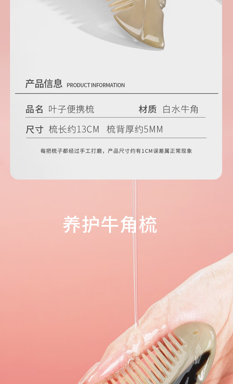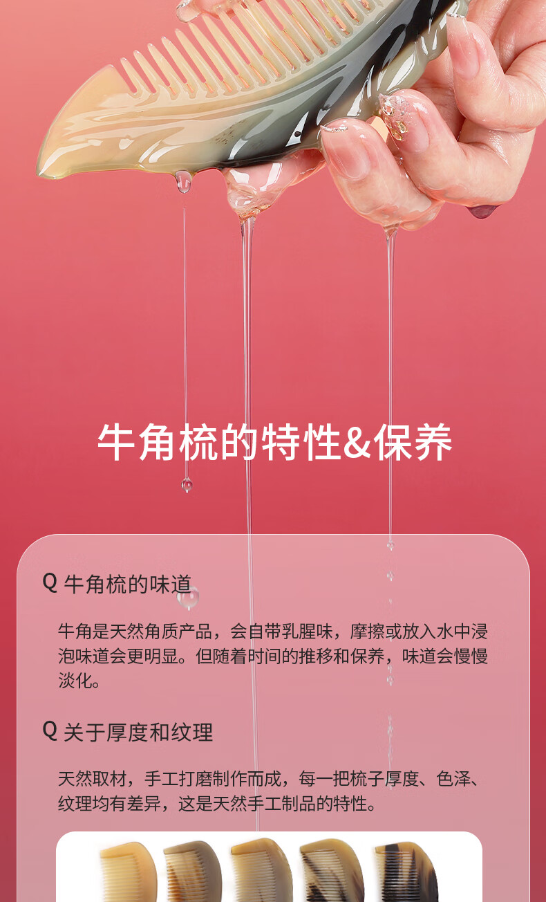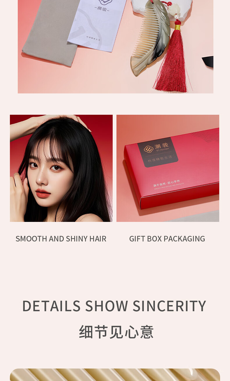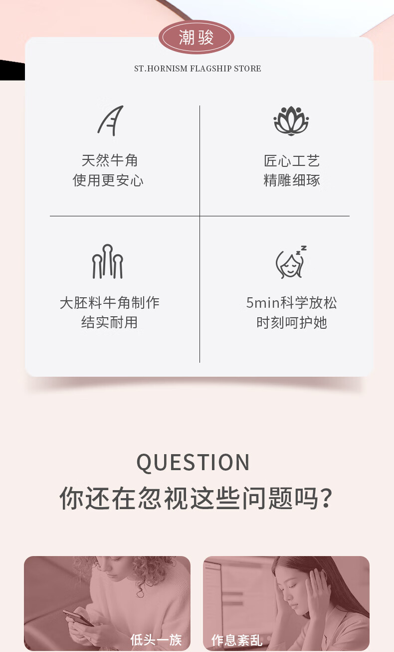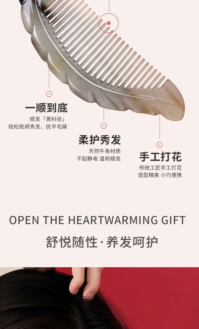 潮骏正宗天然白水牛角梳便携按摩经络送老婆妈女友生日节礼物实用高档