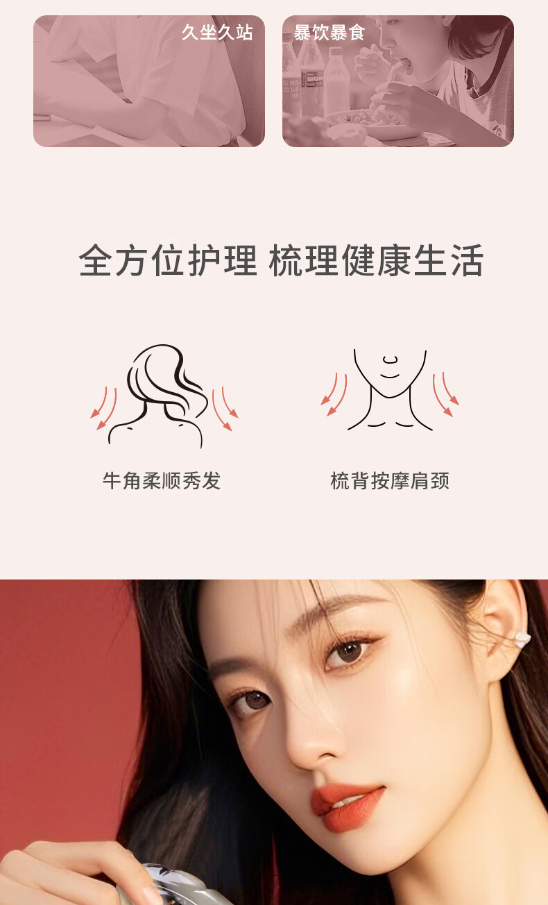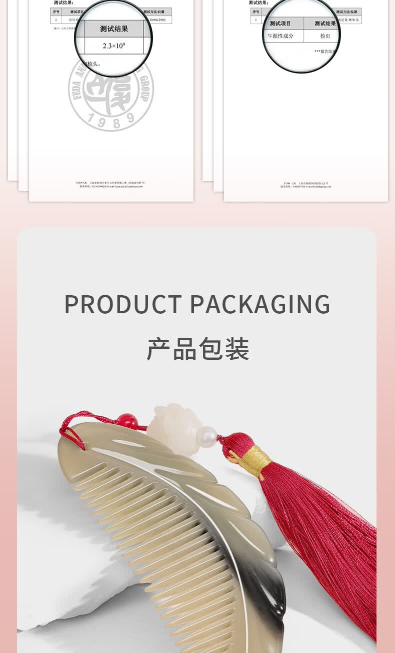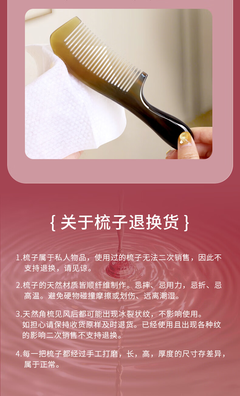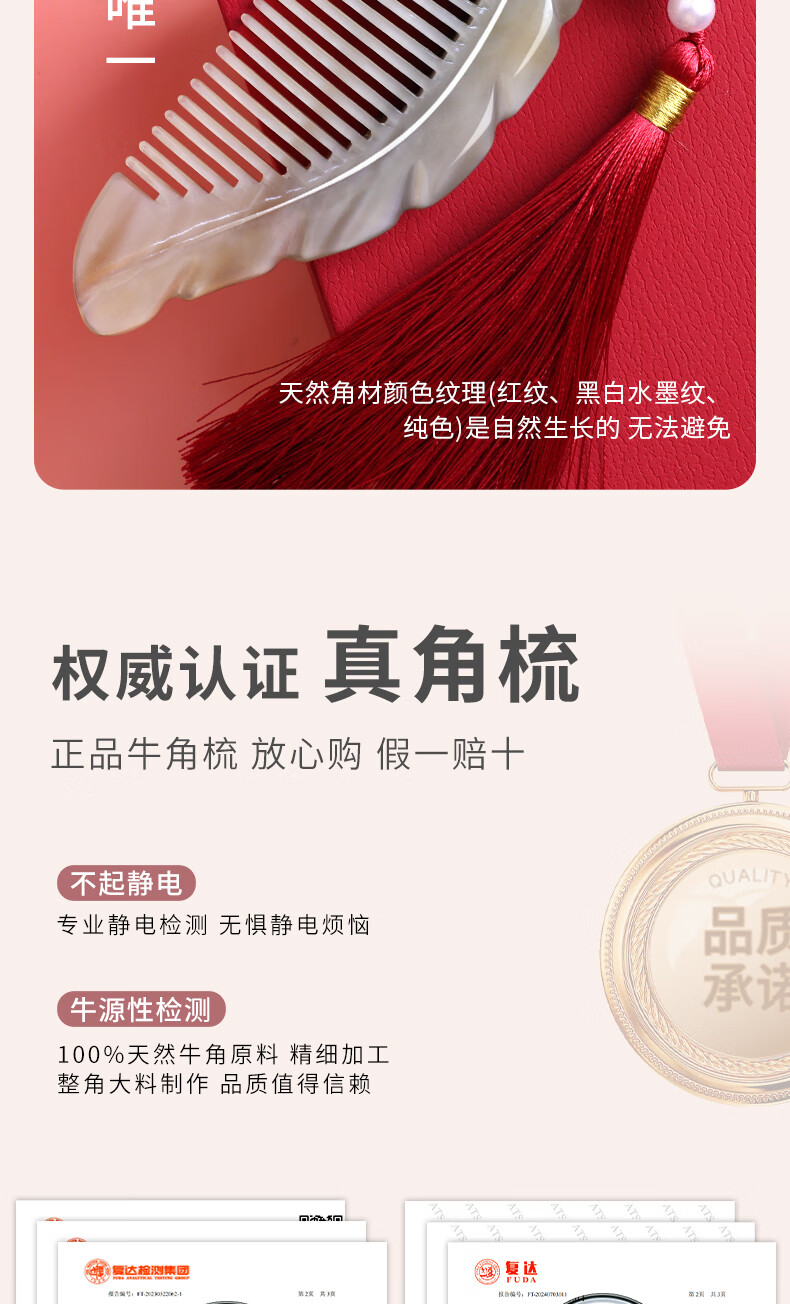 潮骏正宗天然白水牛角梳便携按摩经络送老婆妈女友生日节礼物实用高档