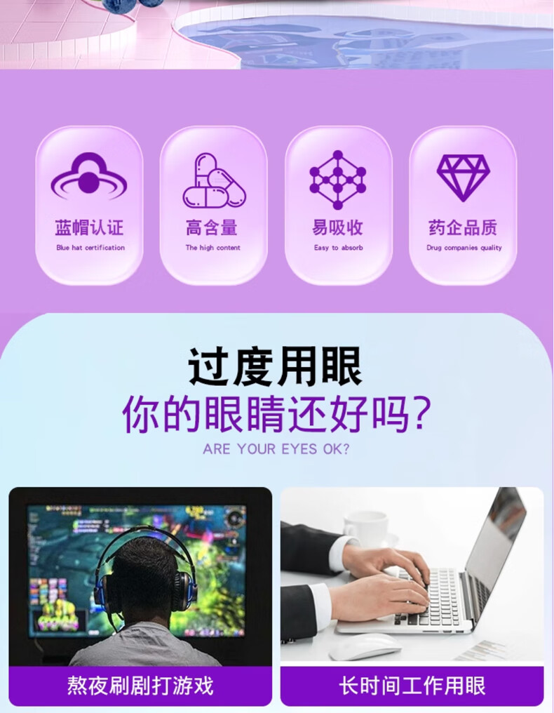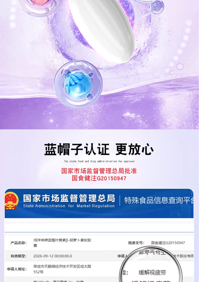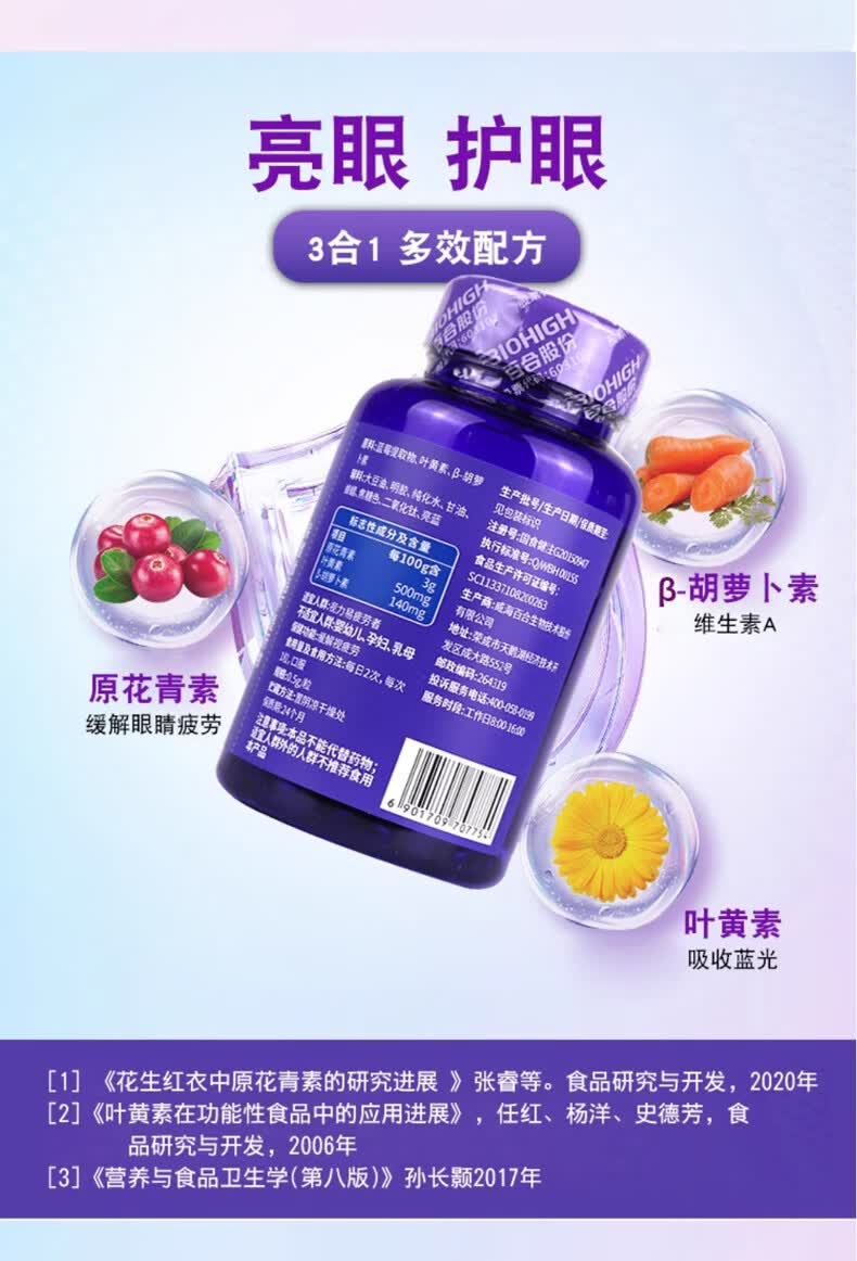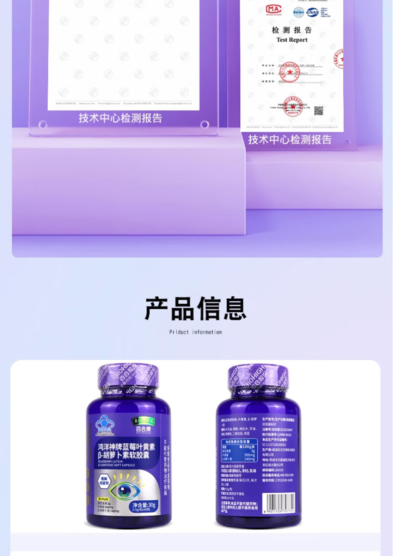 百合康蓝莓叶黄素β-胡萝卜素软胶囊60粒缓解视疲劳线下药房同款 蓝莓叶黄素β-胡萝卜素软胶囊1瓶