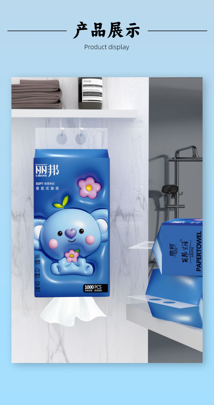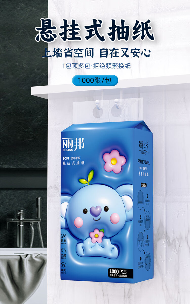 丽邦1000张原生木浆挂抽悬挂式抽纸四层加厚擦手纸 4层 1000张*1提