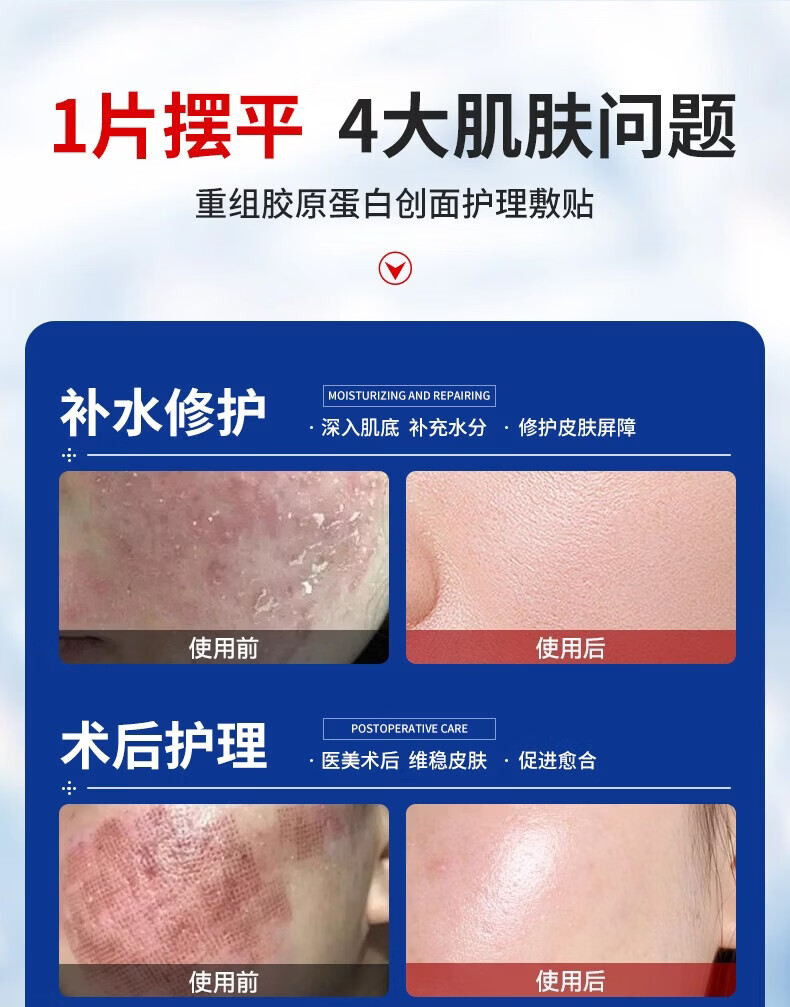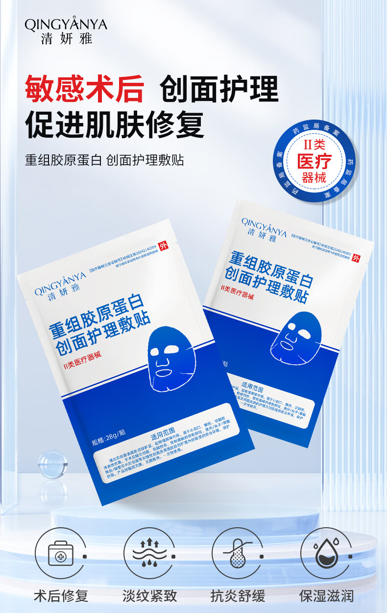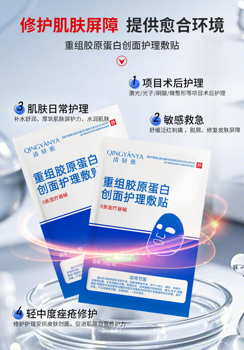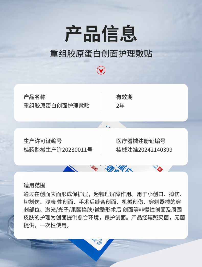 重组胶原蛋白创面面膜械字号无菌级医美术后修复补水型祛痘 3片