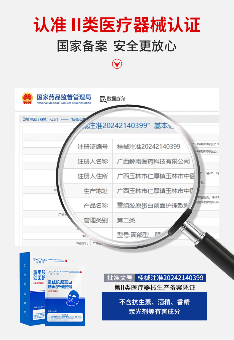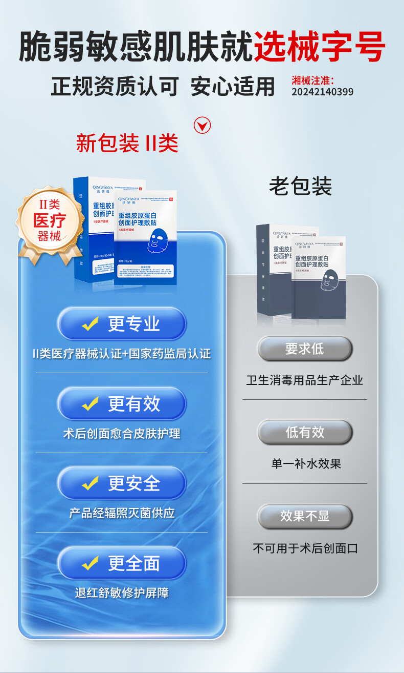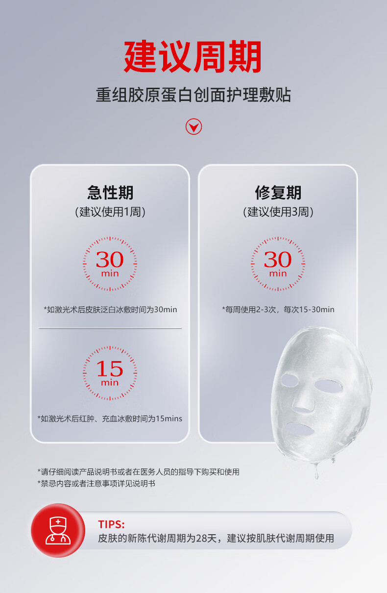 重组胶原蛋白创面面膜械字号无菌级医美术后修复补水型祛痘 3片