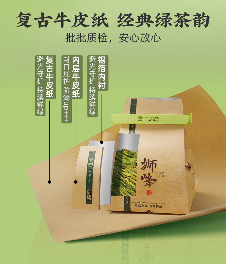 狮峰2025雨前三级龙井茶叶250g+50g组合装绿茶春茶自己喝口粮茶