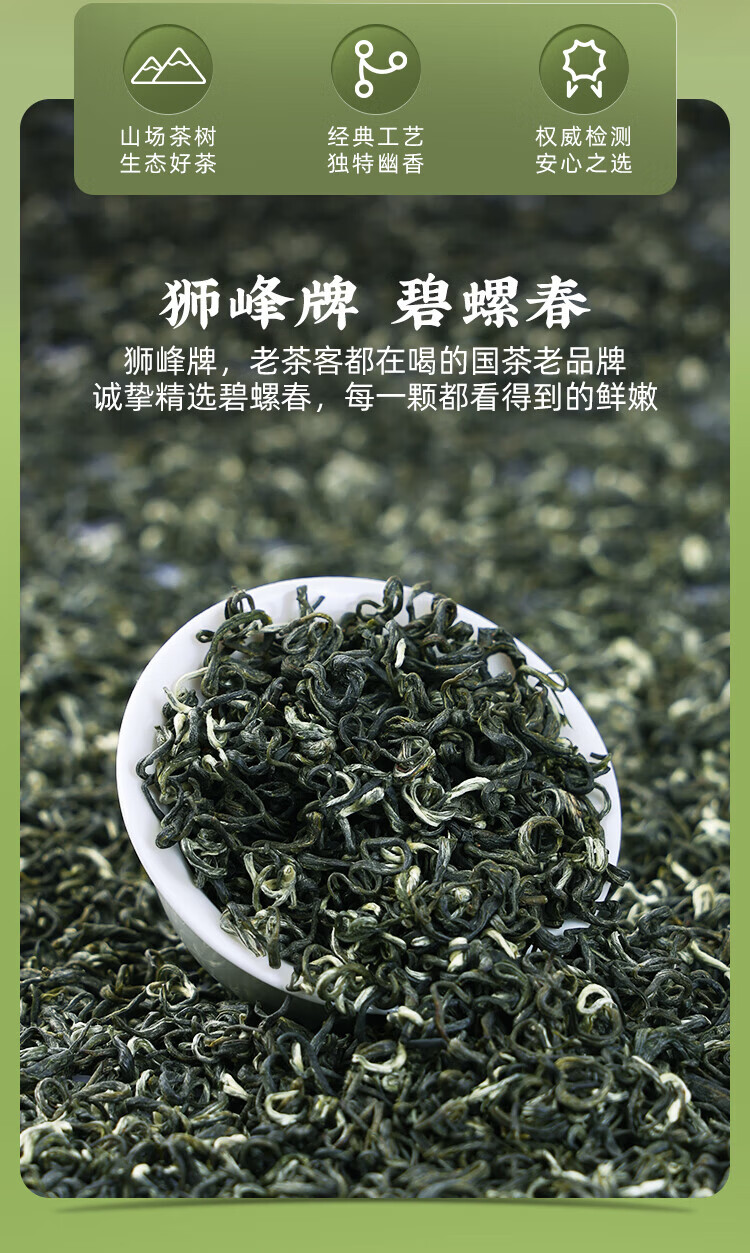 狮峰牌2025新茶明前特级精选碧螺春高山绿茶叶春茶自己喝送礼 100g小罐装