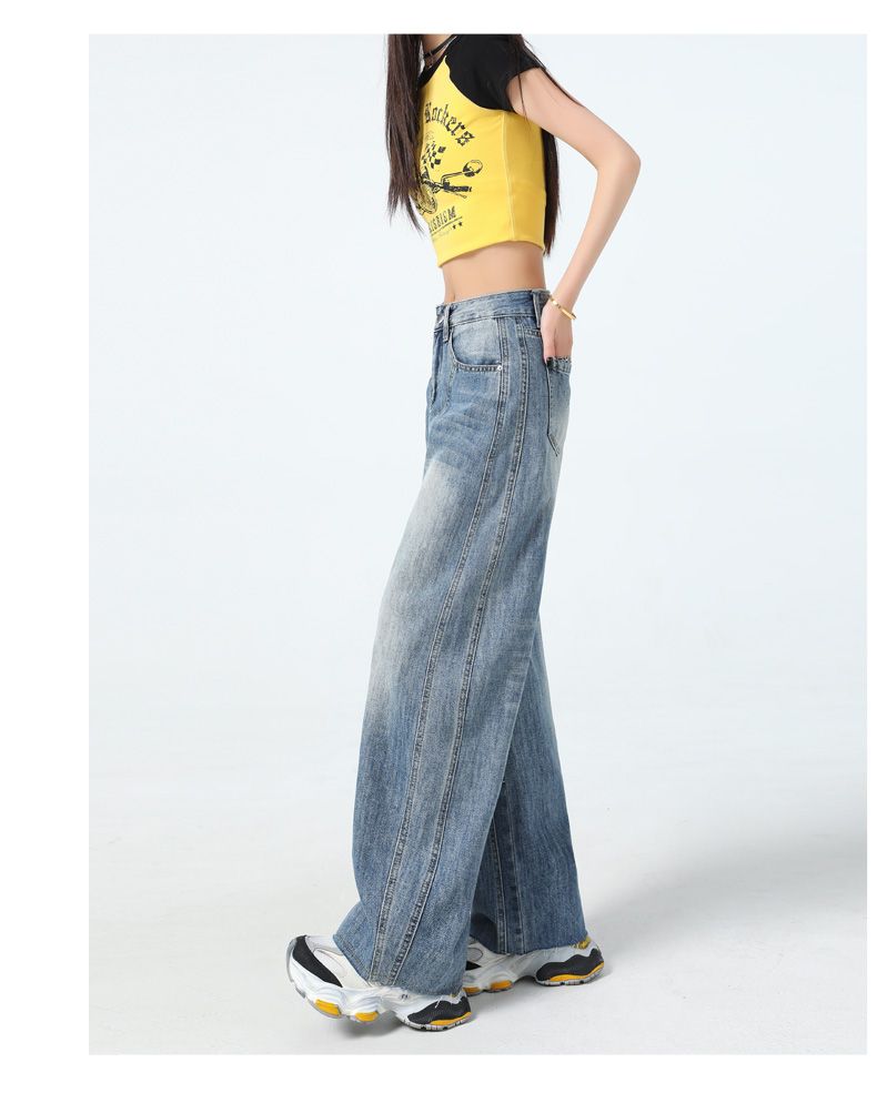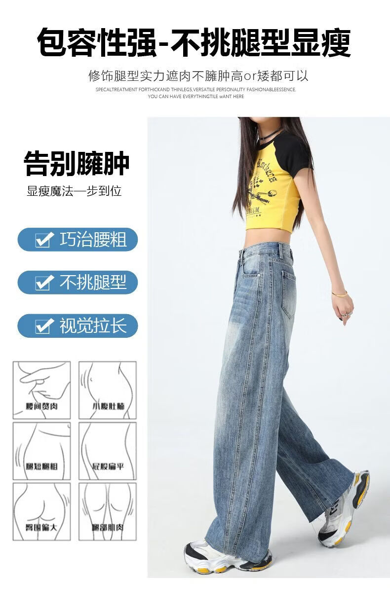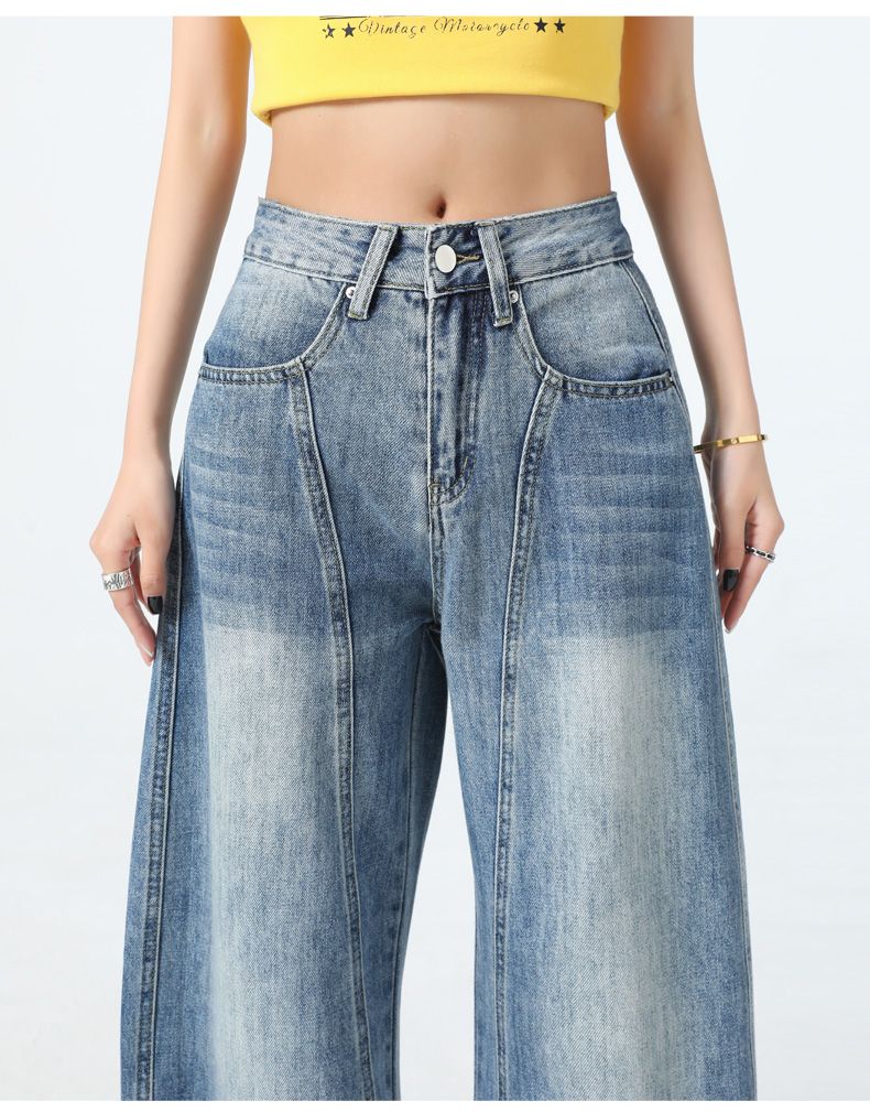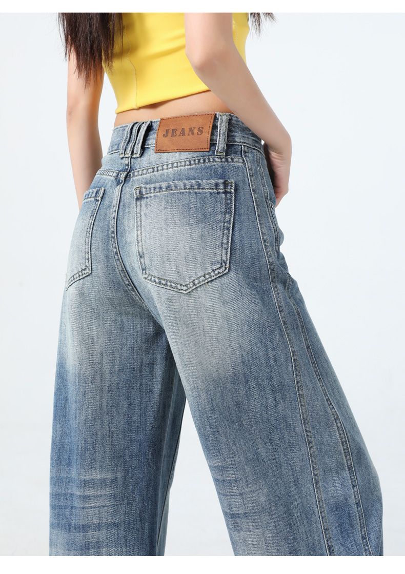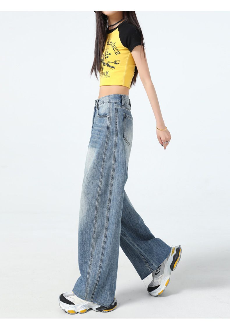 真维斯(Jeanswest)美式复古阔腿牛仔裤女春夏季新款镰刀裤直筒宽松拖地裤子女 复古蓝长裤 M