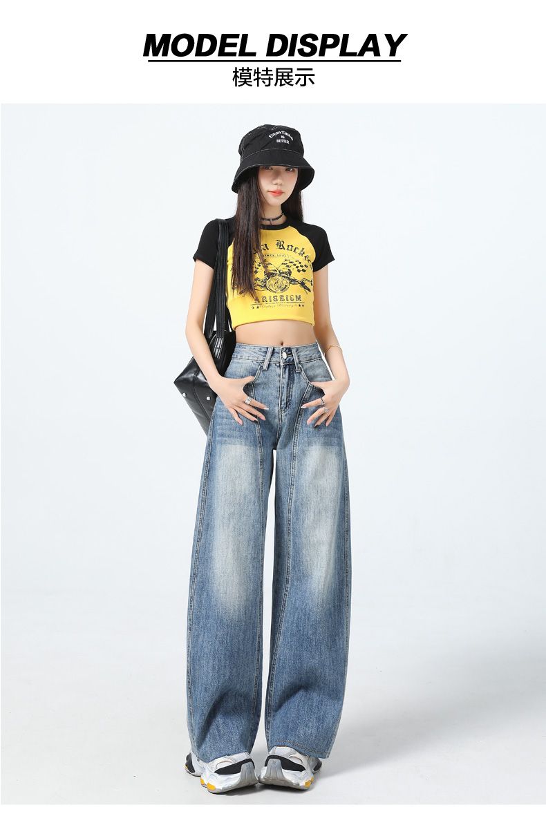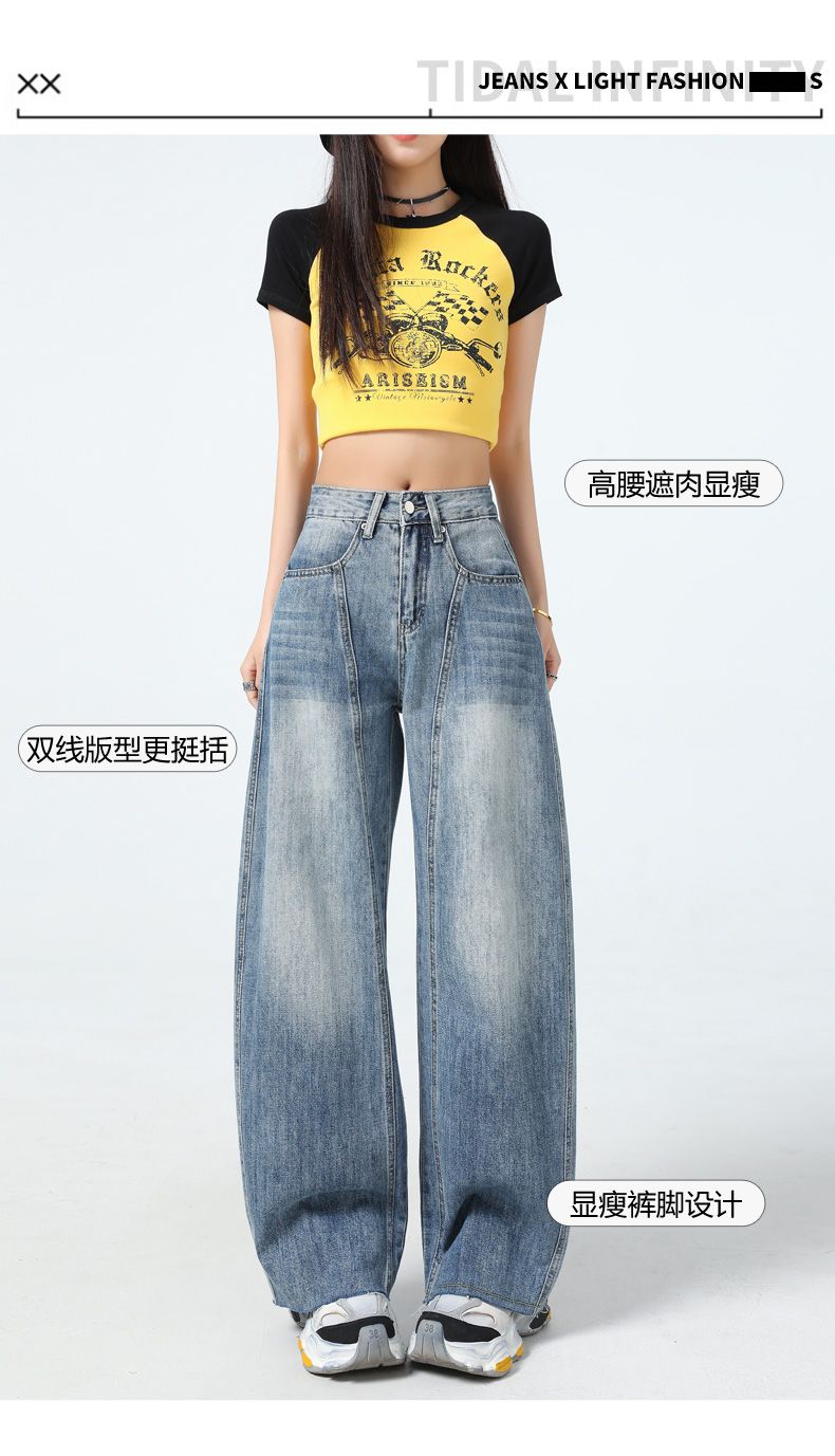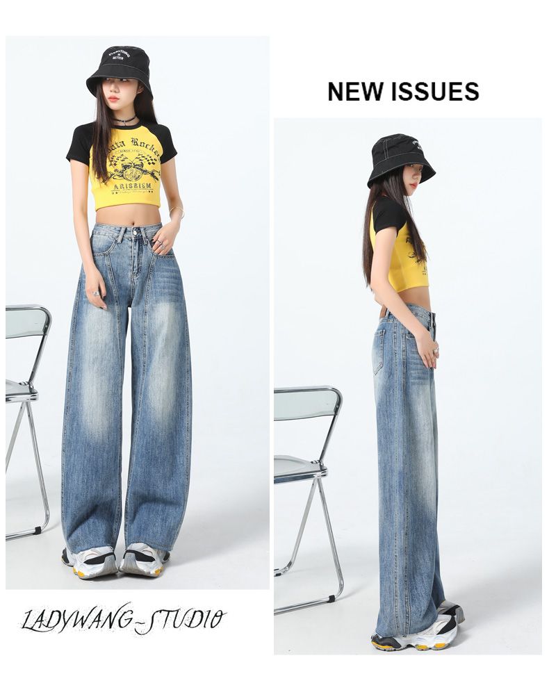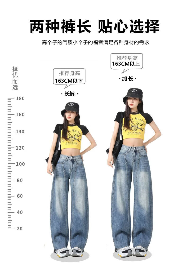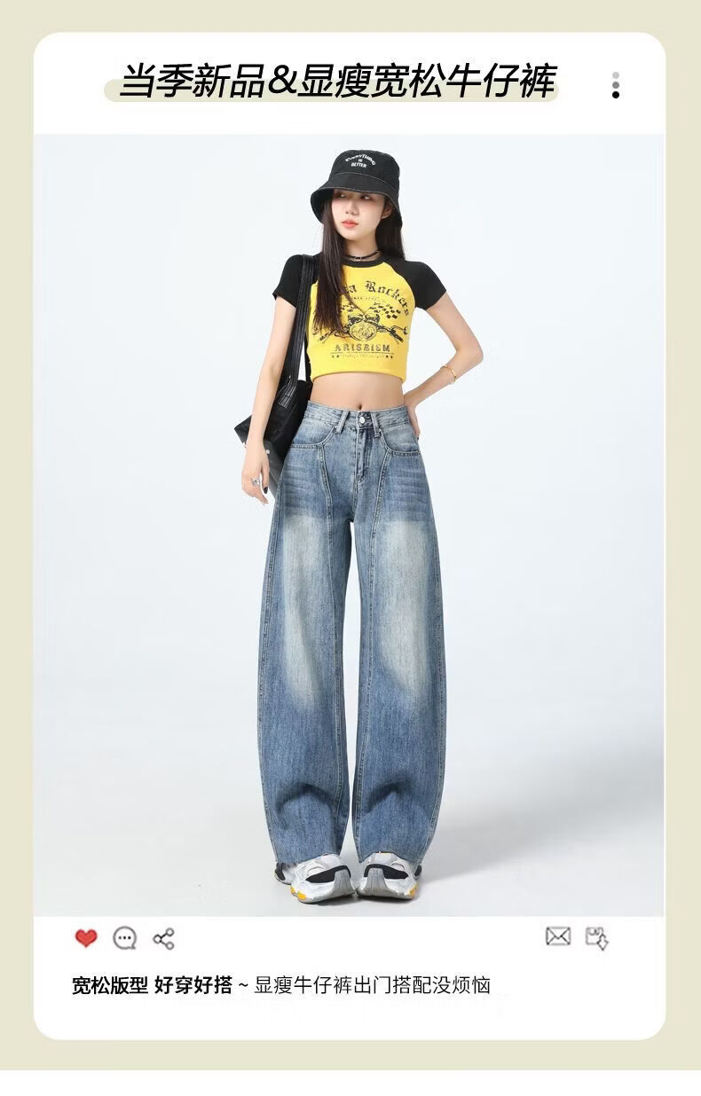 真维斯(Jeanswest)美式复古阔腿牛仔裤女春夏季新款镰刀裤直筒宽松拖地裤子女 复古蓝长裤 M