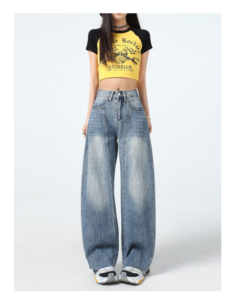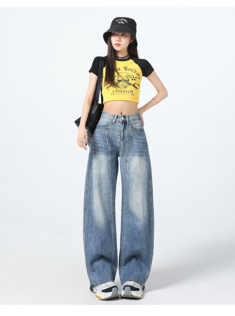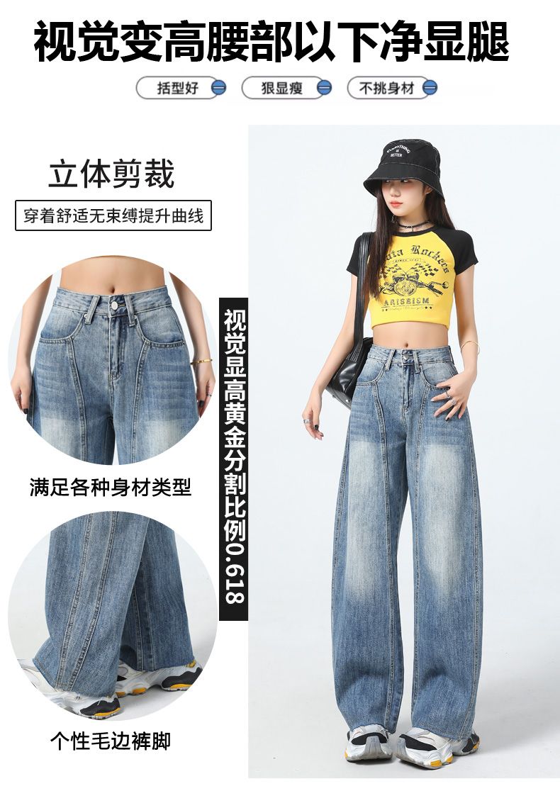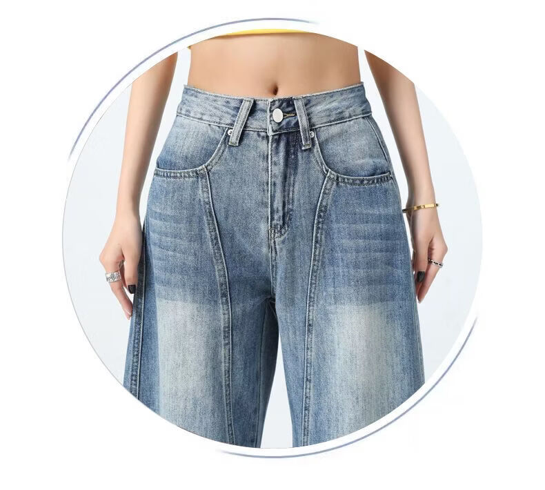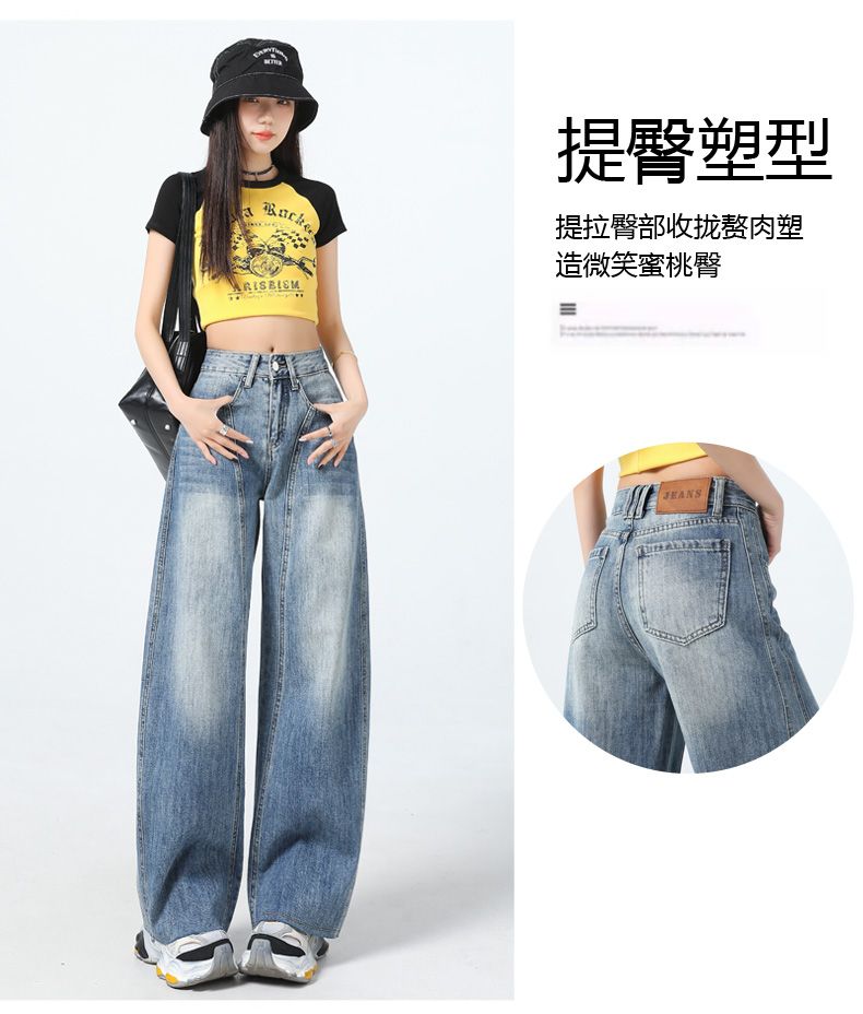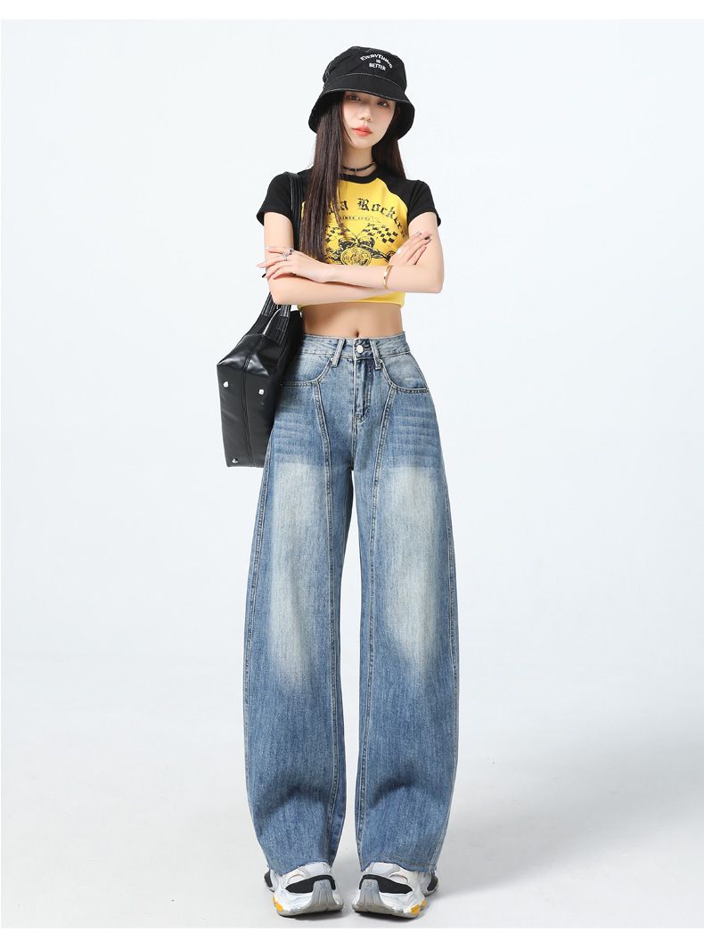 真维斯(Jeanswest)美式复古阔腿牛仔裤女春夏季新款镰刀裤直筒宽松拖地裤子女 复古蓝长裤 M