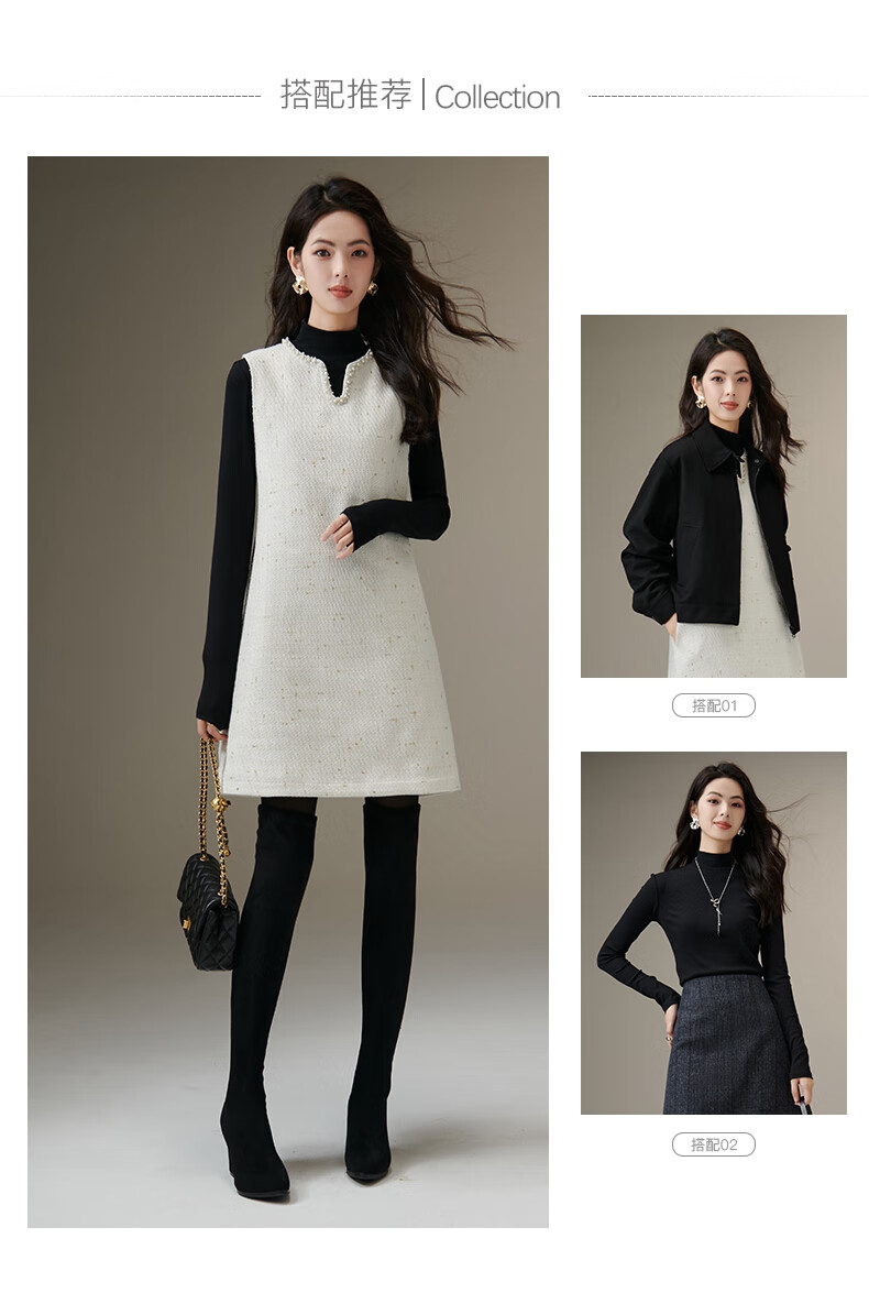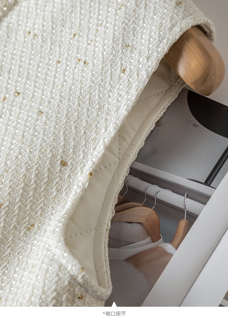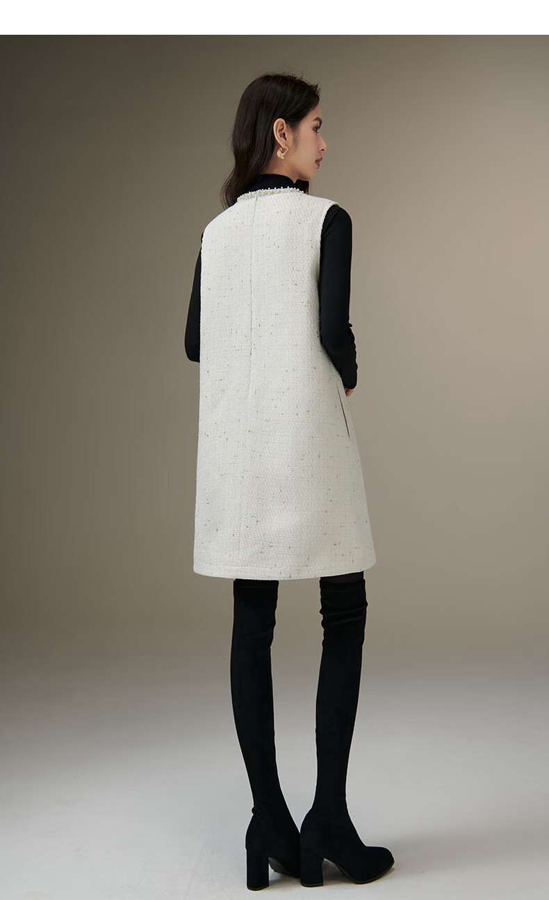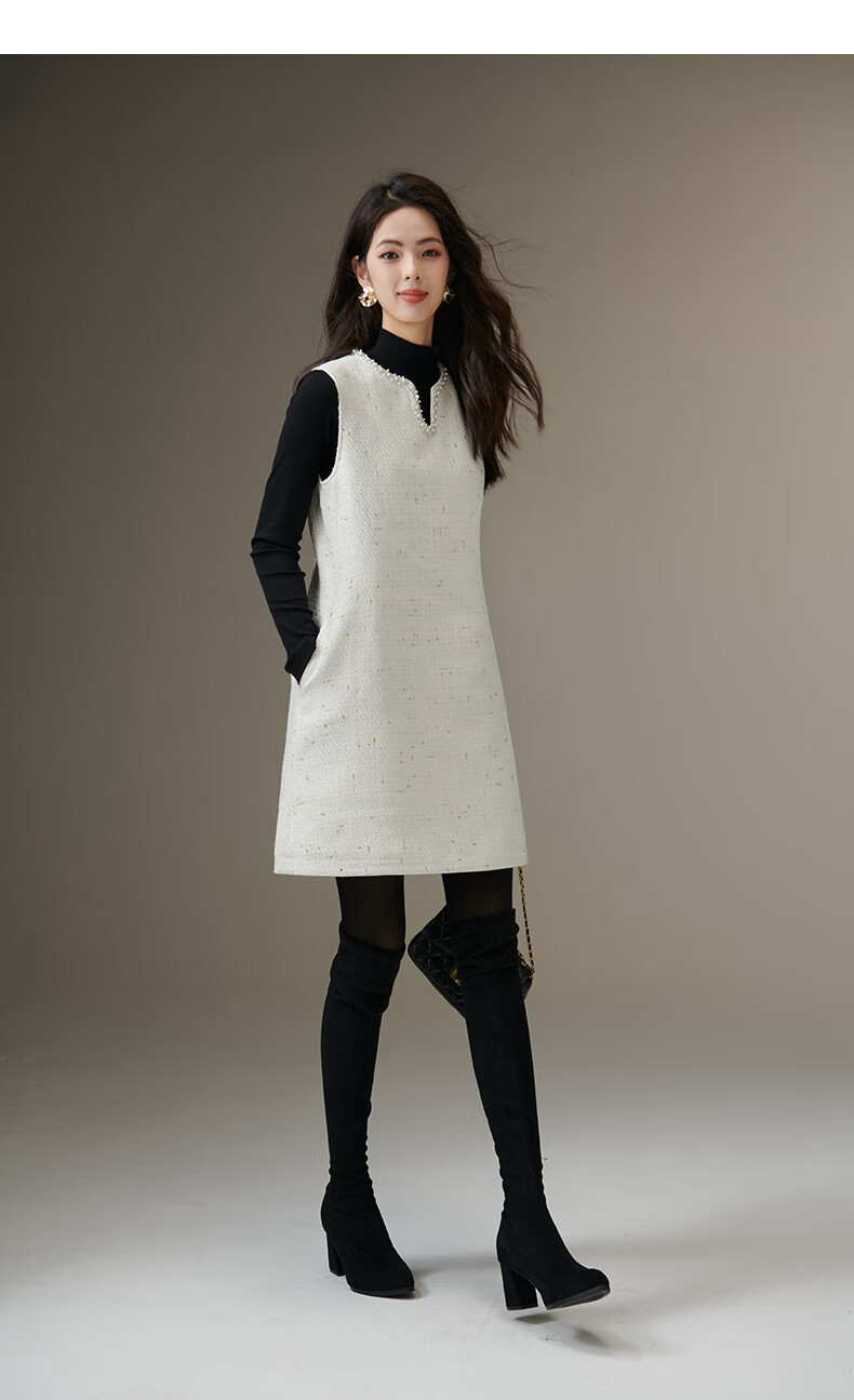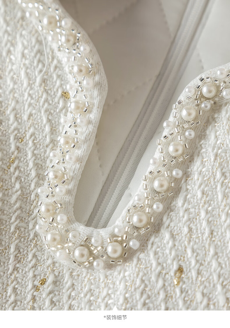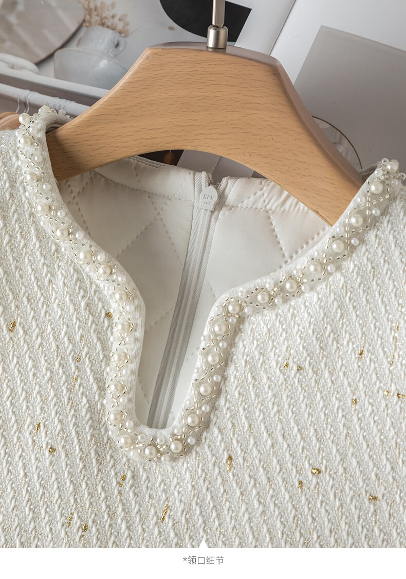 晚白【断码清仓】冬款时尚小香风粗花呢连衣裙小众设计感夹棉背心裙 米白色 M