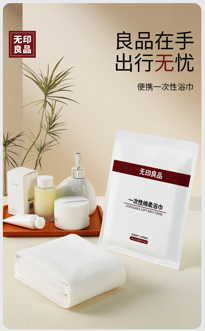 无印良品一次性浴巾加厚加大珍珠纹旅行用品大号可酒店出差便携独立装5包