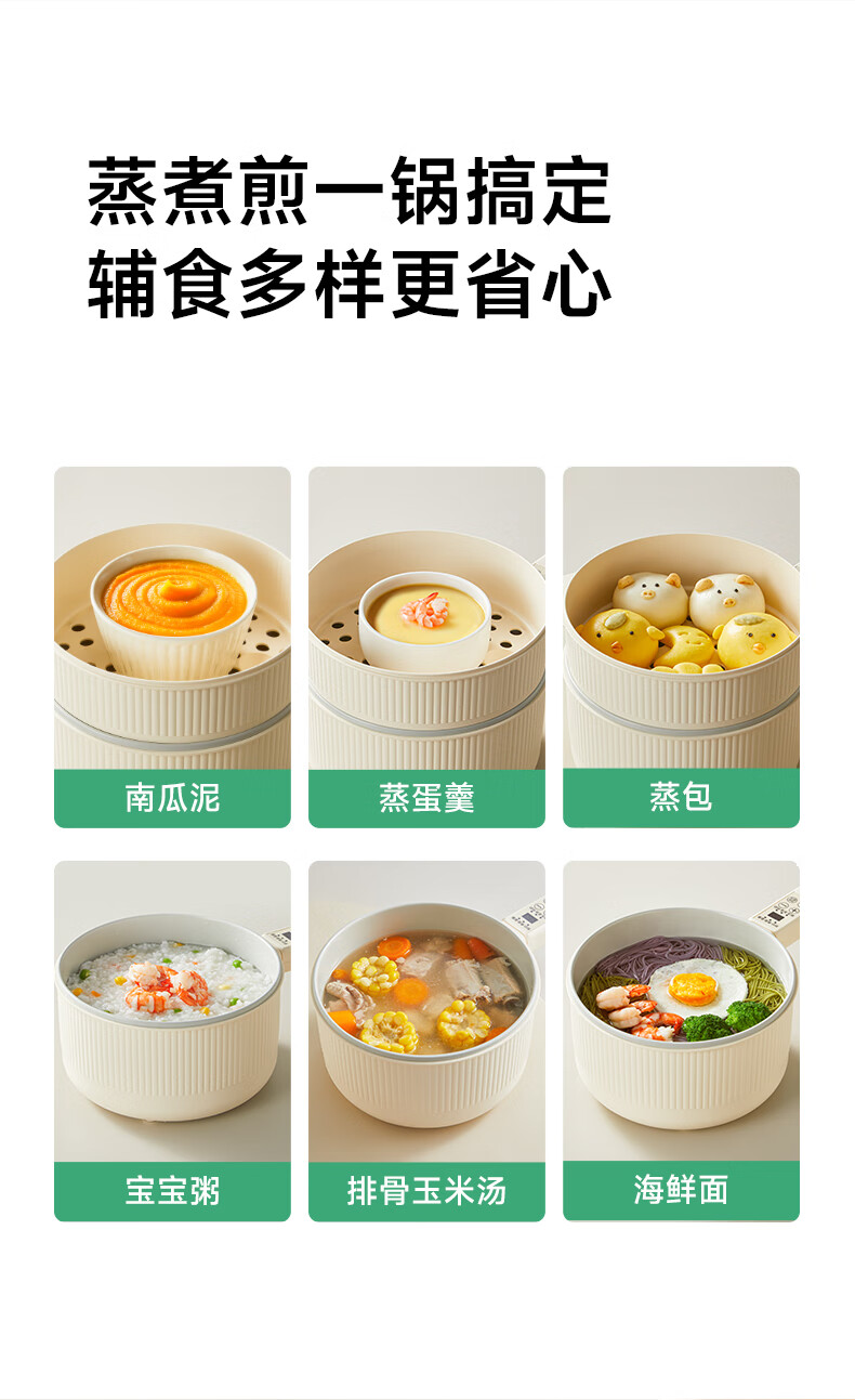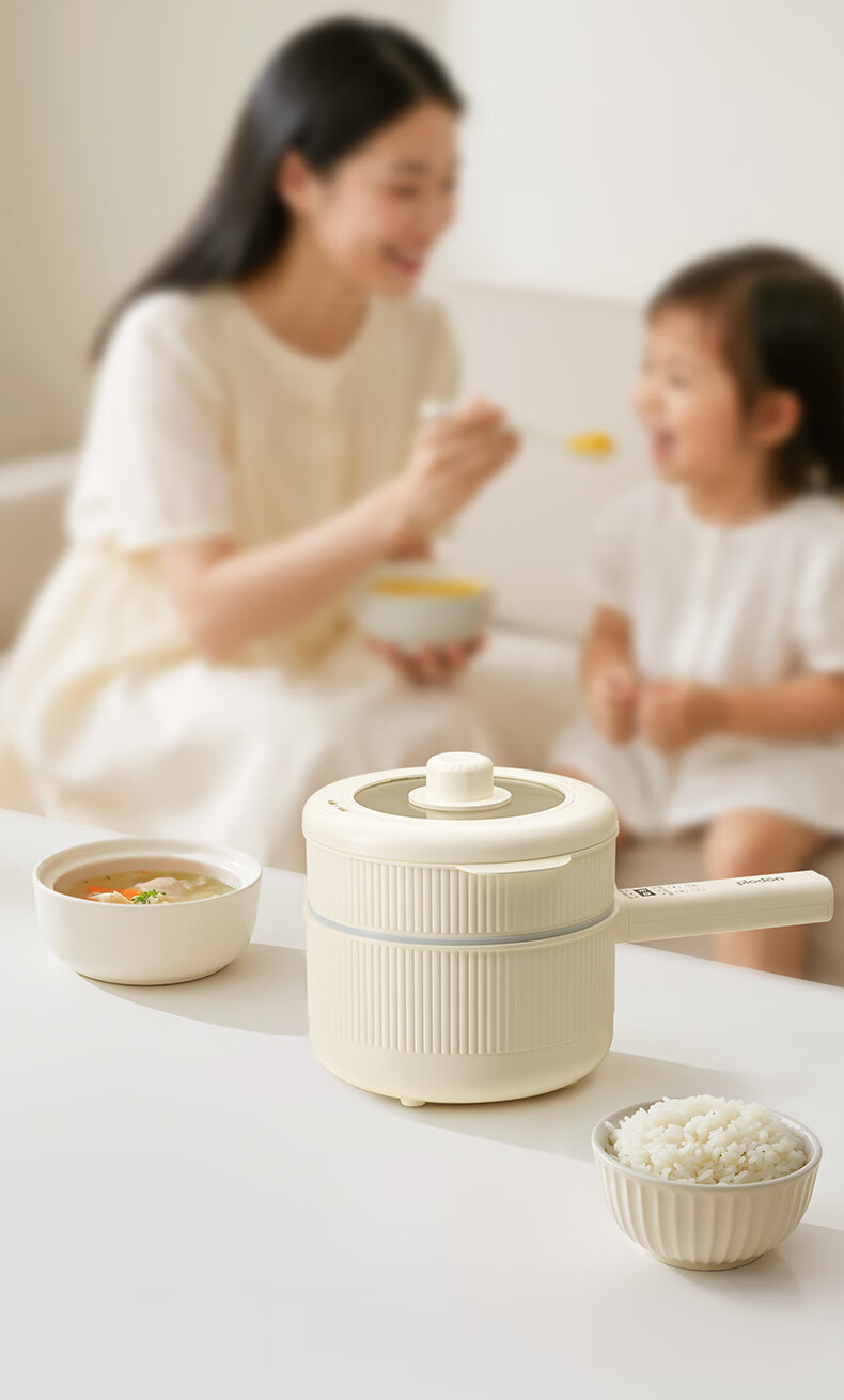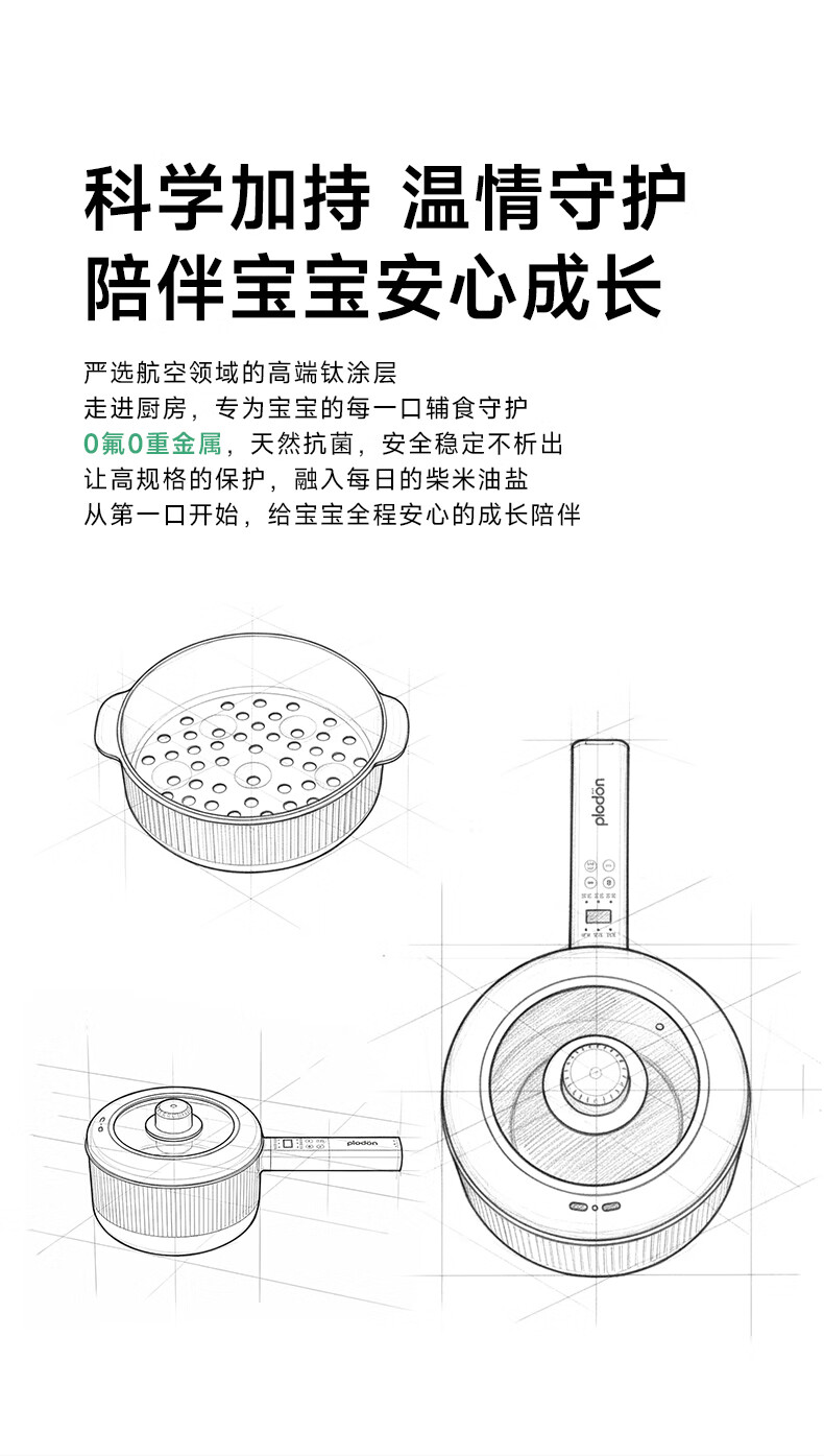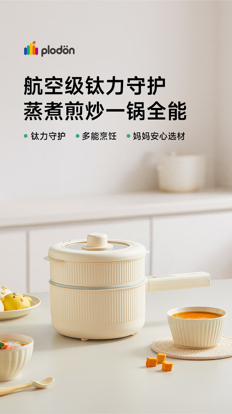浦利顿(PLODON)辅食锅 婴儿BB煲煎煮蒸炒一体 宝宝煲粥炖汤小奶锅 小电锅 电煮锅