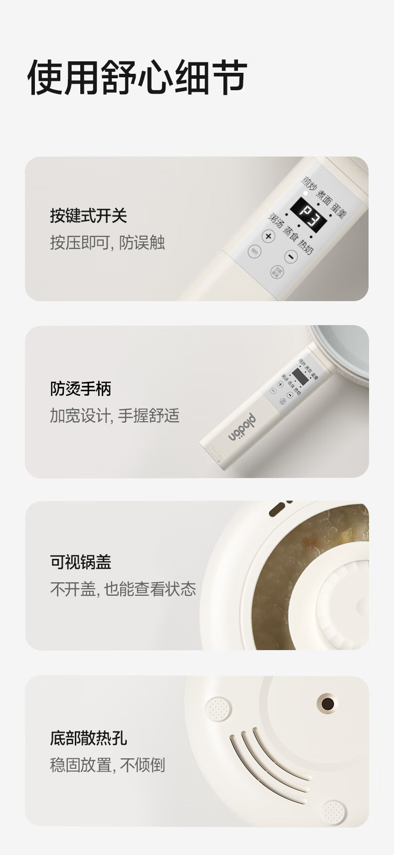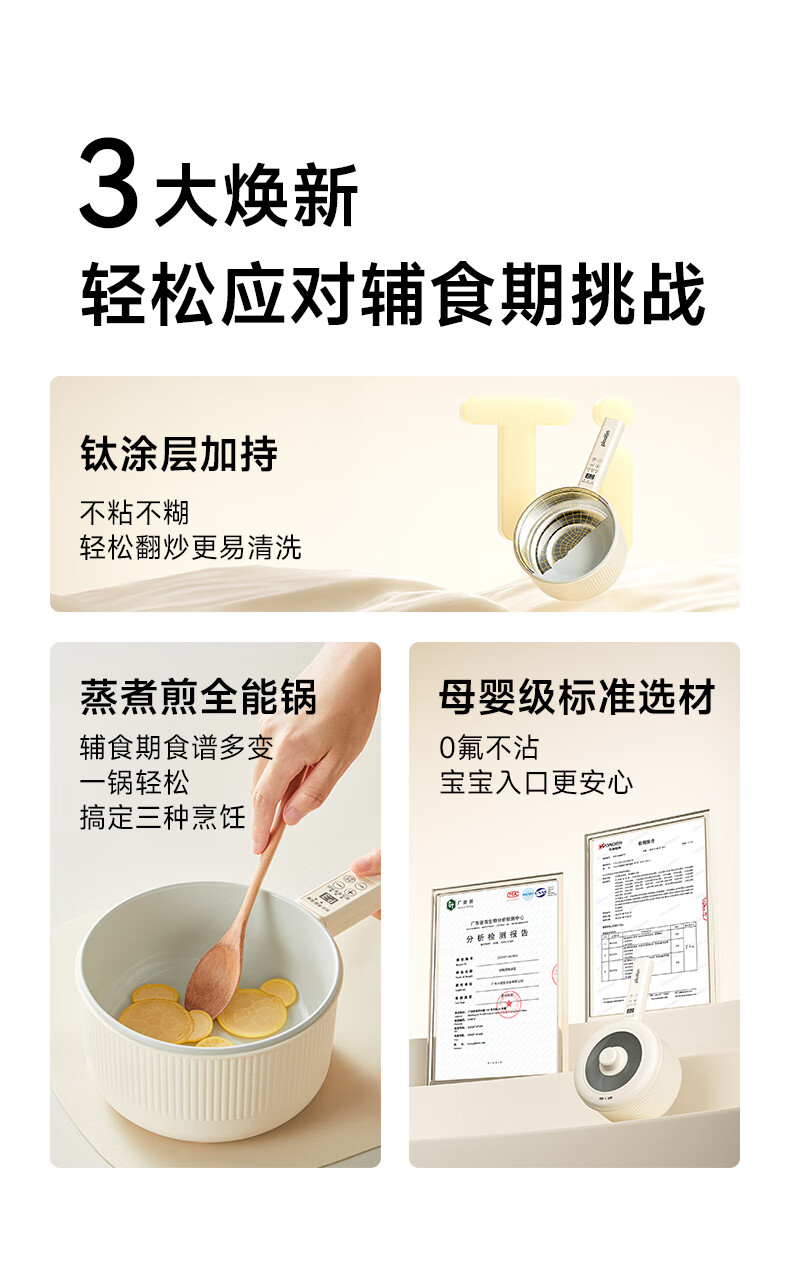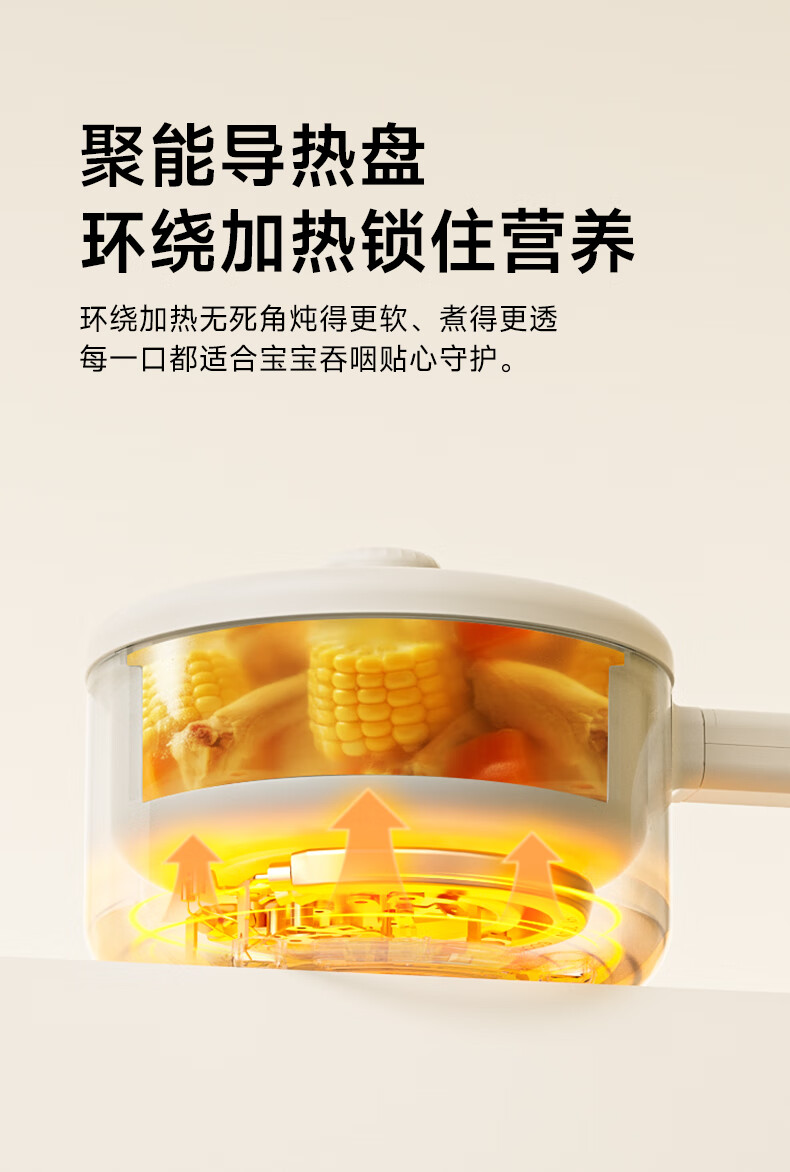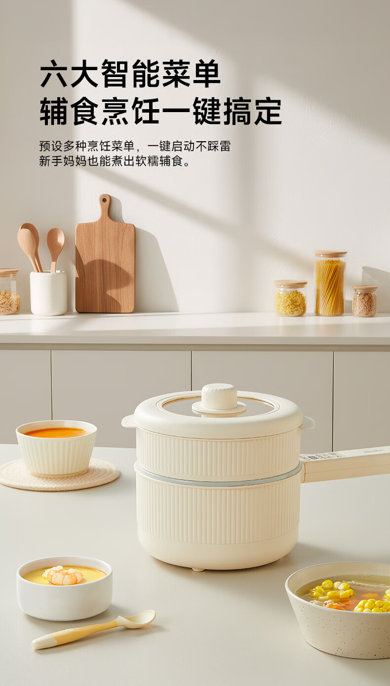 浦利顿(PLODON)辅食锅 婴儿BB煲煎煮蒸炒一体 宝宝煲粥炖汤小奶锅 小电锅 电煮锅