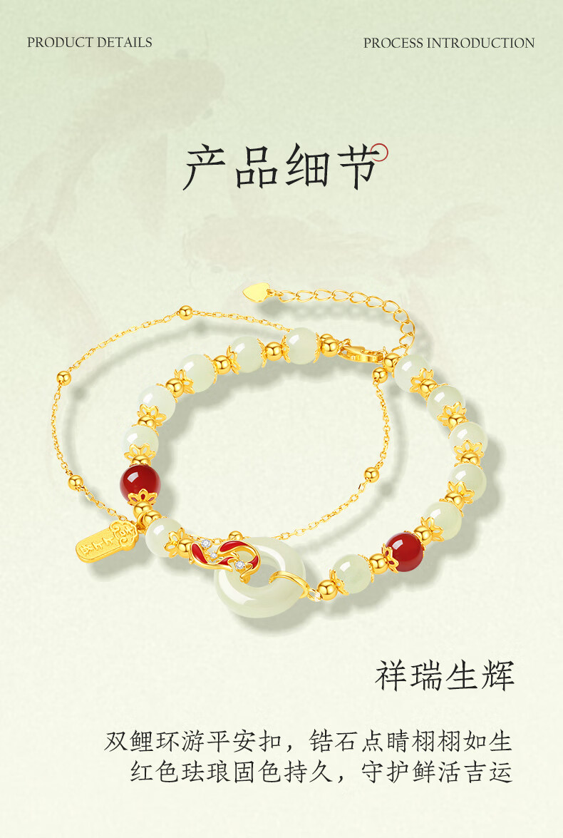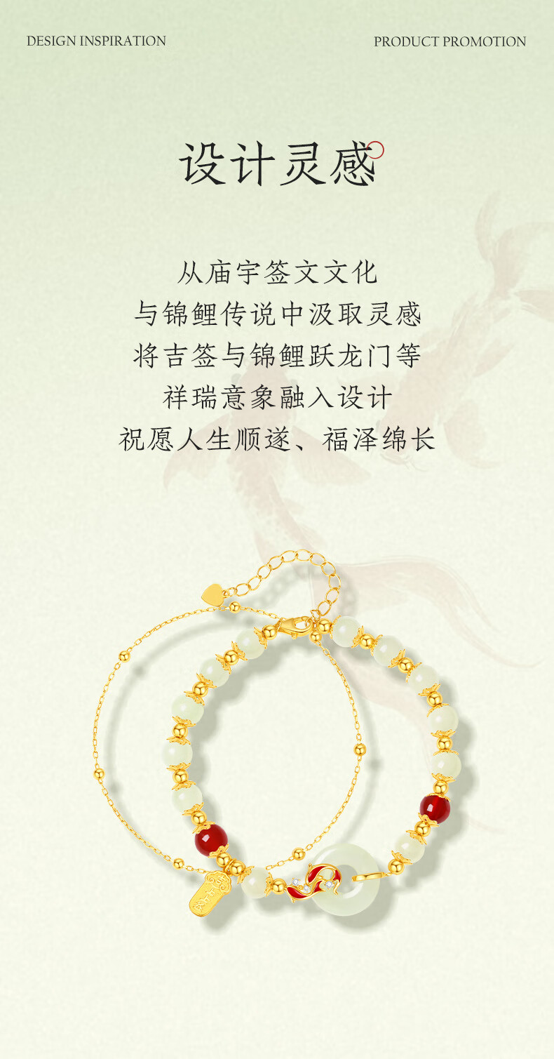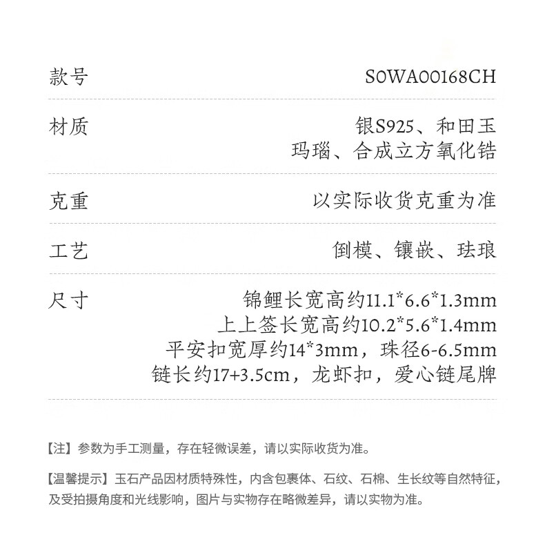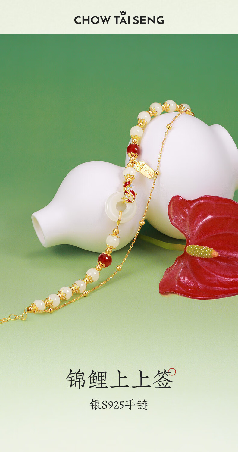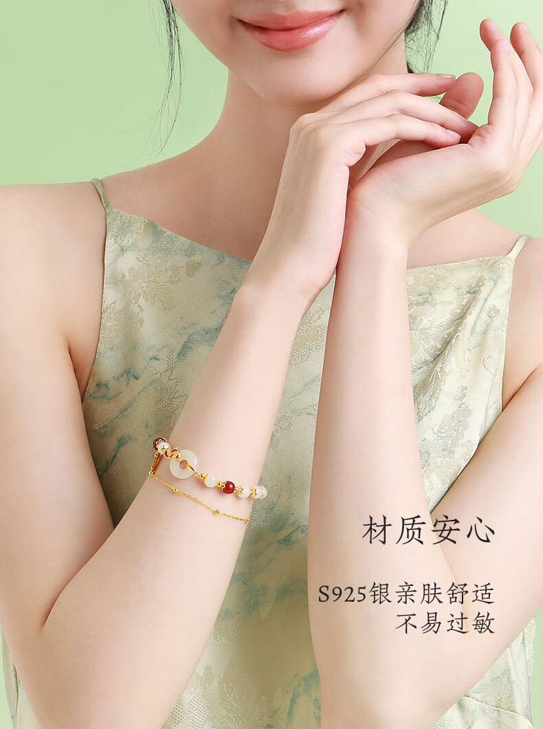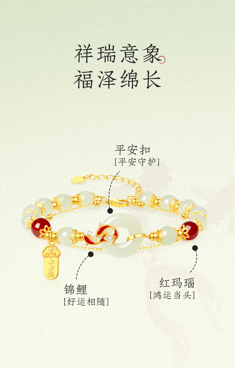 周大生【生日礼物】锦鲤平安扣和田玉银手链上上签手串送女友老婆