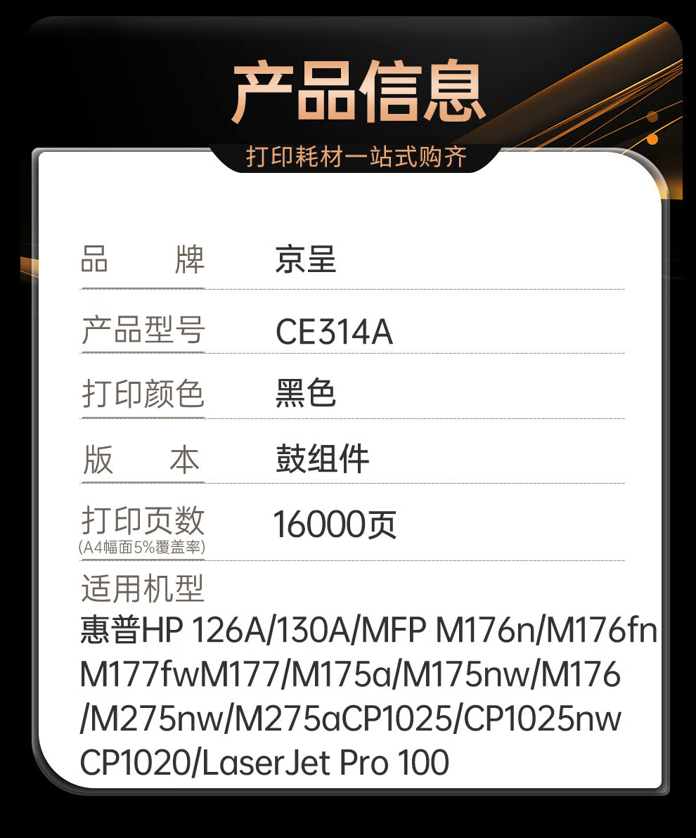 京呈适用惠普laserjet cp1025/1025nw硒鼓HP126A粉盒彩色激光打印机 CE310A/CF350A CE314A成像鼓/鼓组件/感光鼓