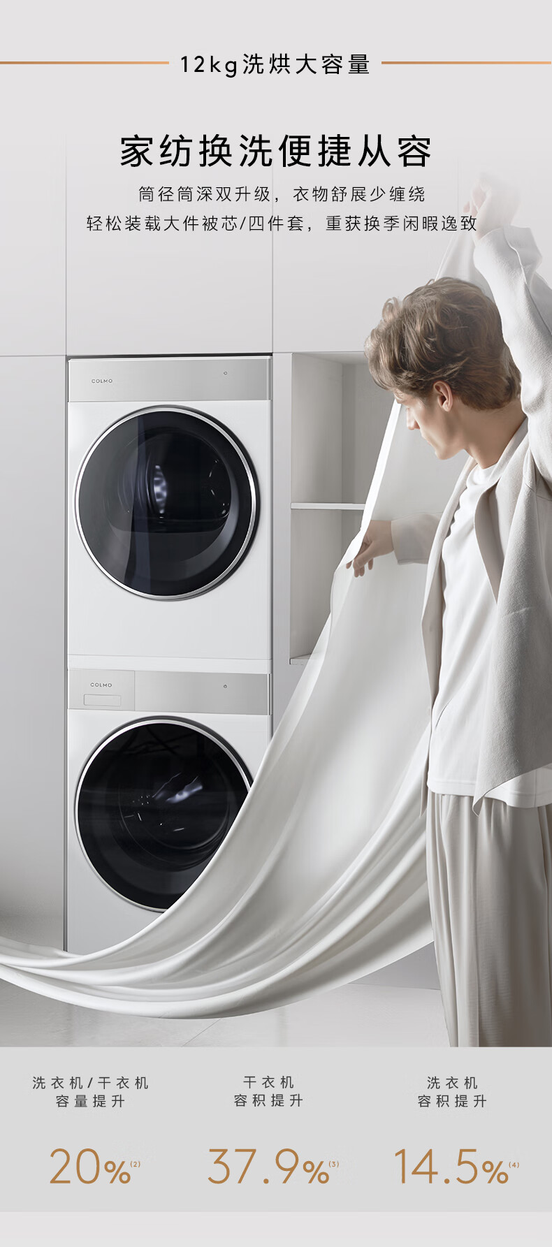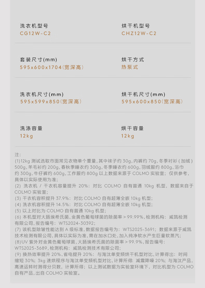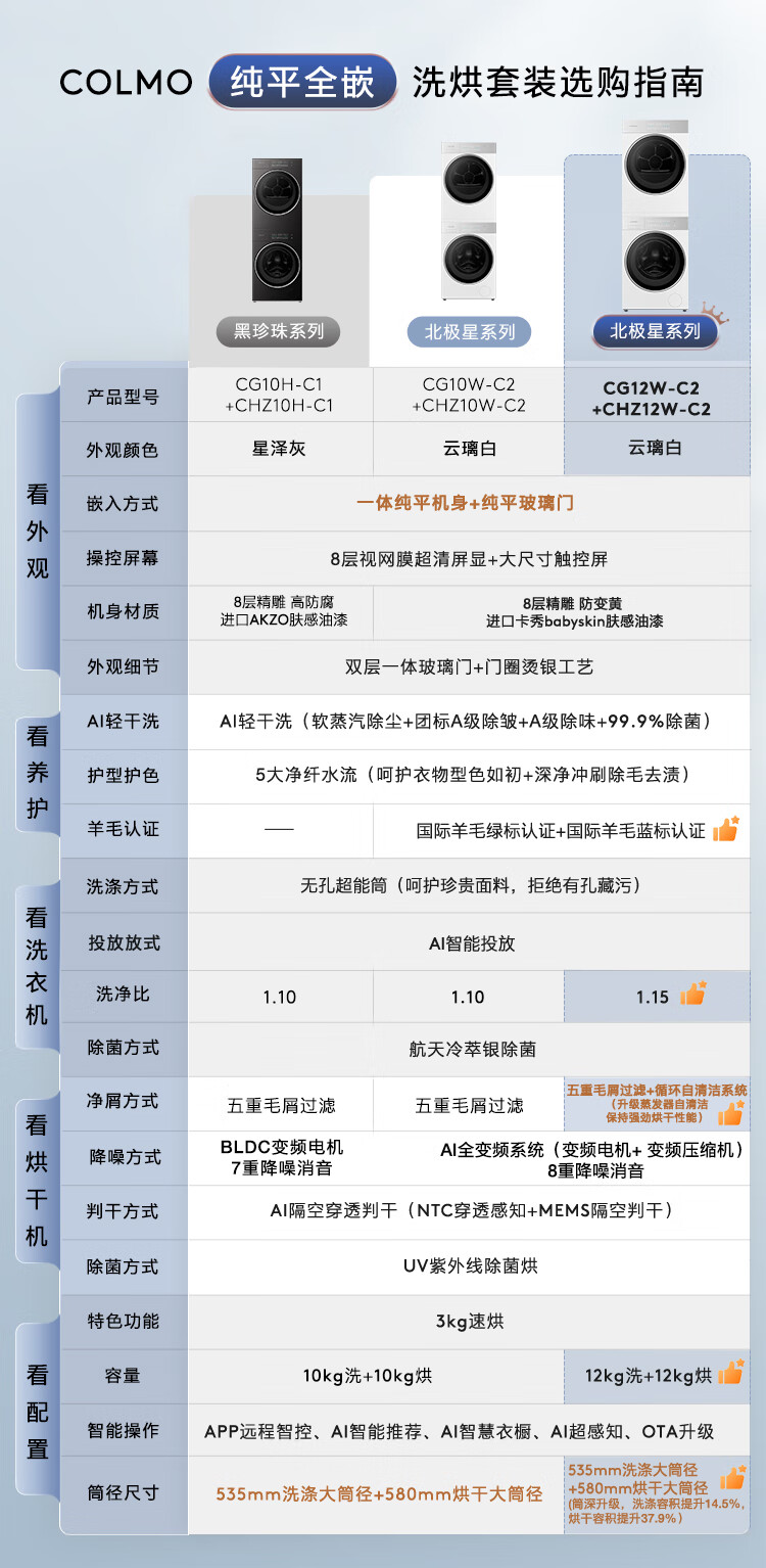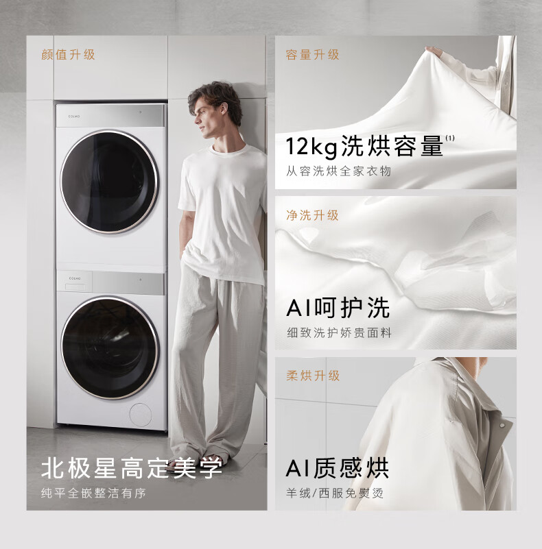 COLMO北极星洗烘套装C2Pro+ 12KG滚筒洗衣机+12KG热泵烘干机CG12W-C2+CHZ12W-C2(支持鸿蒙智联)