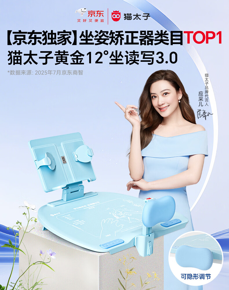 猫太子黄金12°坐姿矫正器儿童矫正神器写字姿势纠正器小学生写作业防近视防低头桌面学习读写台阅读支架