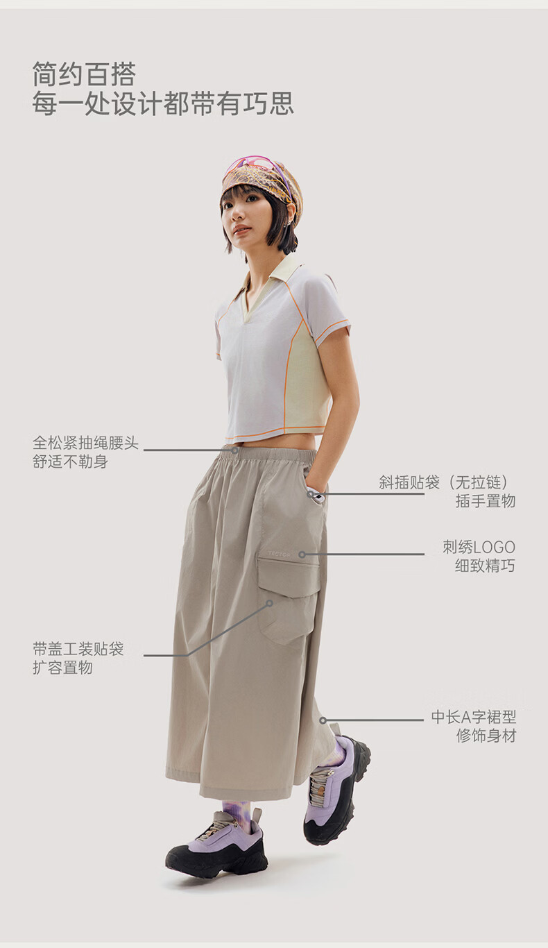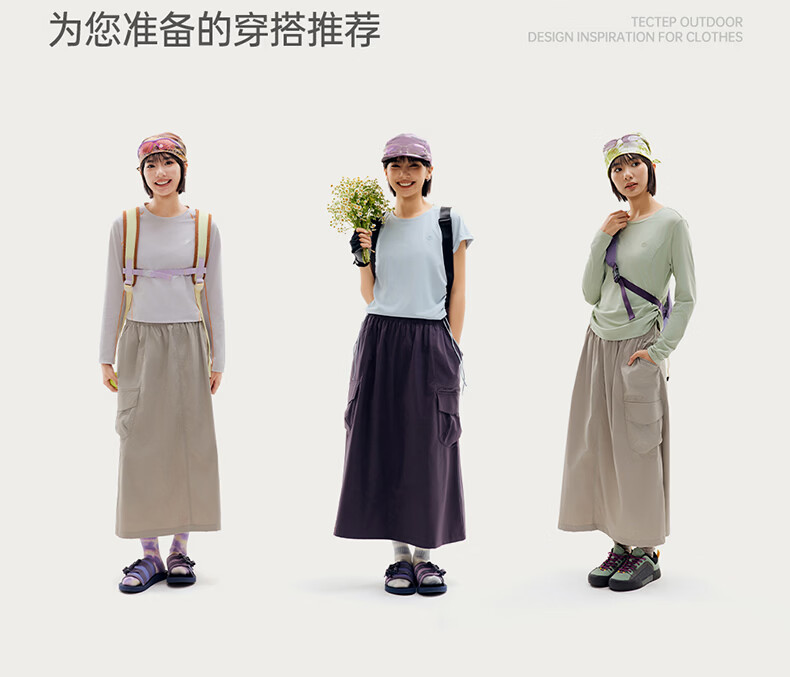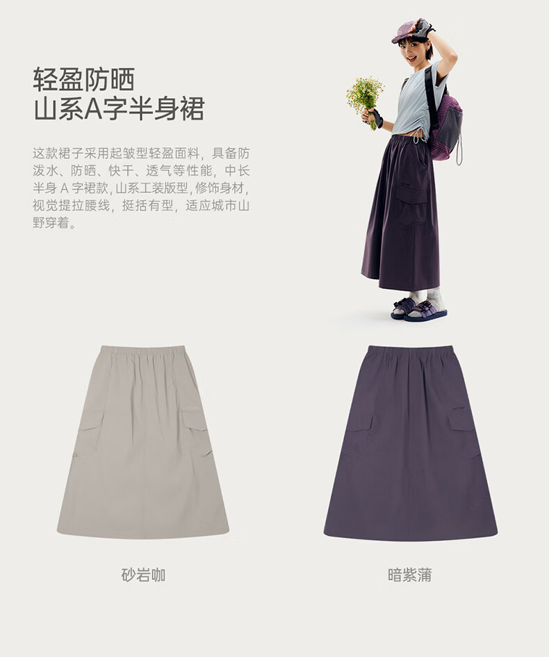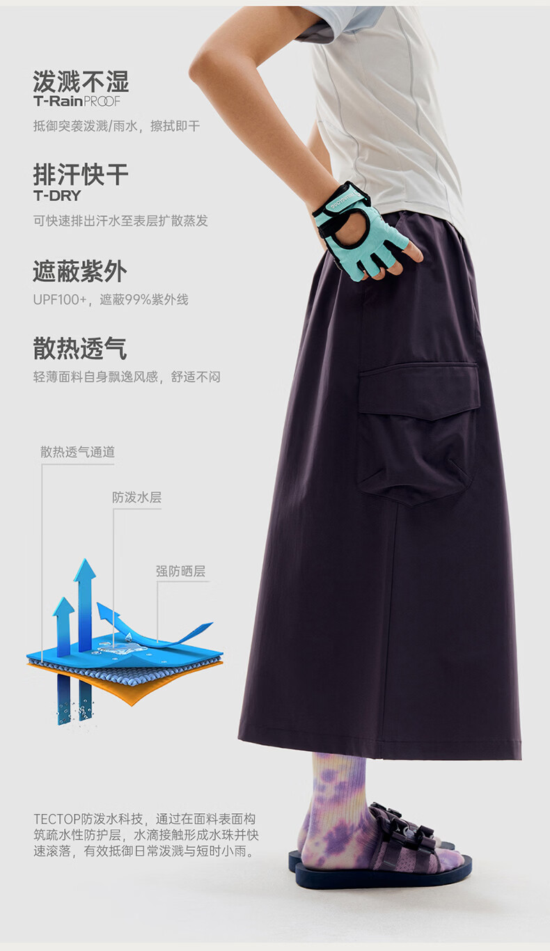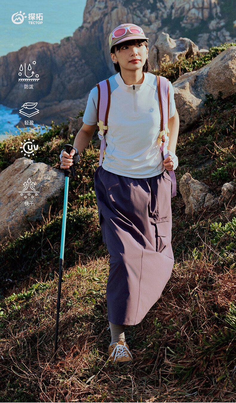 探拓(TECTOP)26新款防晒A字半身裙露营防泼水户外长裙 暗紫蒲 S