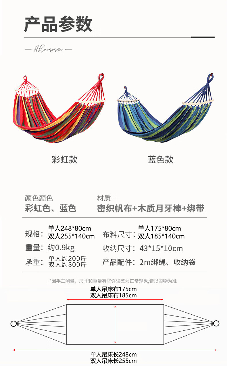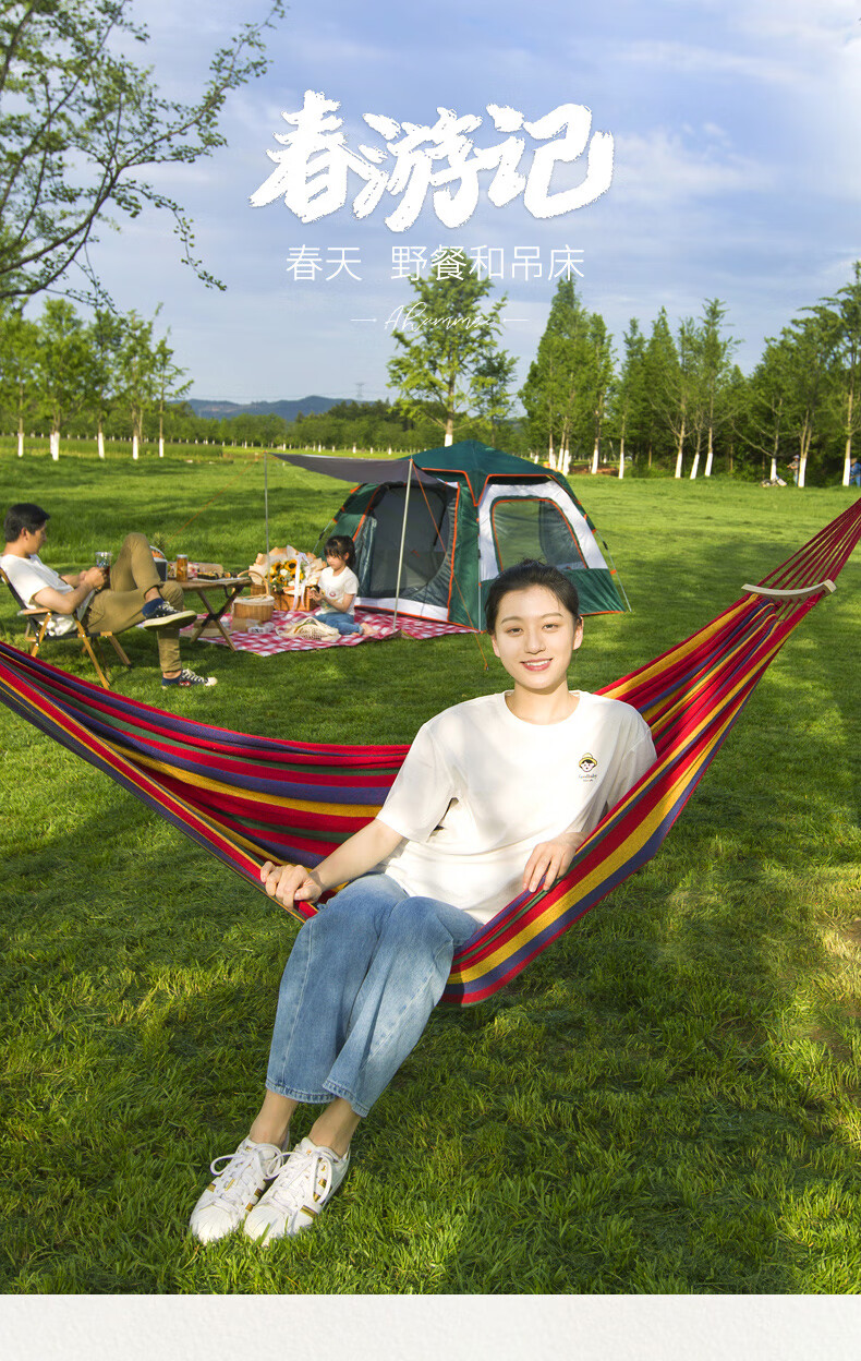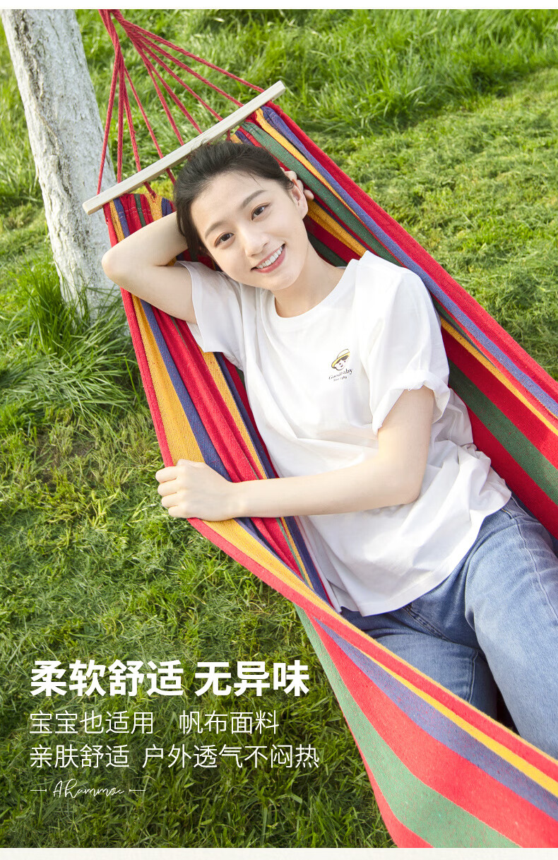 格术吊床户外双人防侧翻成人儿童露营秋千室内宿舍吊椅学生网床摇椅红