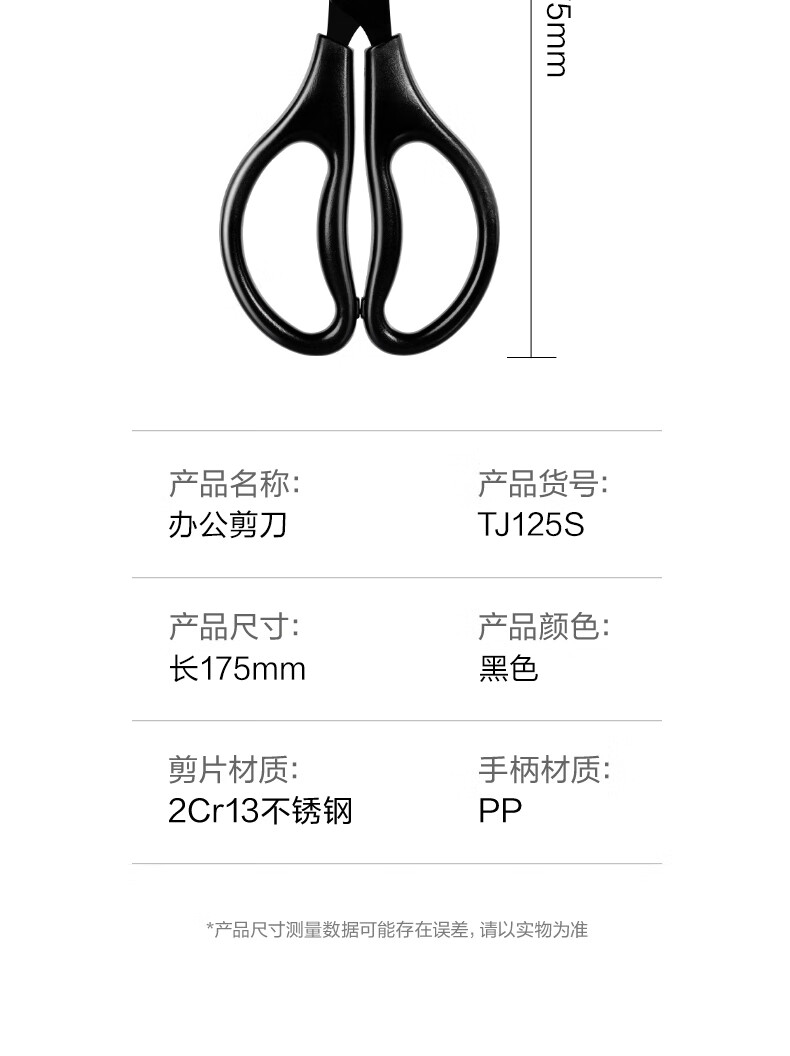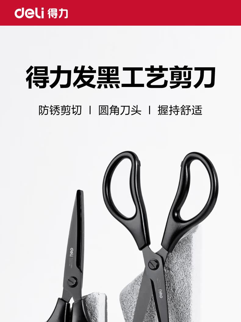 得力(deli)黑刃防锈剪刀180mm办公家用剪刀中号剪子手工办公用品生活文具学生剪纸刀【大手柄更舒适】TJ125S