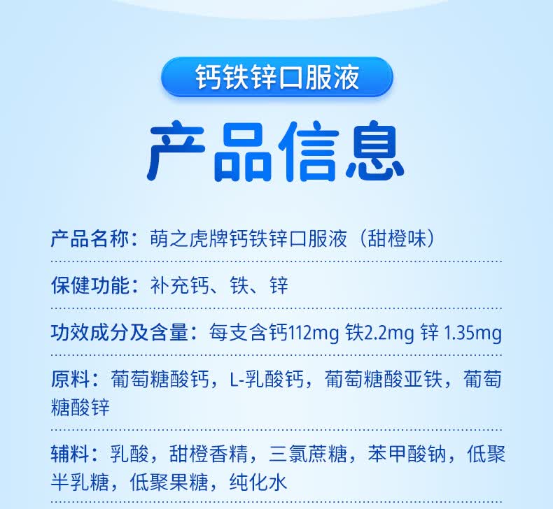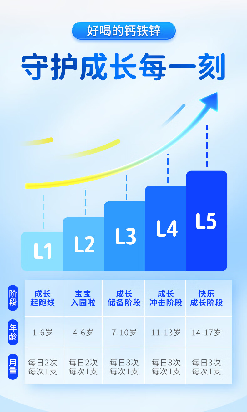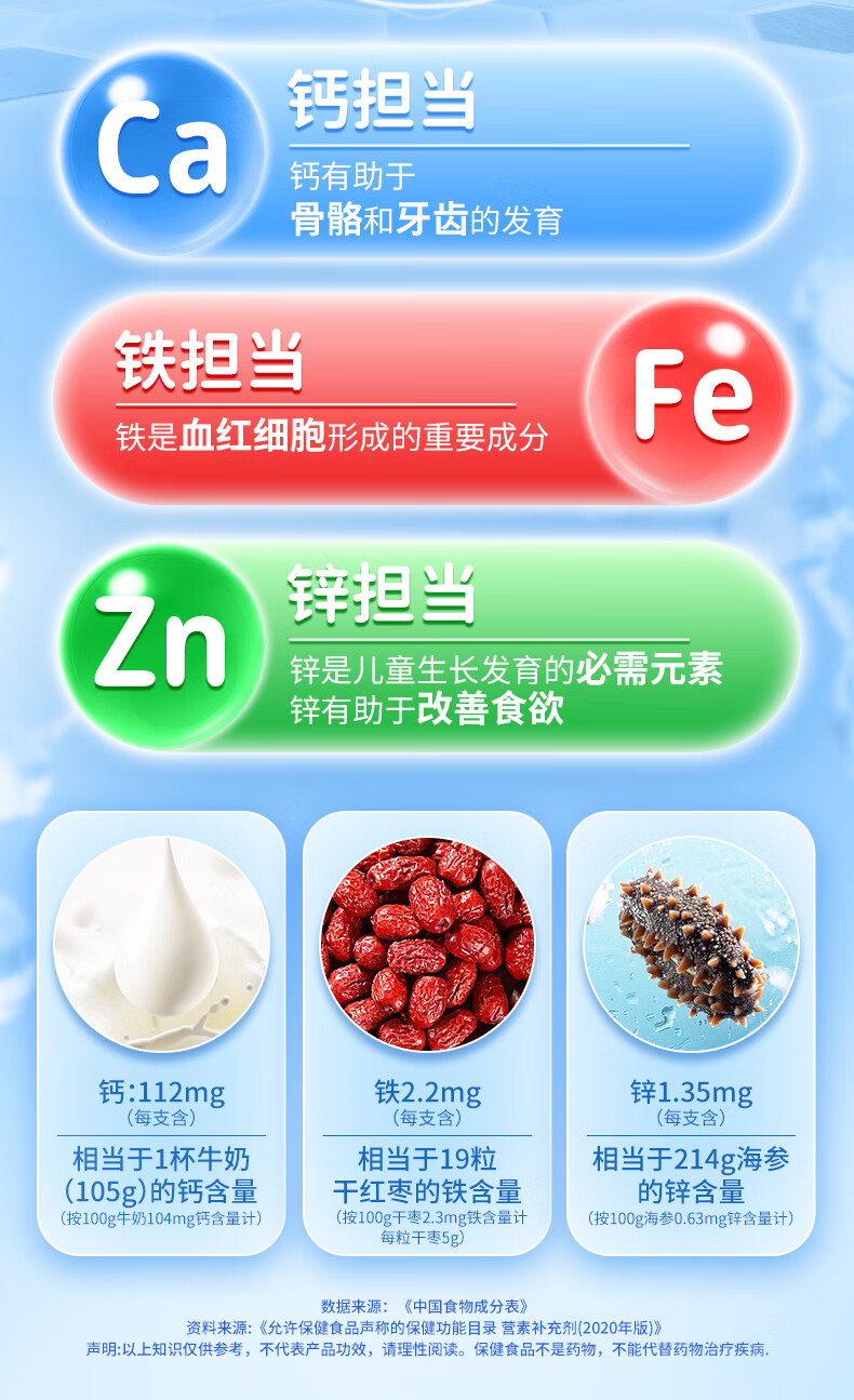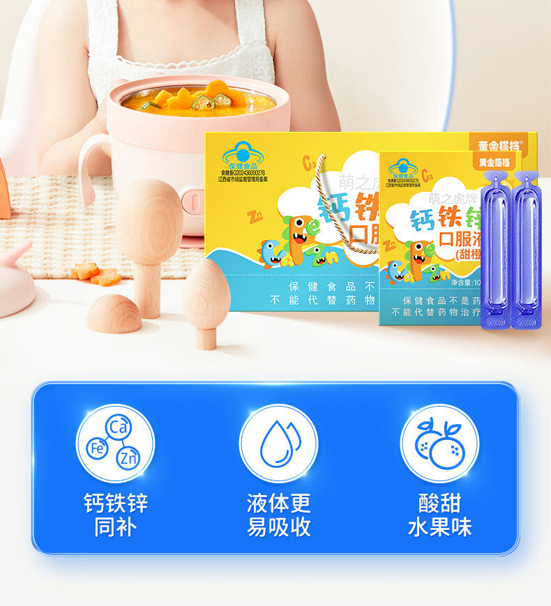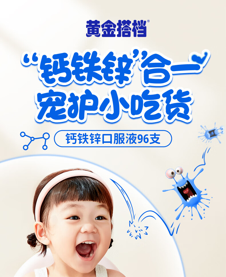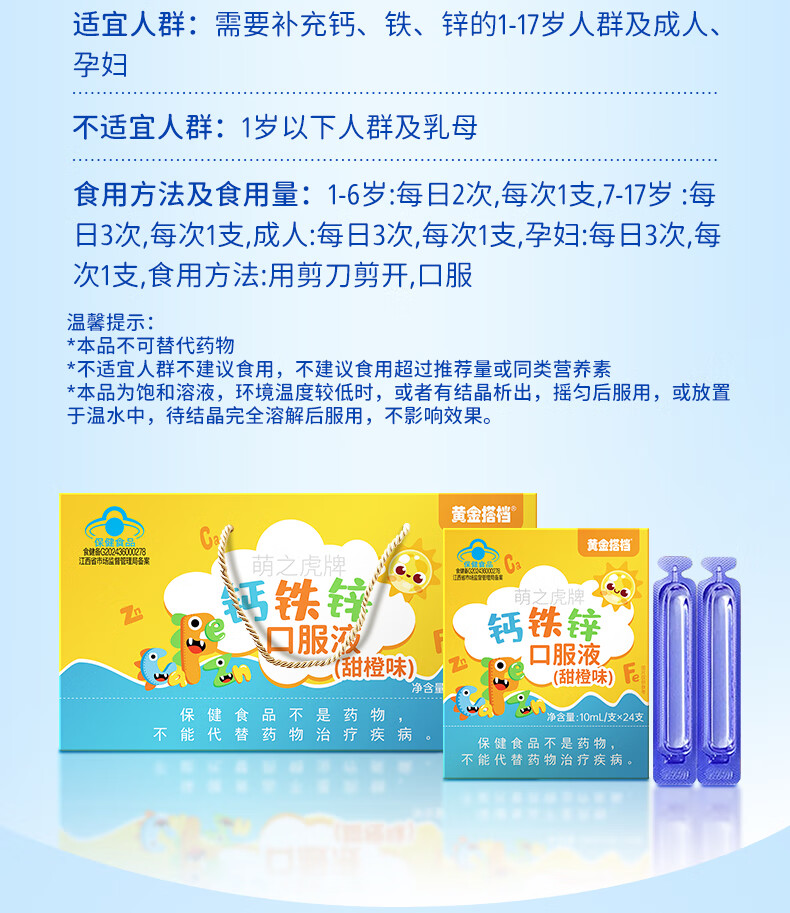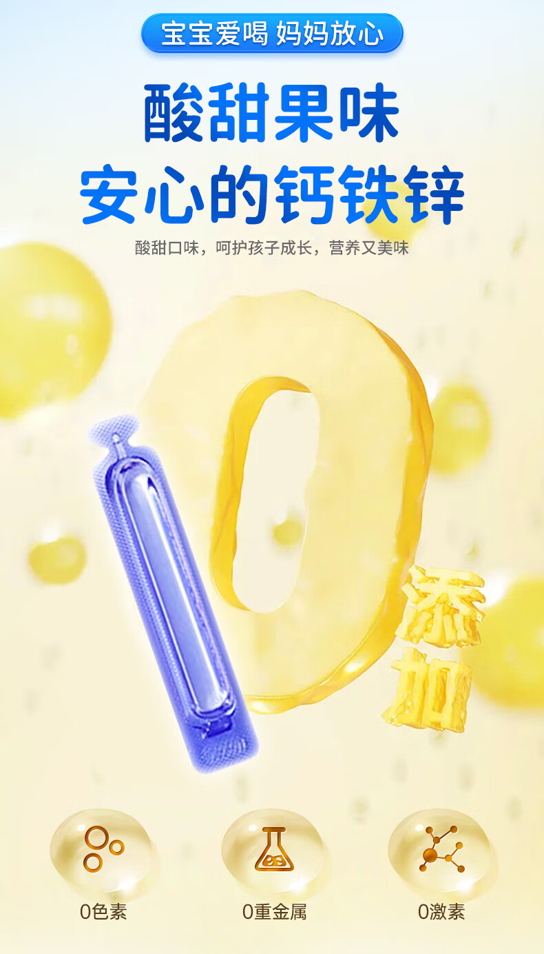 黄金搭档钙铁锌口服液儿童4-17岁学生幼儿宝宝液体钙补锌葡萄糖酸锌口服液 钙铁锌口服液10ml*96支