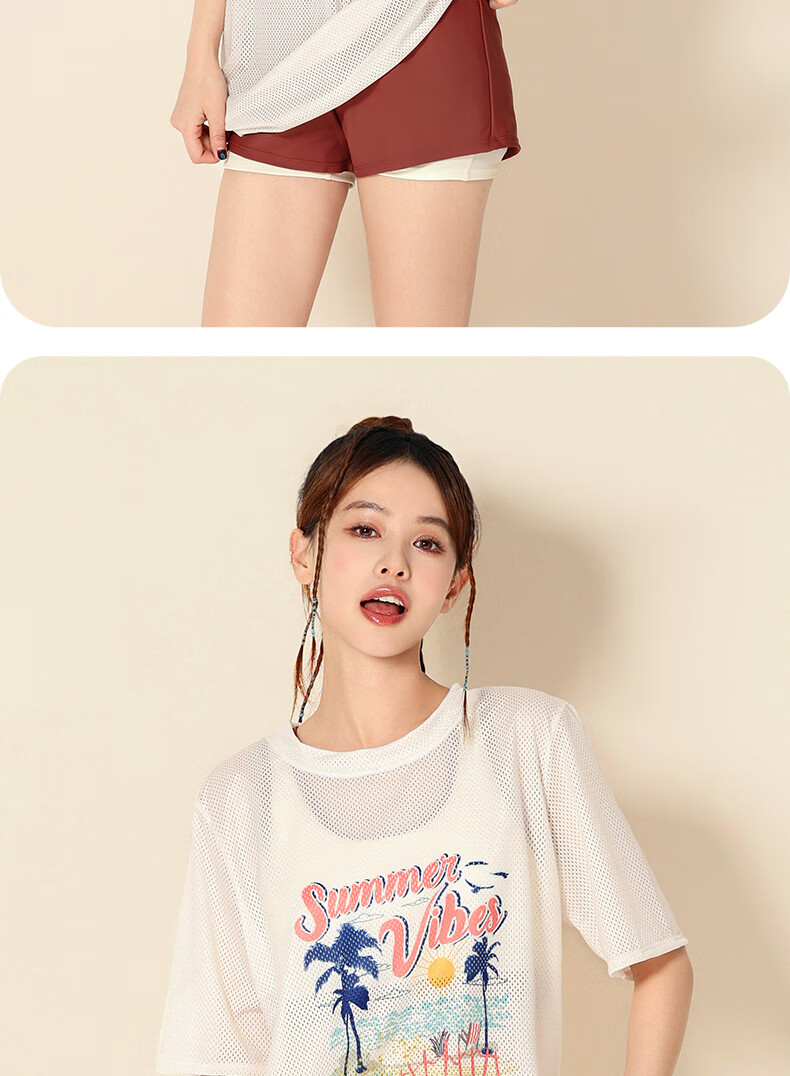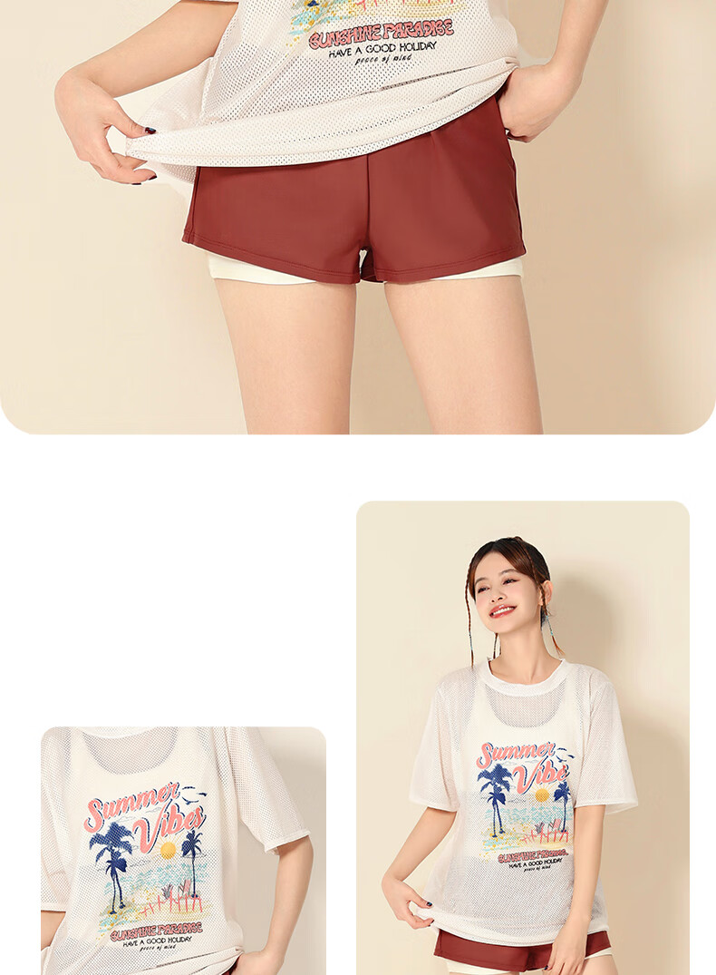 羽克泳衣女保守分体三件套2025新款大码遮肚显瘦泡温泉高级感游泳衣 热带夏威夷三件套 2XL 【 建议体重115-130斤】