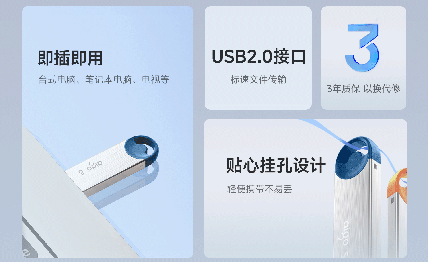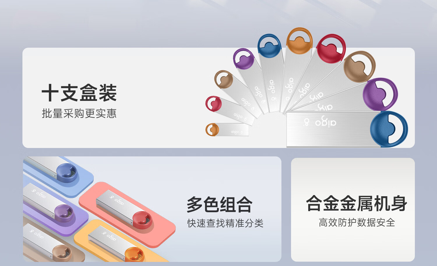 爱国者(aigo)8GB USB2.0投标U盘U212 盒装 公司企业竞标专业投标优盘 十只装 小容量小体积金属U盘