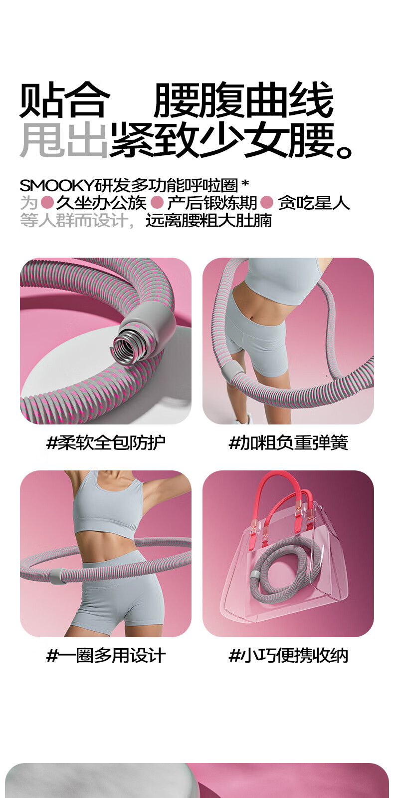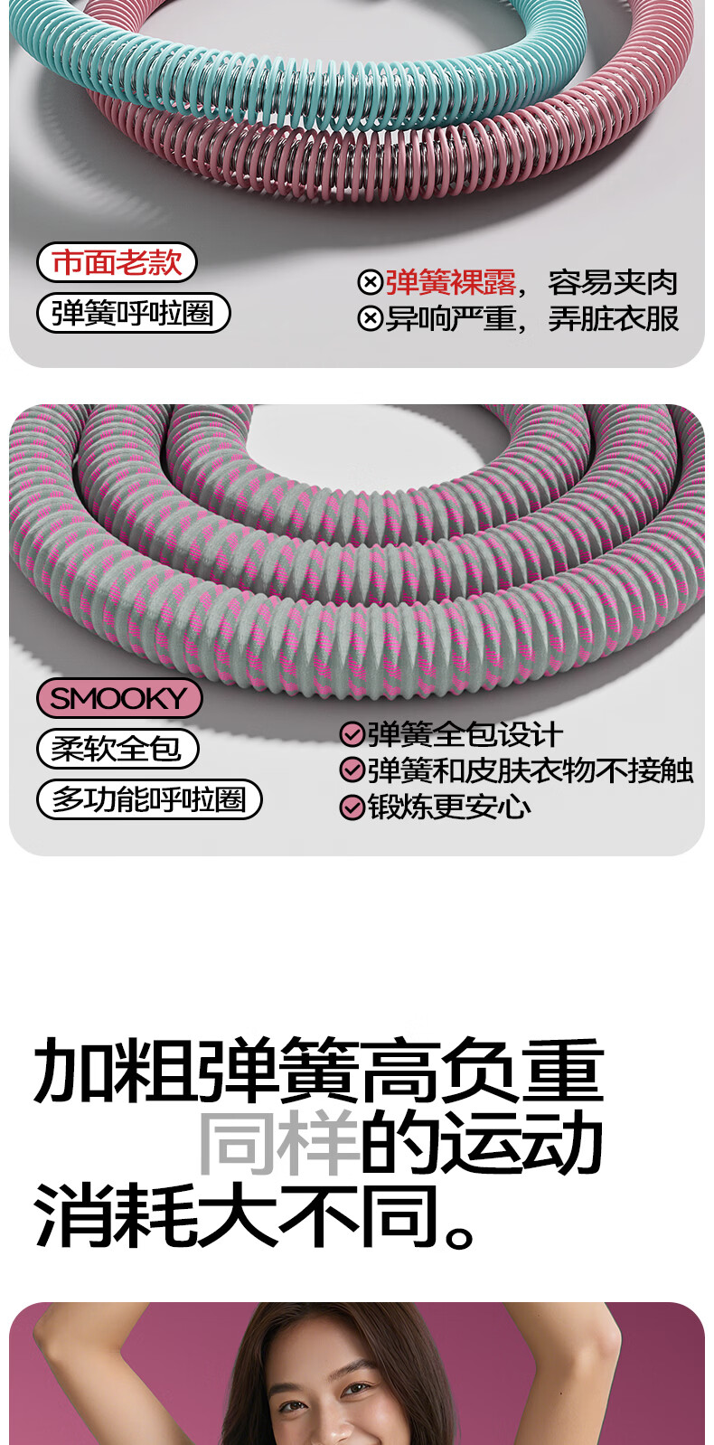 SMOOKY软弹簧呼啦圈卡扣加固全包裹不伤衣涤纶加重约4斤美腰瘦腰收腹