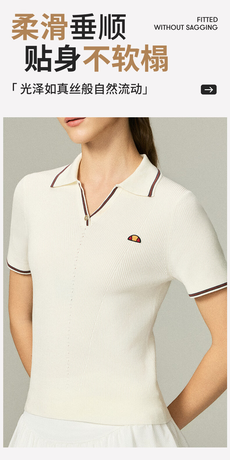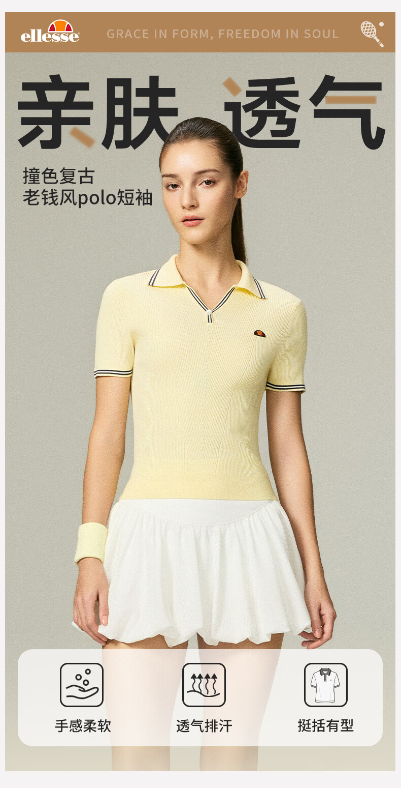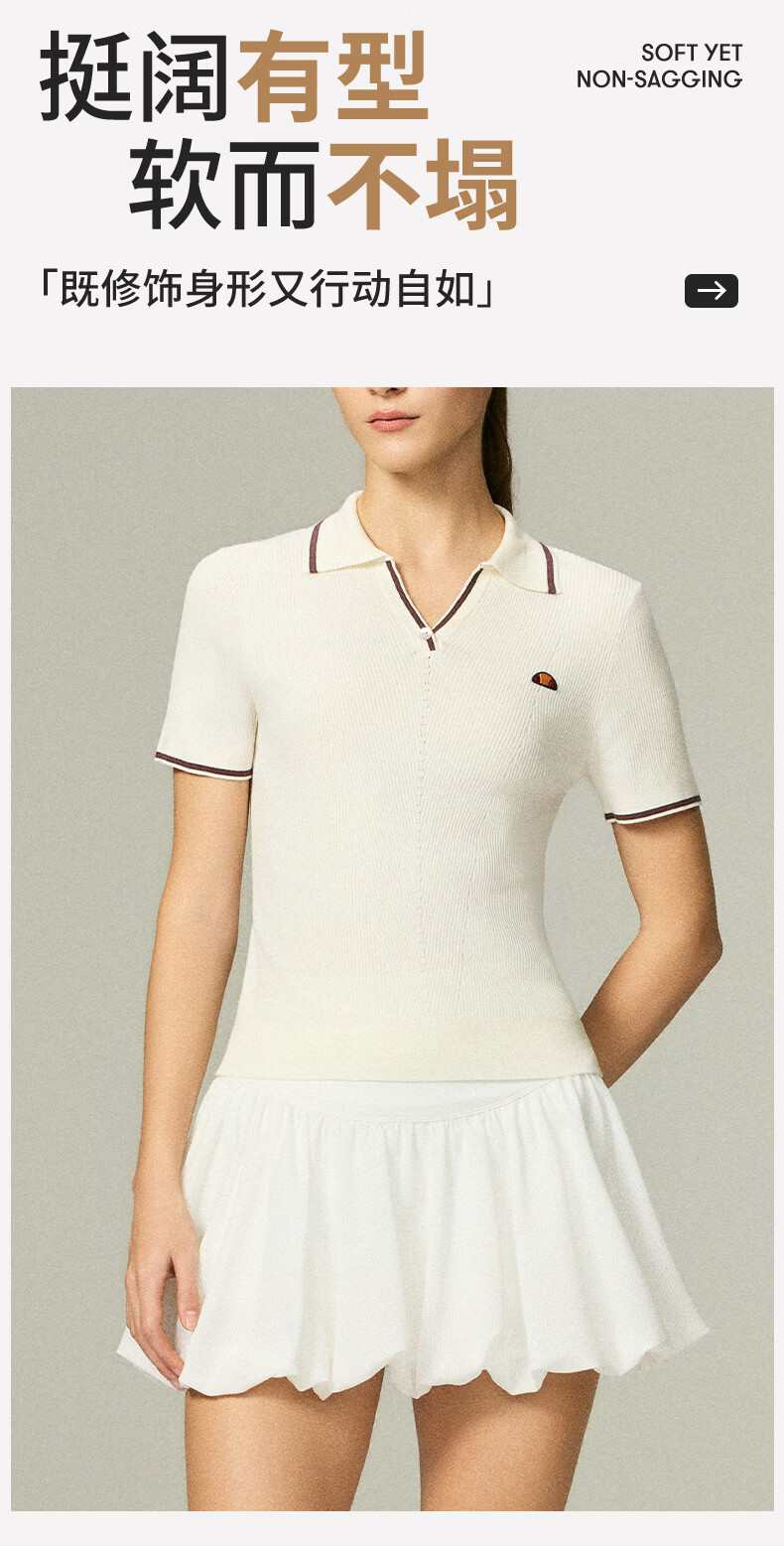 ellesse小贝壳26春新品网球服撞色条纹运动复古老钱风polo短袖女 本白 S
