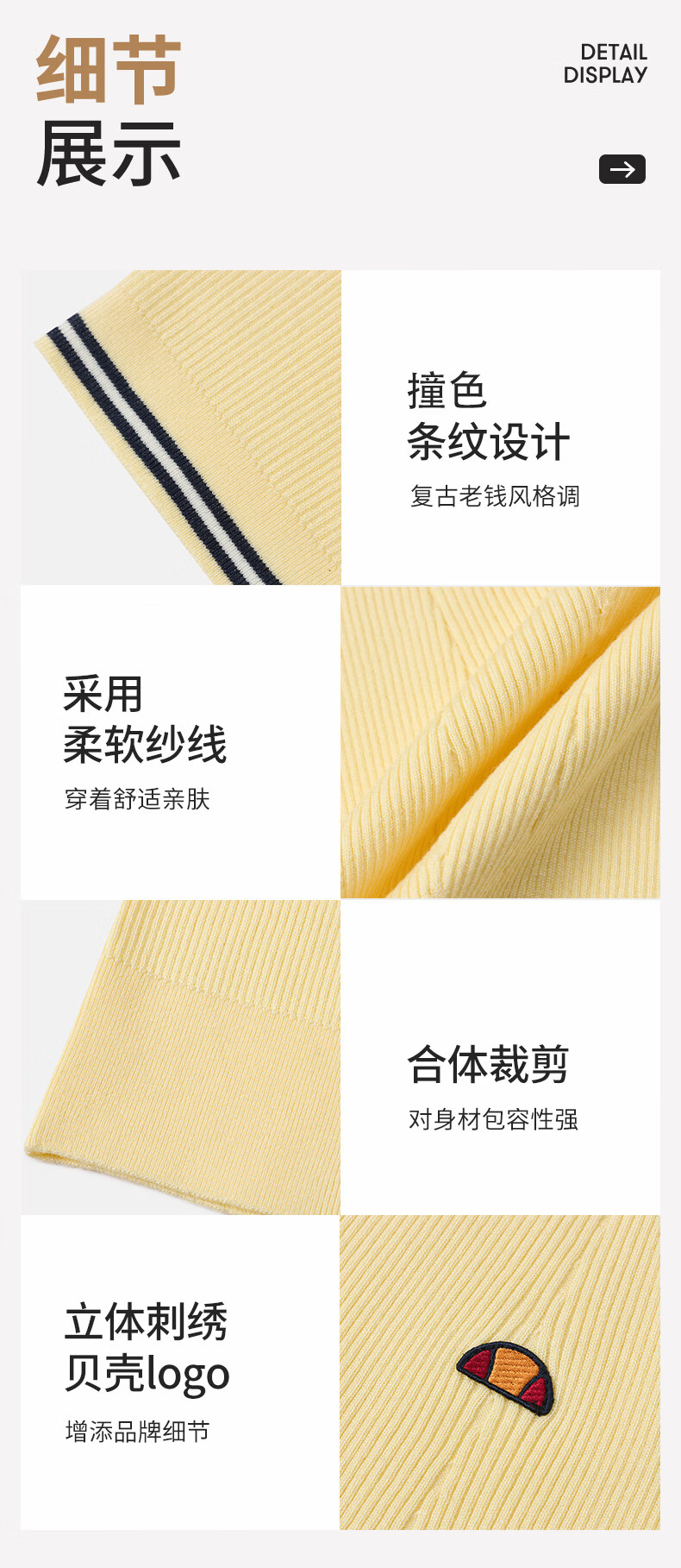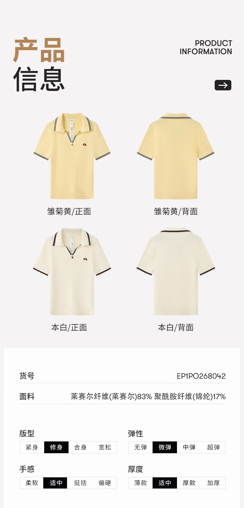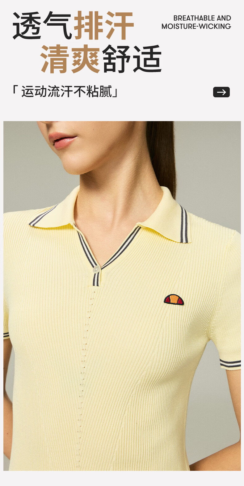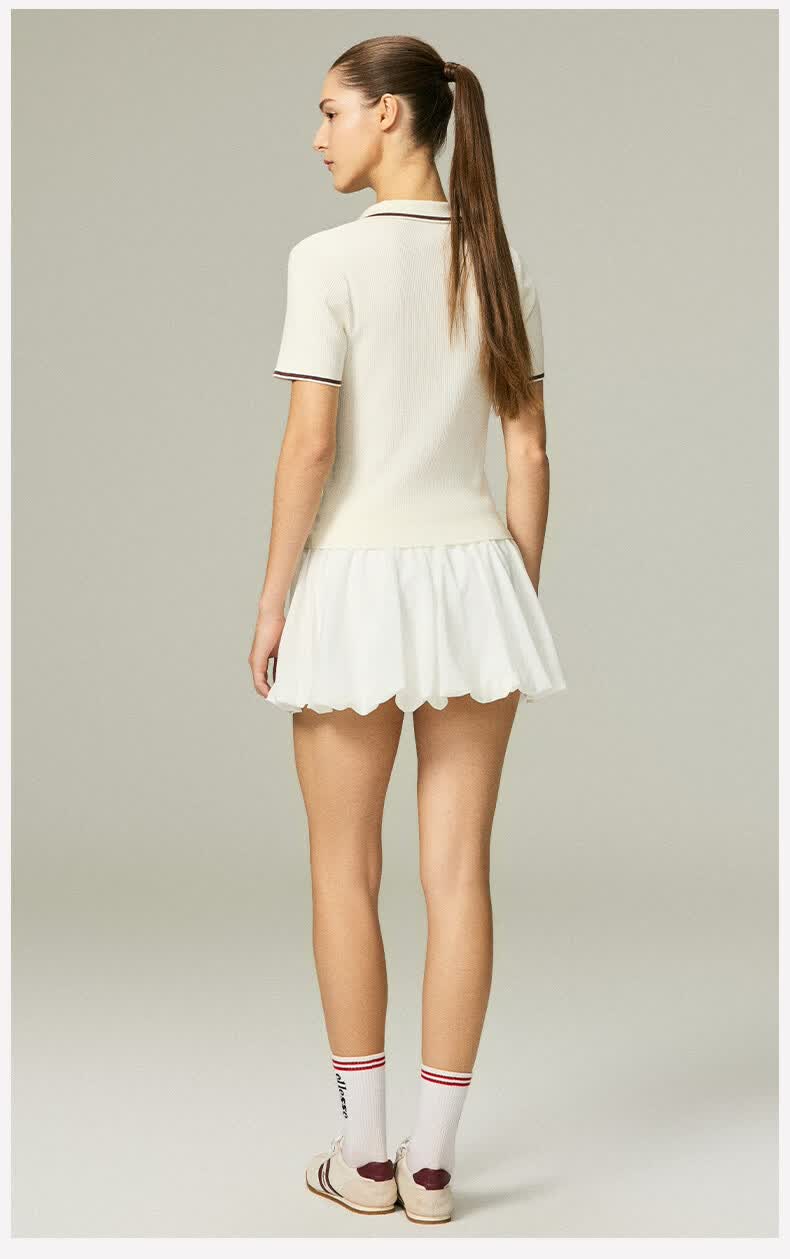 ellesse小贝壳26春新品网球服撞色条纹运动复古老钱风polo短袖女 本白 S