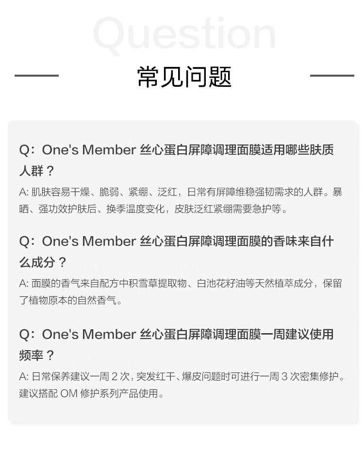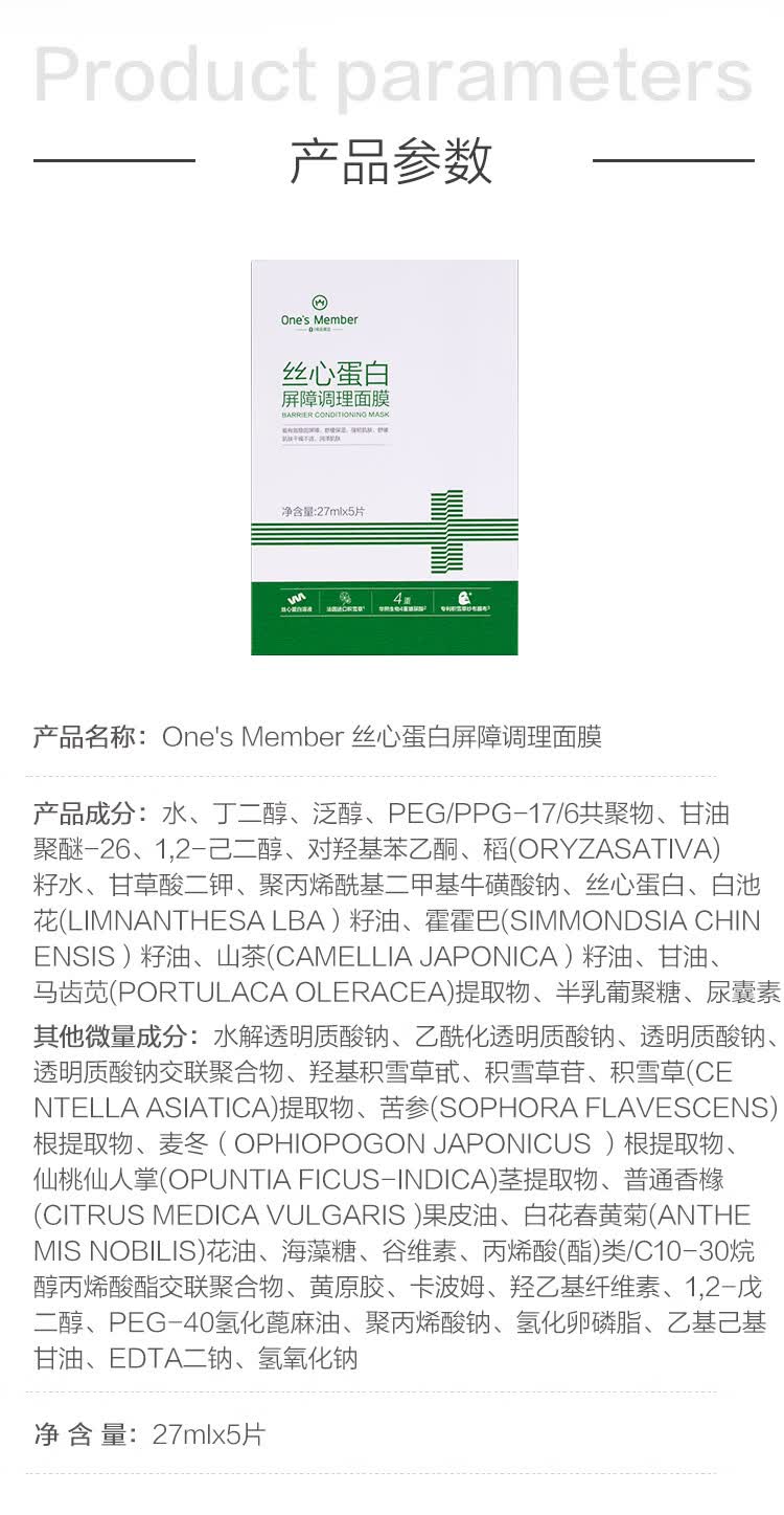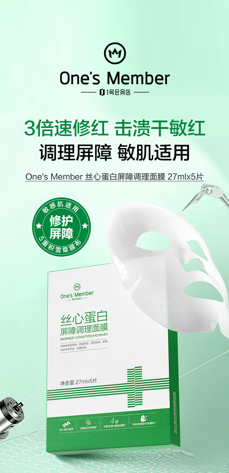 1号会员店One's Member丝心蛋白屏障调理面膜(5片)