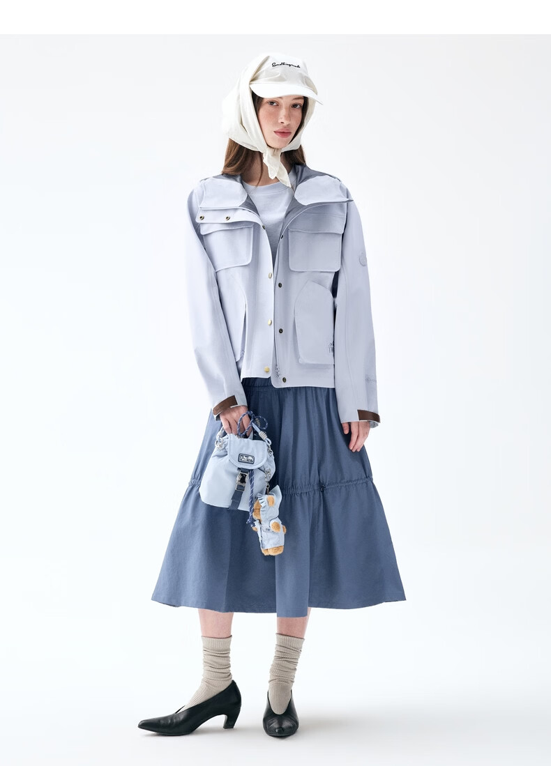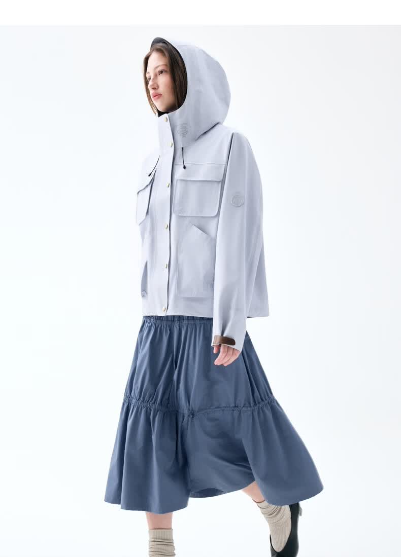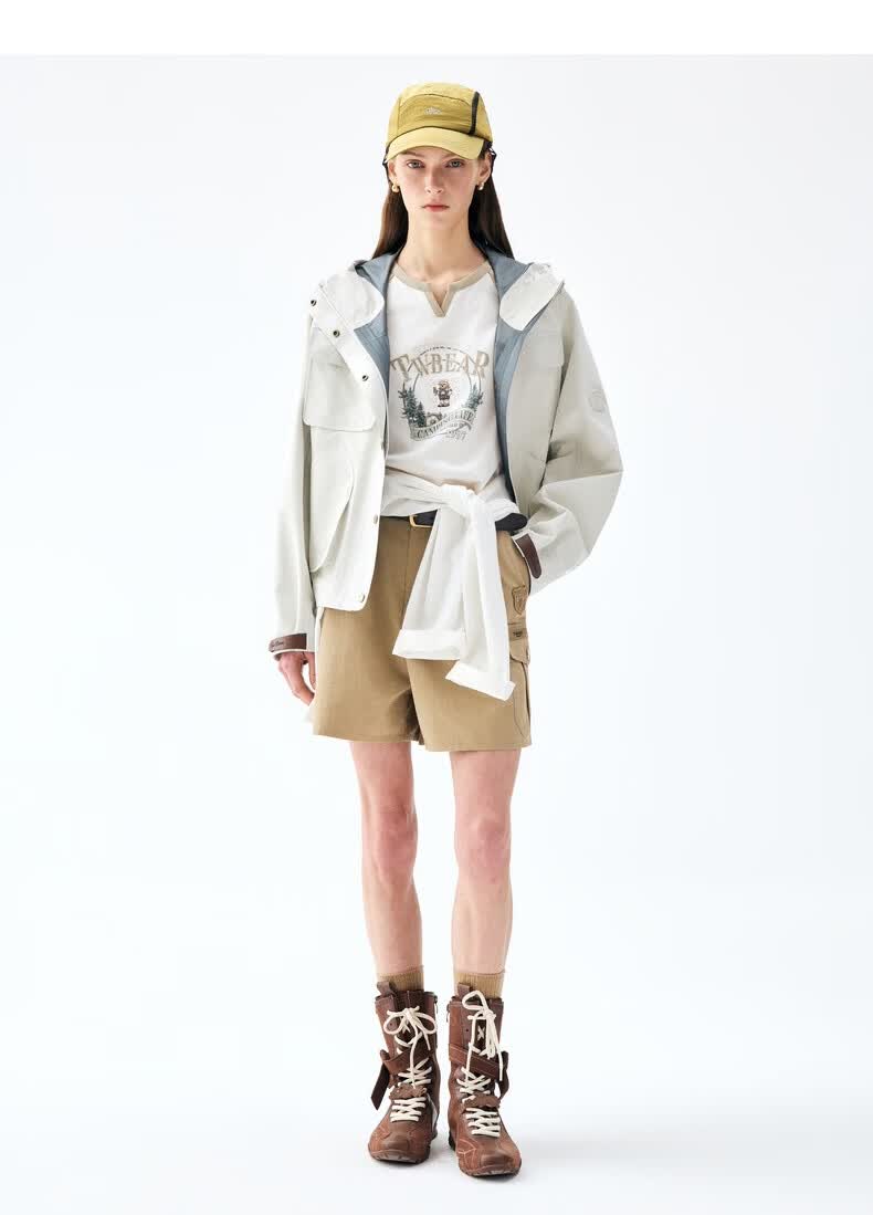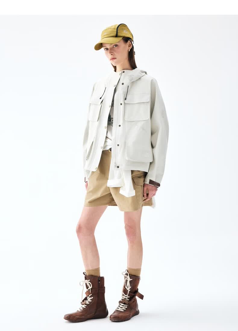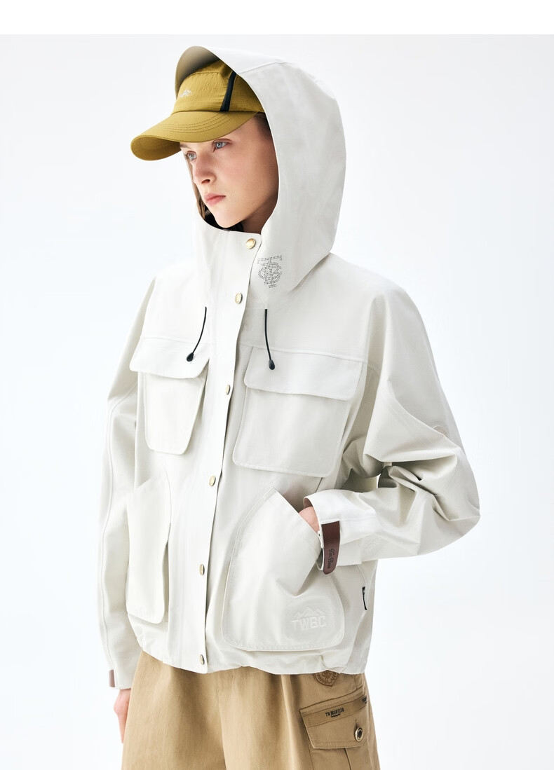 Teenie Weenie小熊女装连帽外套26春夏新款简约大口袋户外感短外套 乳白色 S