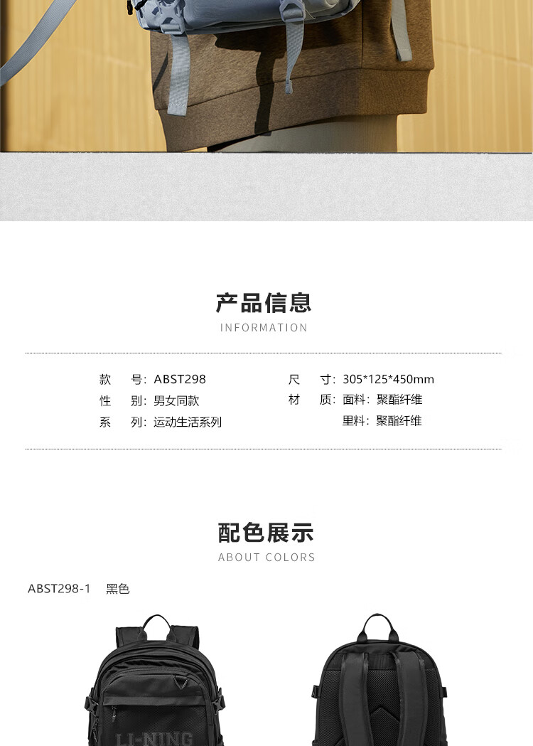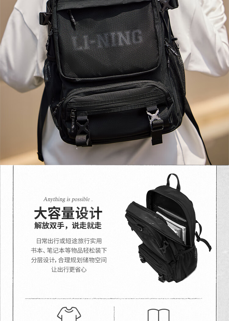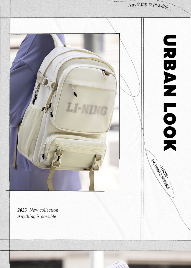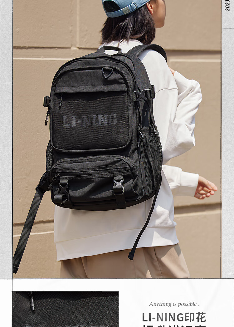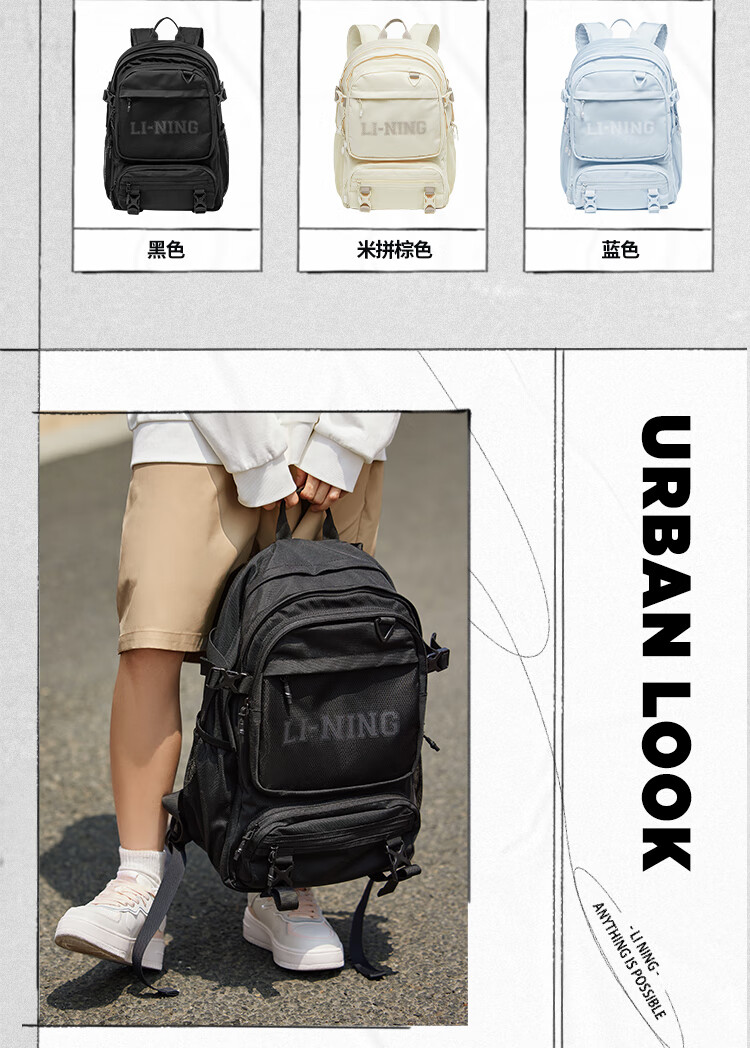 李宁运动生活系列双肩包男女同款大容量轻便旅行背包ABST298