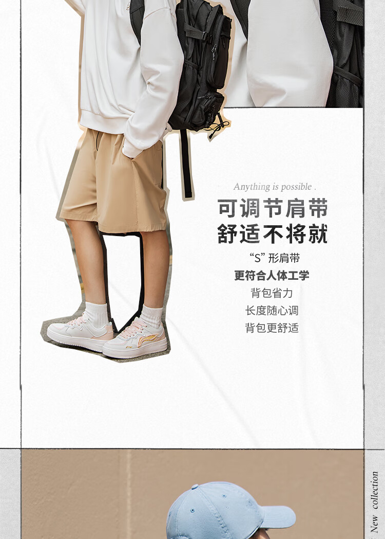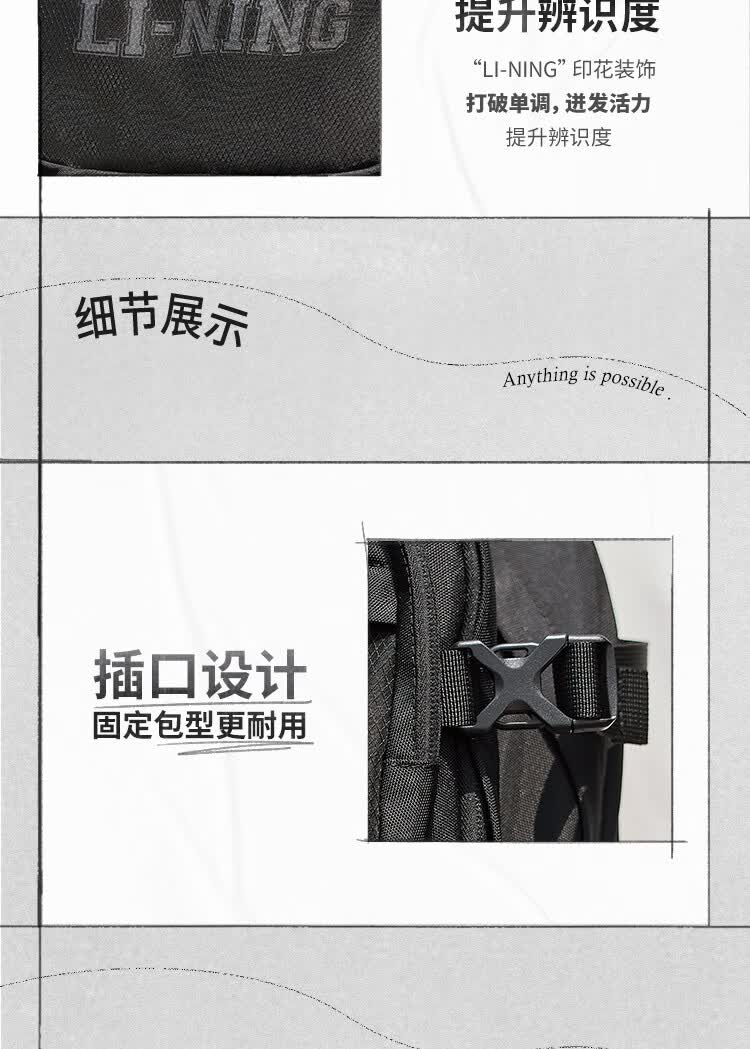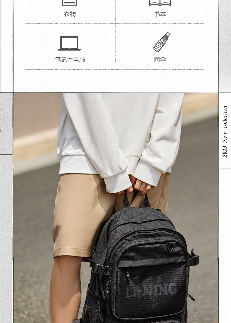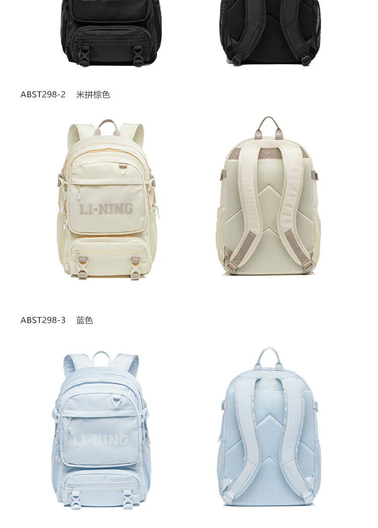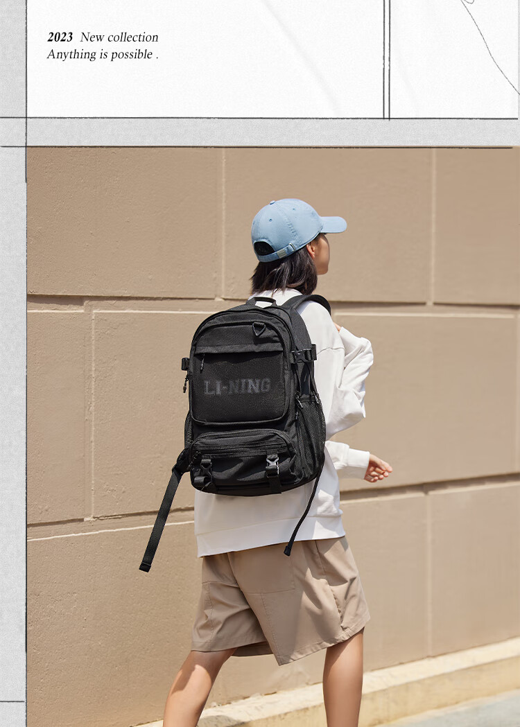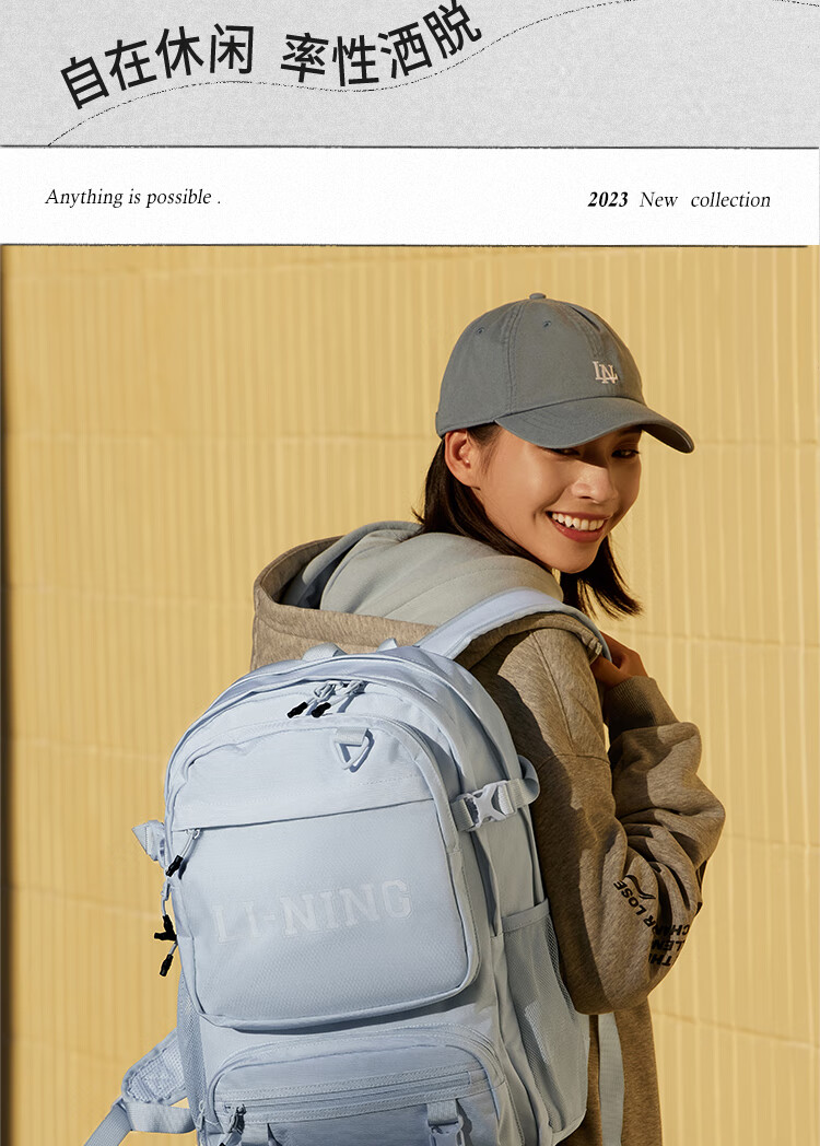 李宁运动生活系列双肩包男女同款大容量轻便旅行背包ABST298