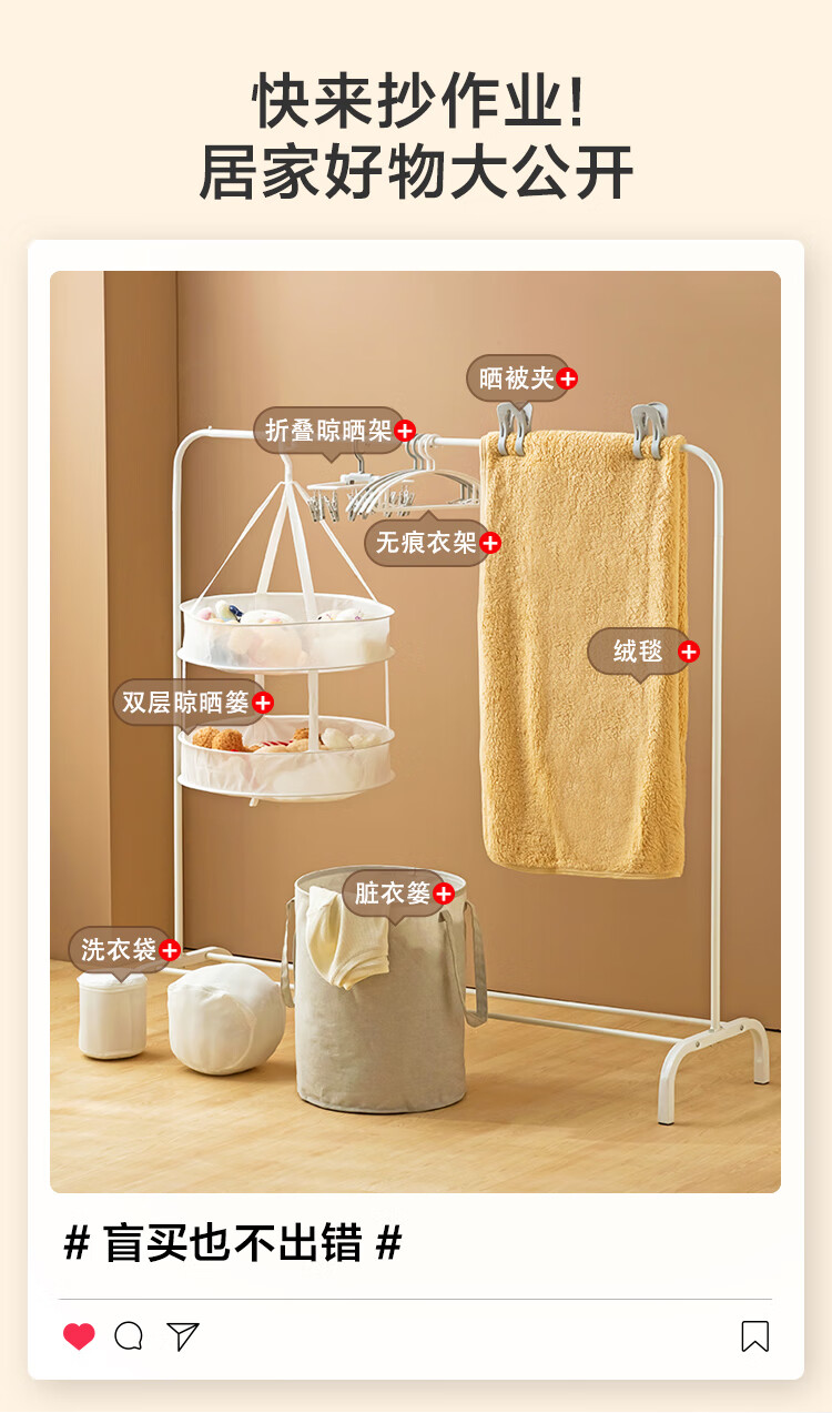 好太太落地晾衣架家用阳台可移动落地晒衣架可折叠收纳室外晒被子架子