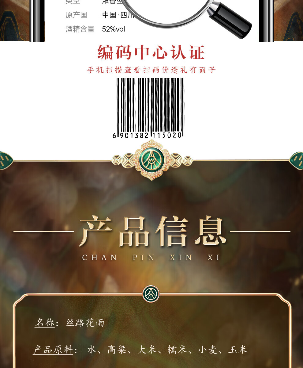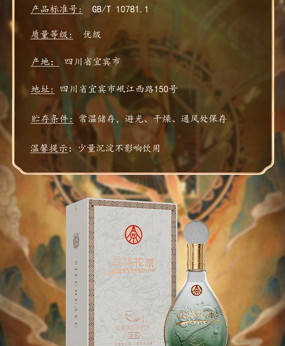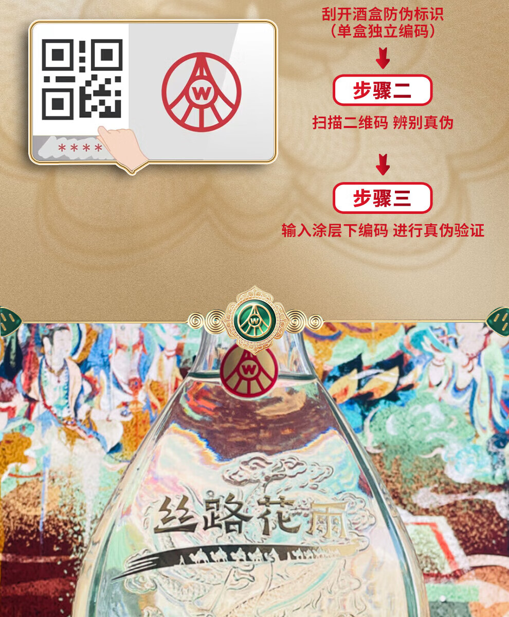 五粮浓香总厂出品 丝路花雨敦煌美术研究所联名 浓香型白酒 高端宴请送礼 52度 500mL 6瓶 五粮液丝路花雨整箱装