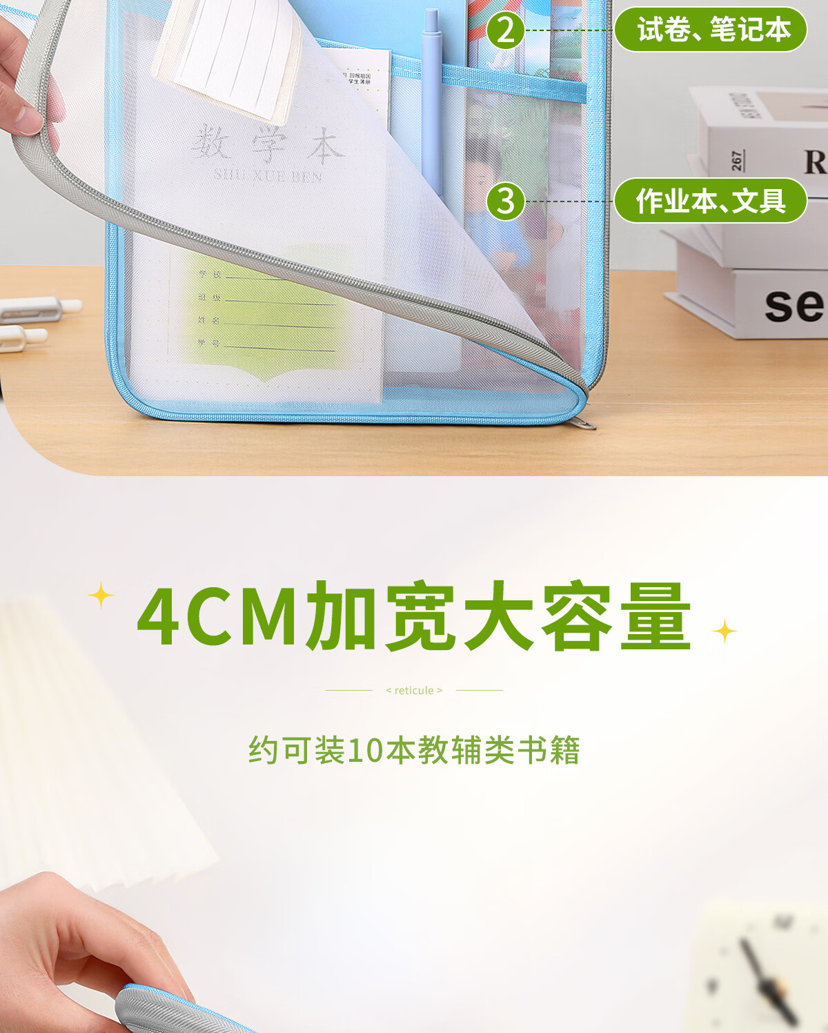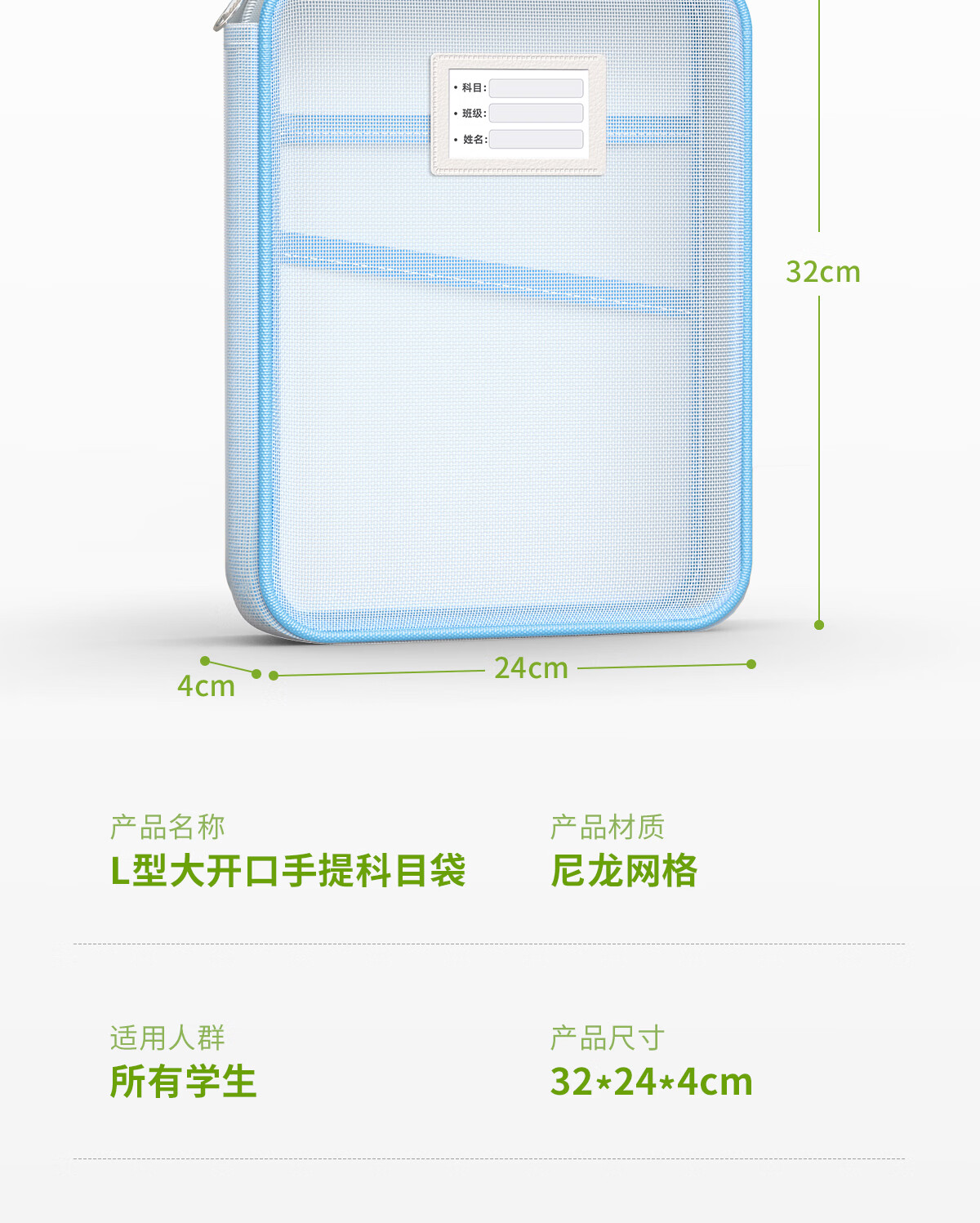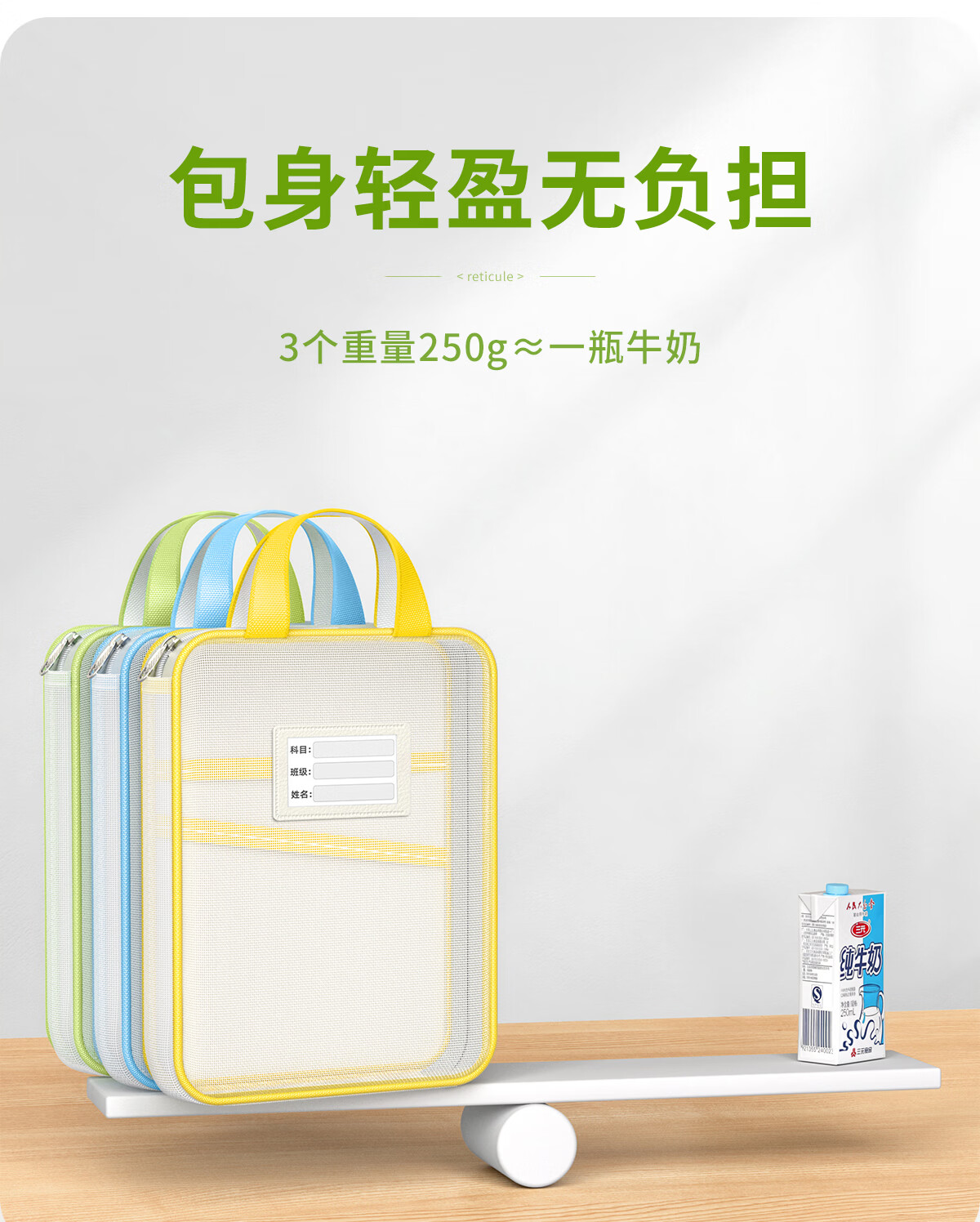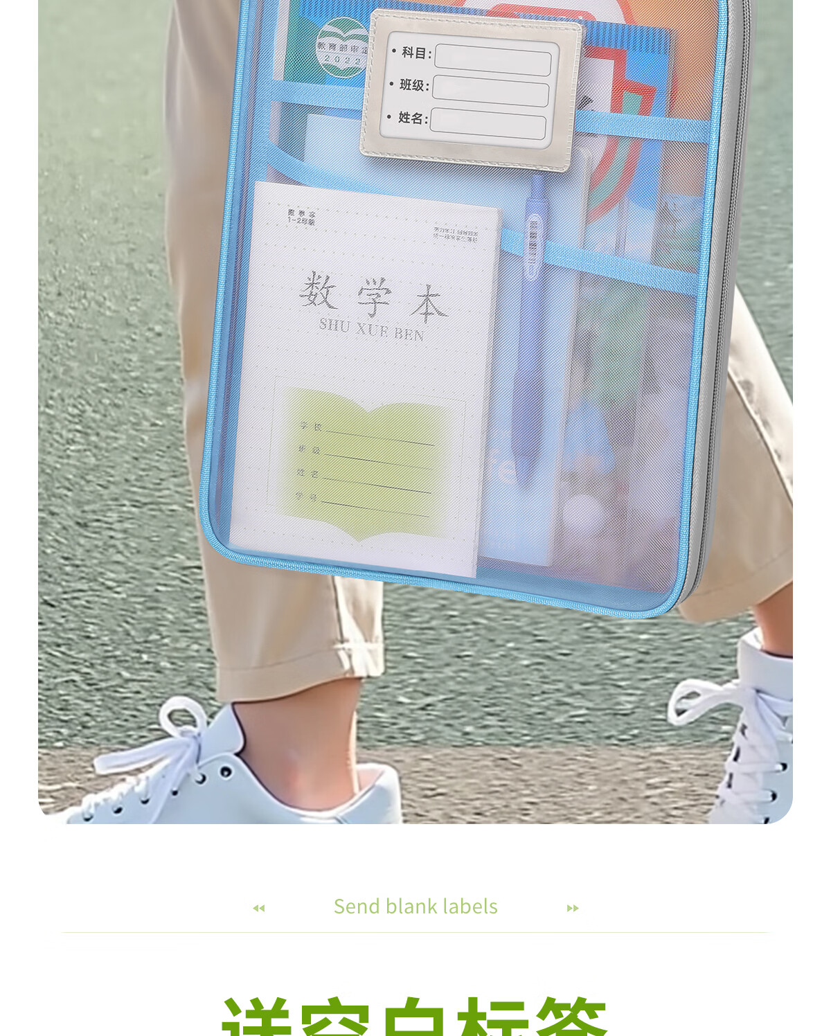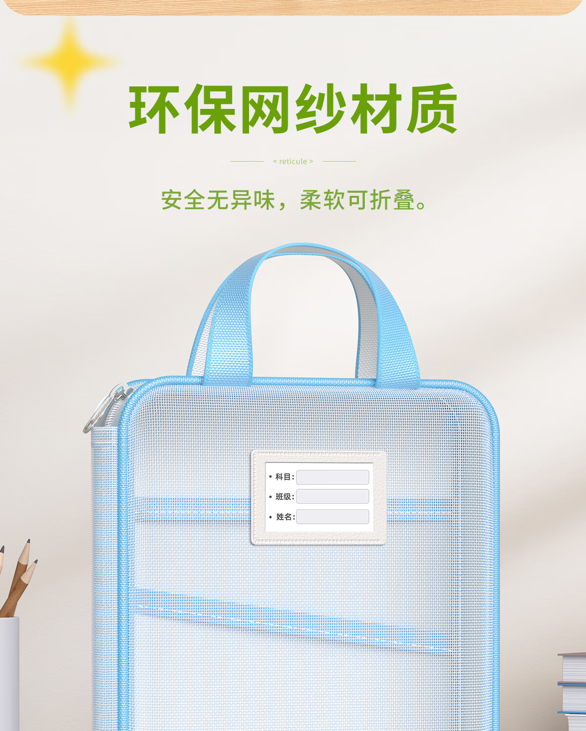 思赞L型科目分类袋透明文件袋拉链式小学生网纱大开口手提拎书袋考试专用袋子补习袋档案袋试卷收纳袋I 4个装【蓝绿黄粉】3层加厚/送标签