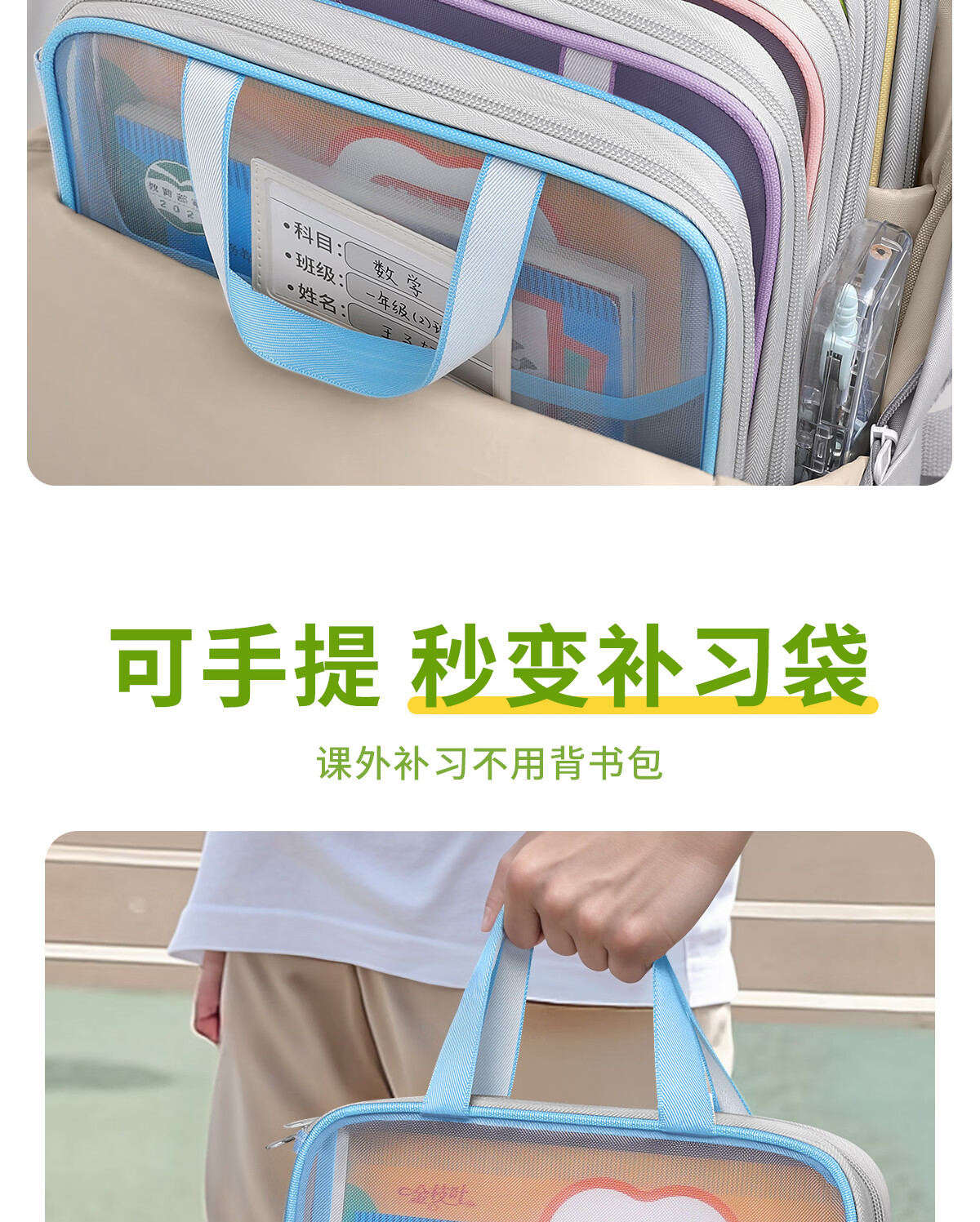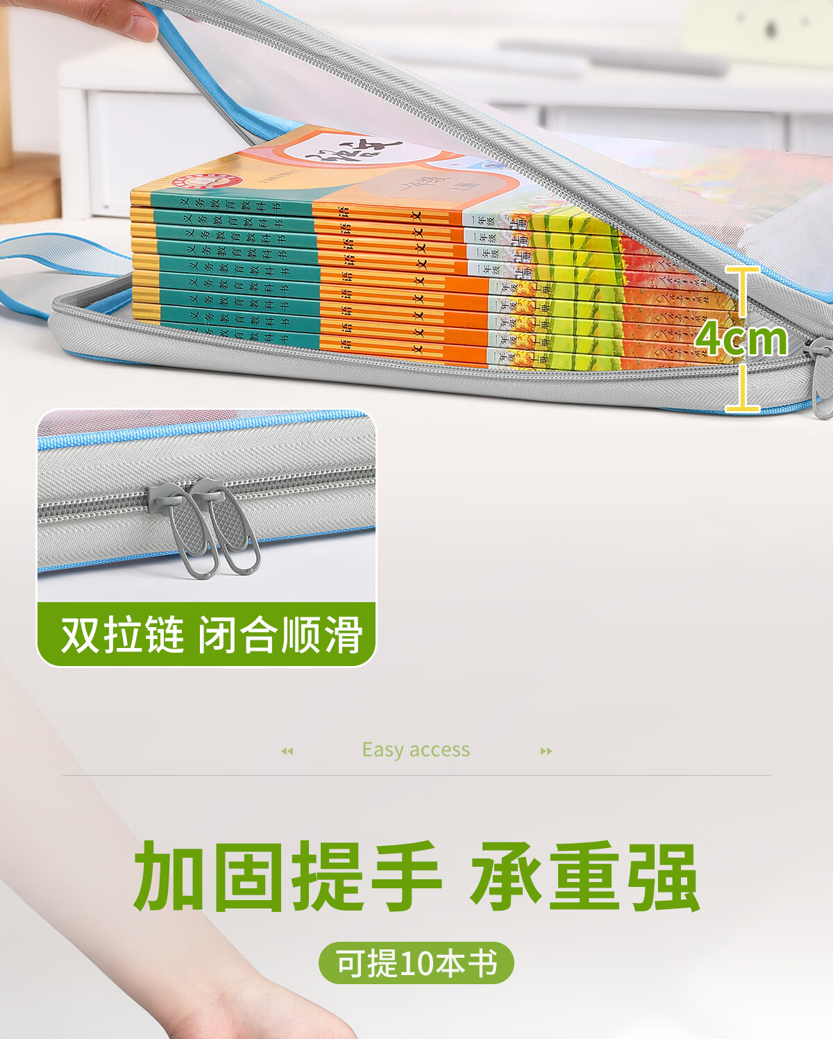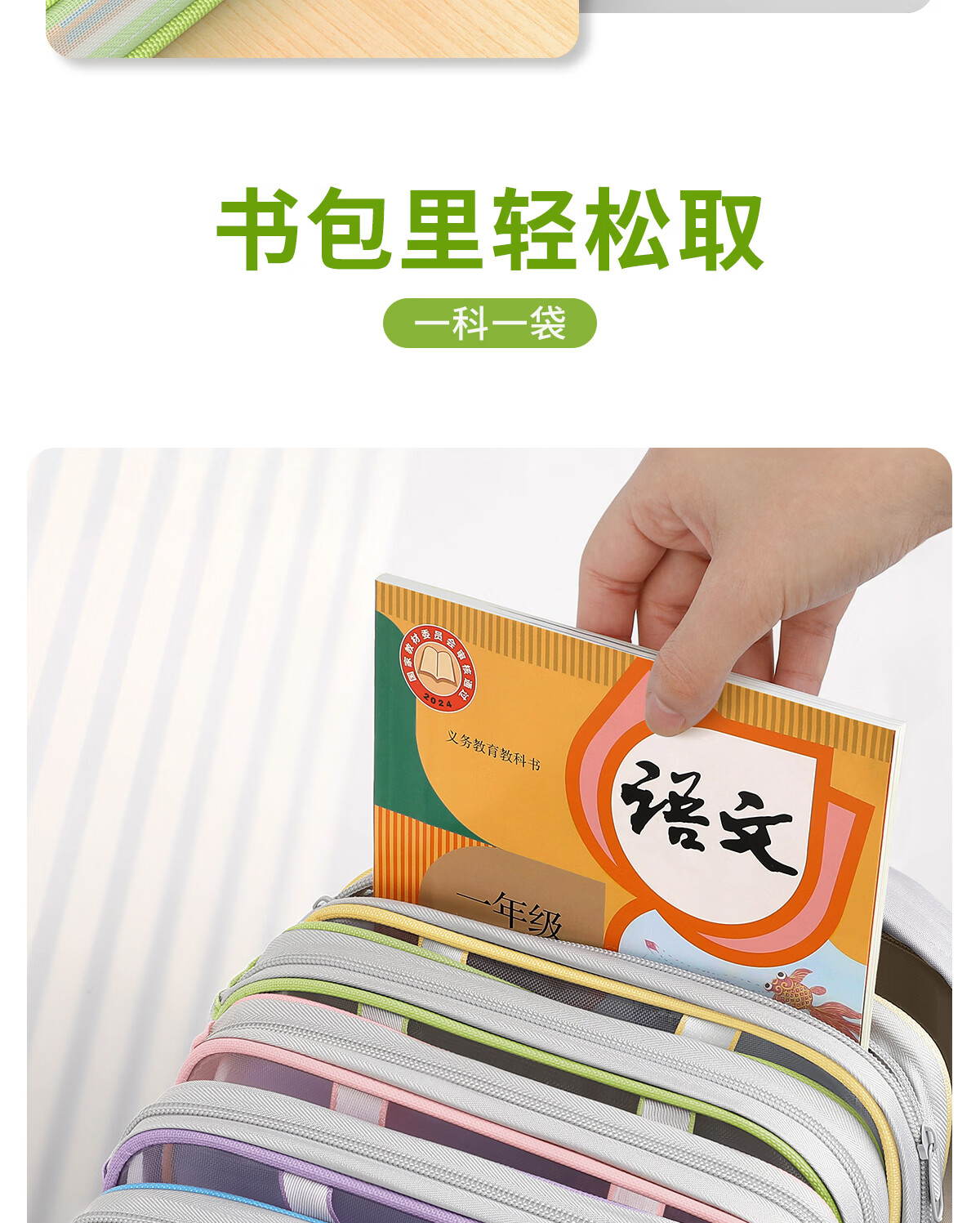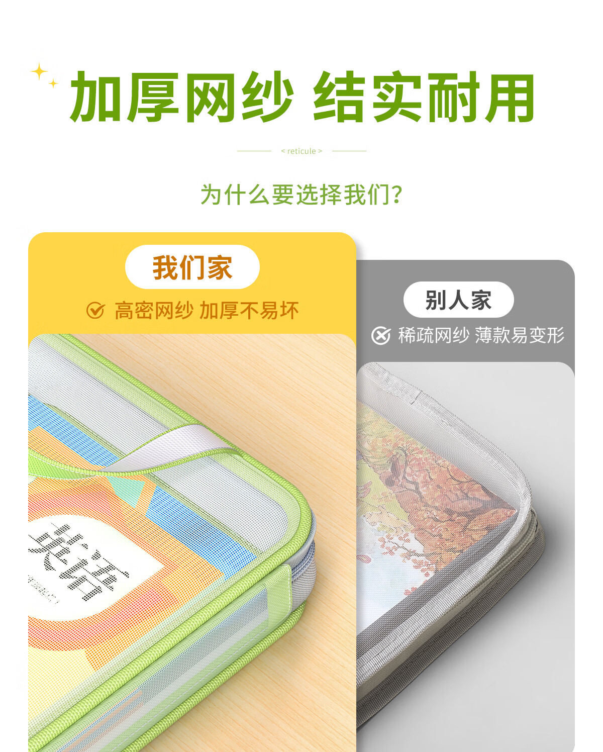 思赞L型科目分类袋透明文件袋拉链式小学生网纱大开口手提拎书袋考试专用袋子补习袋档案袋试卷收纳袋I 4个装【蓝绿黄粉】3层加厚/送标签