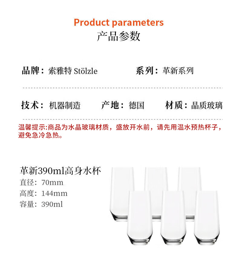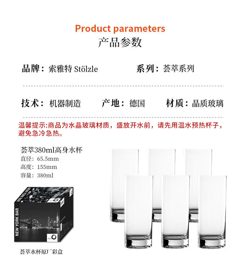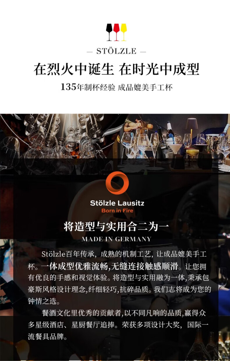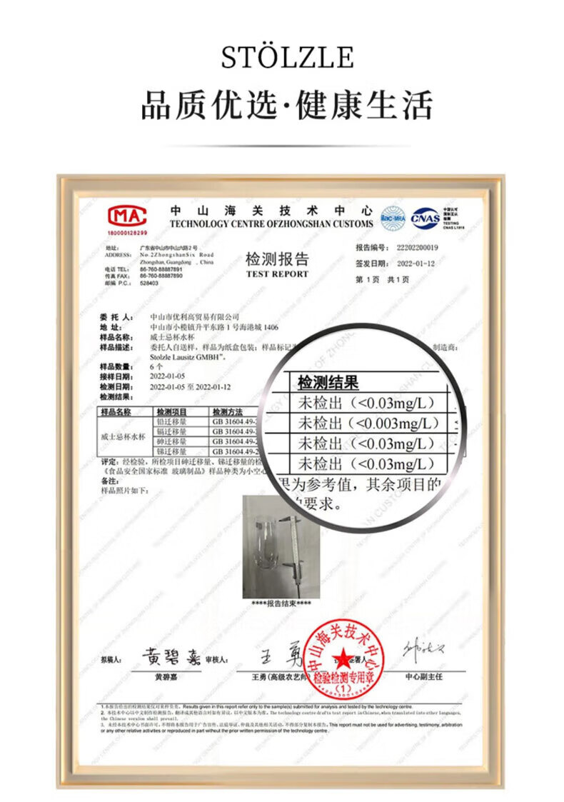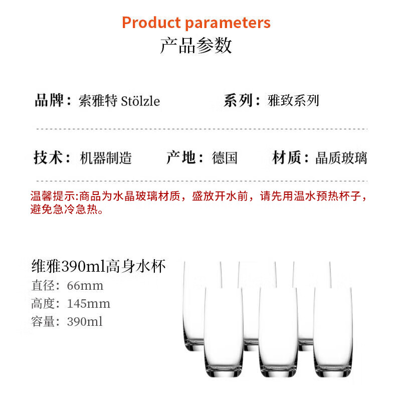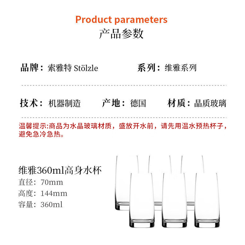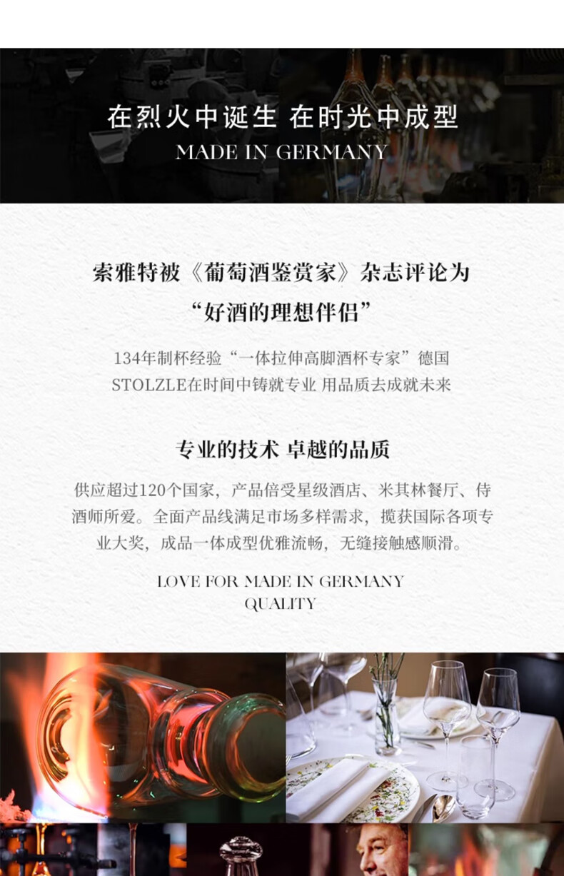 索雅特Stolzle德国进口水晶玻璃绿茶杯高档水杯家用套装耐热牛奶早餐杯 雅致水晶茶水杯2只装 360ml