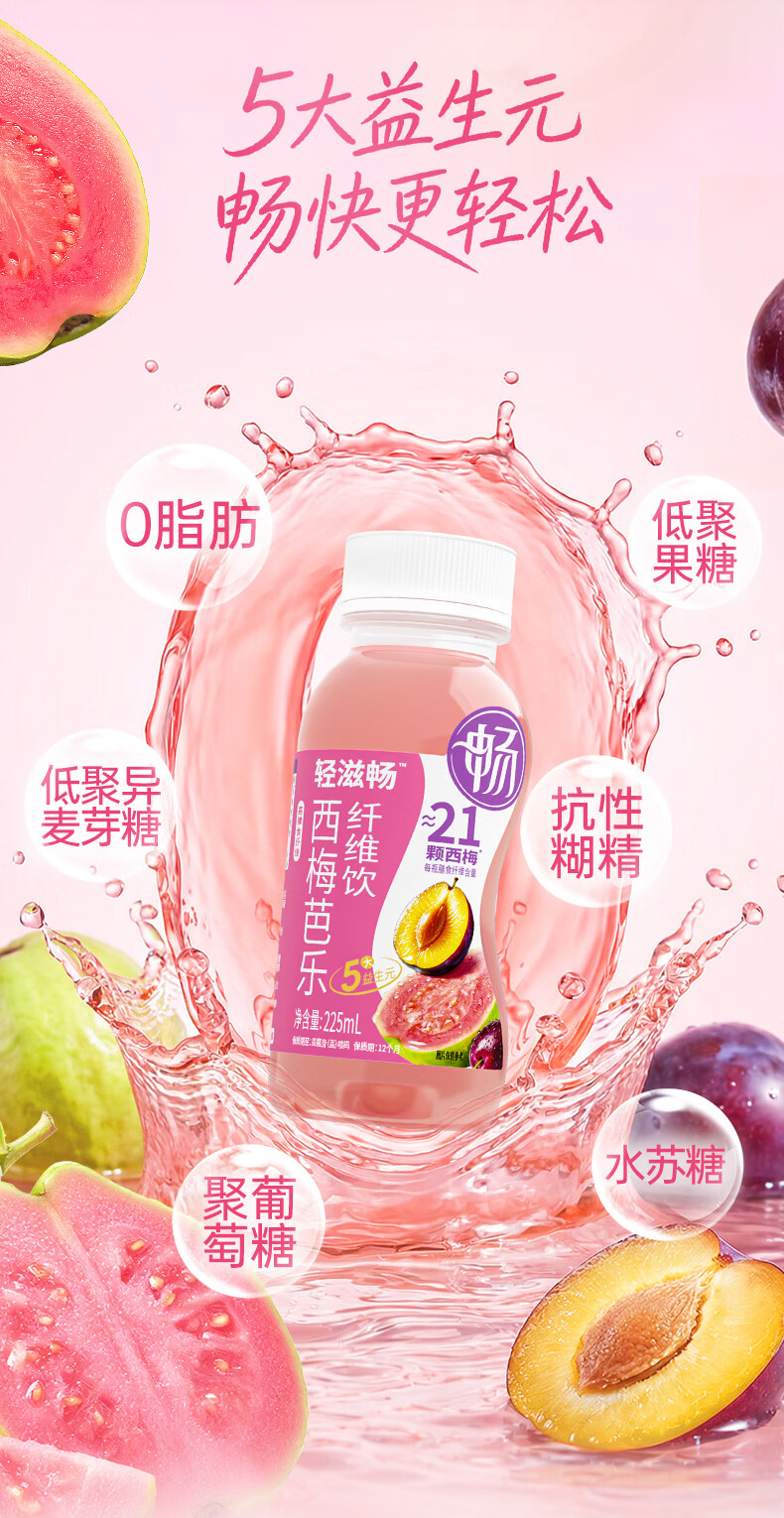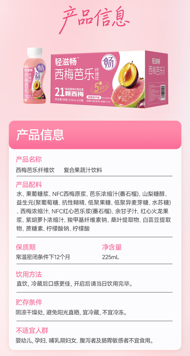 轻上轻滋畅西梅汁加强型PLUS富含膳食纤维饮料小瓶装甄选智利进口西梅 西梅汁180ml*6瓶